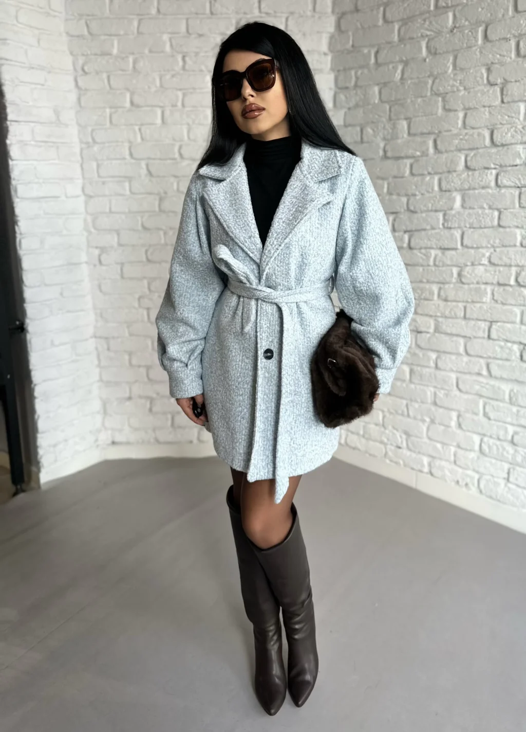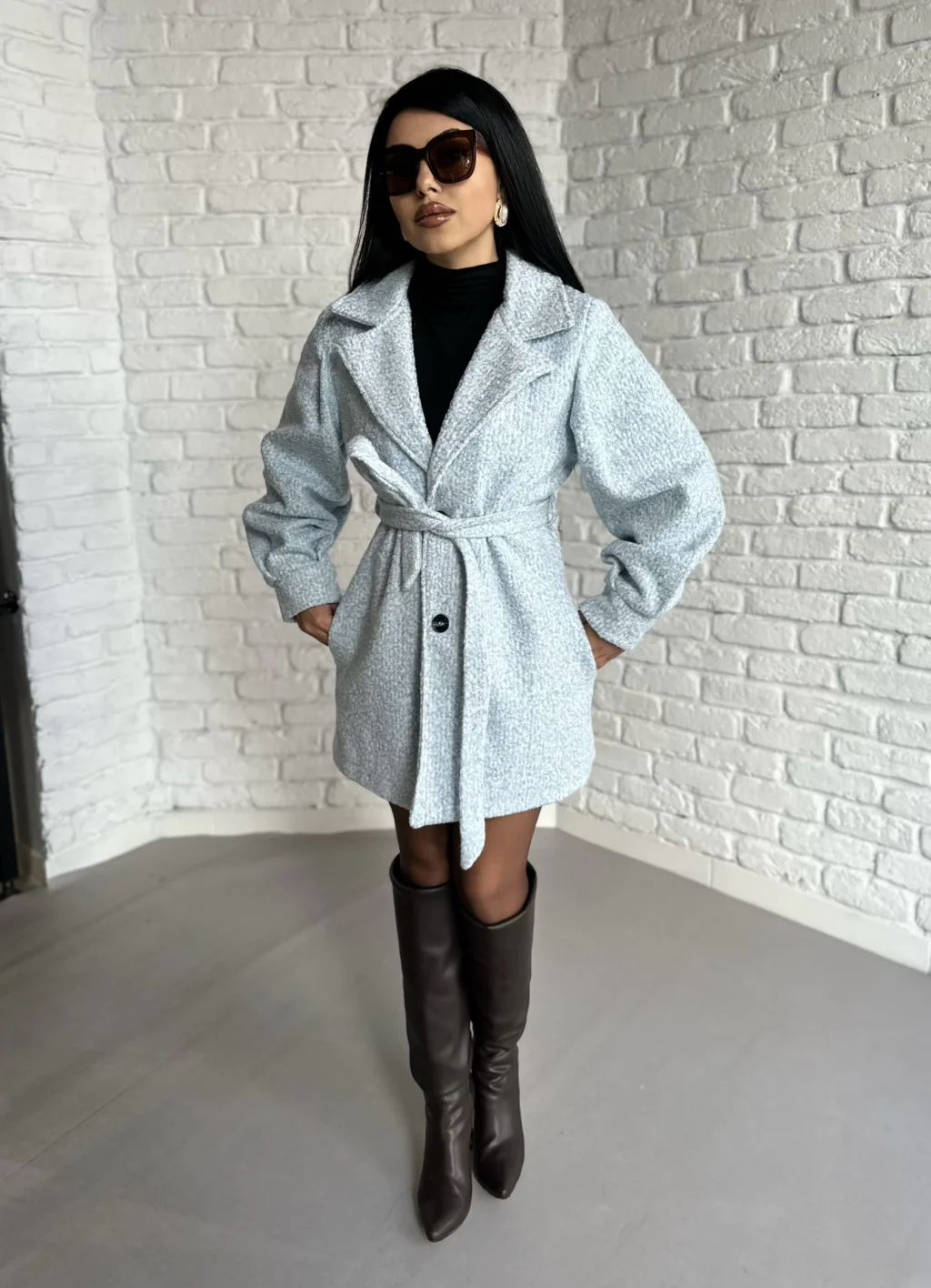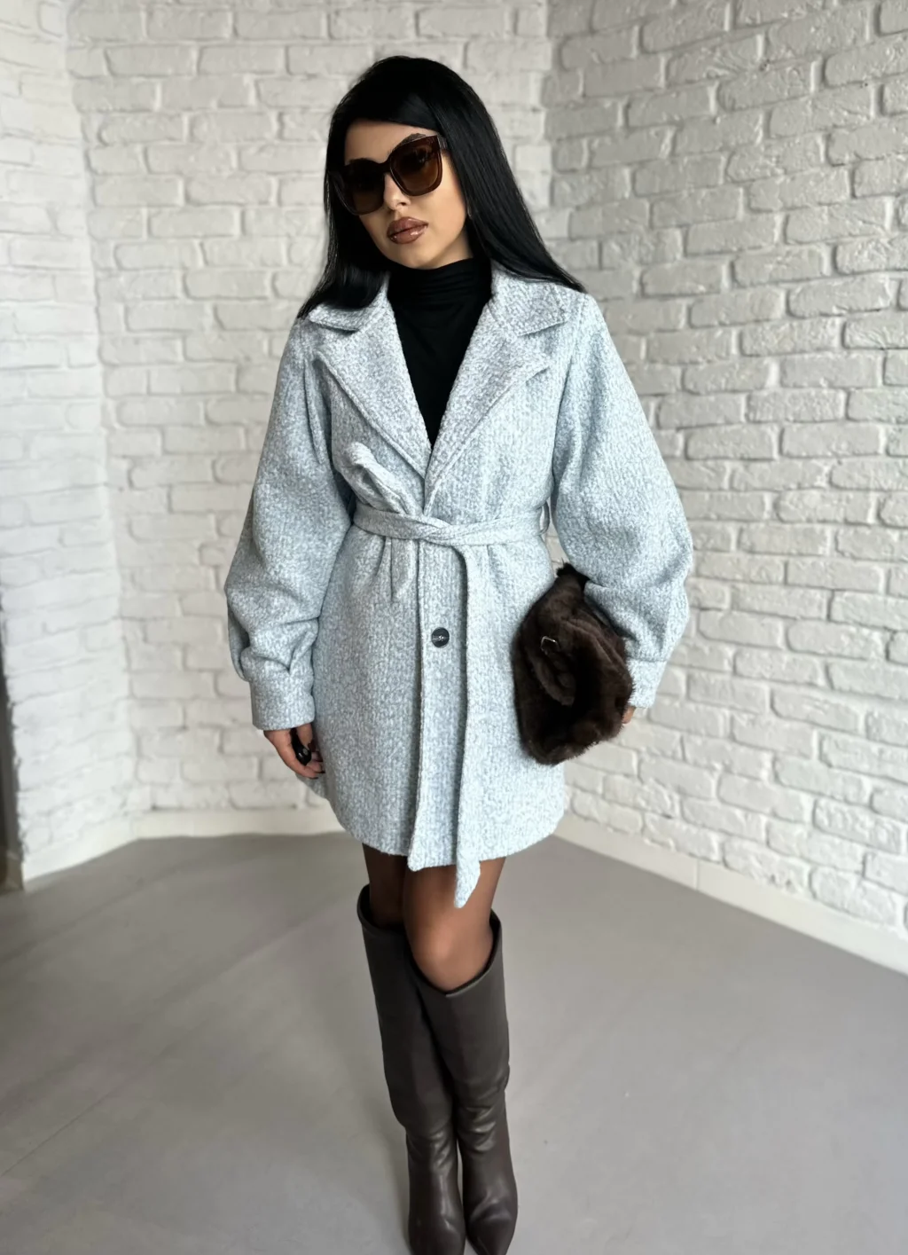 Kadın Kuşaklı Oversize Kısa Kaşe Kaban