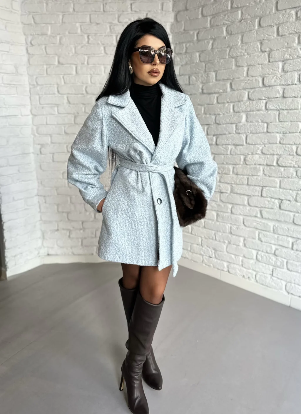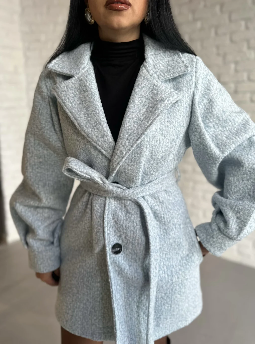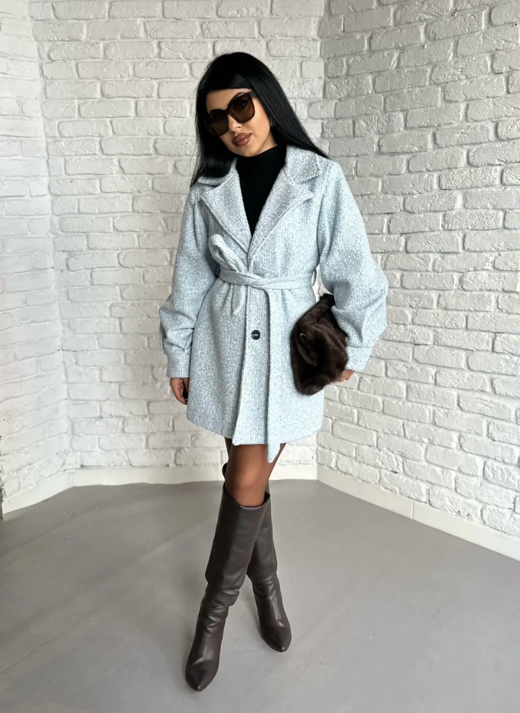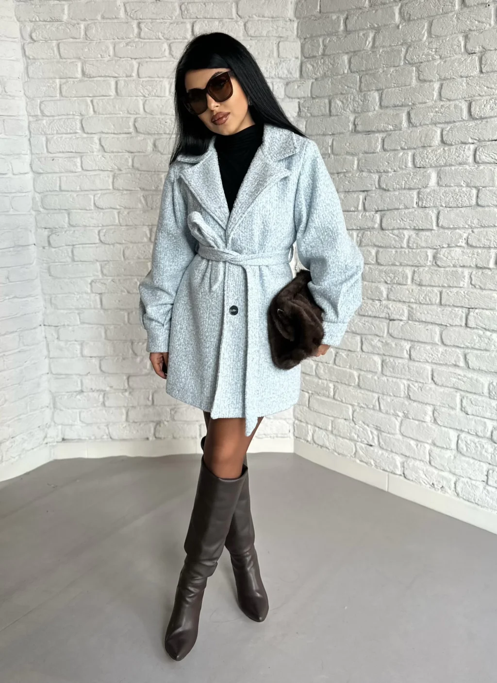 Kadın Kuşaklı Oversize Kısa Kaşe Kaban