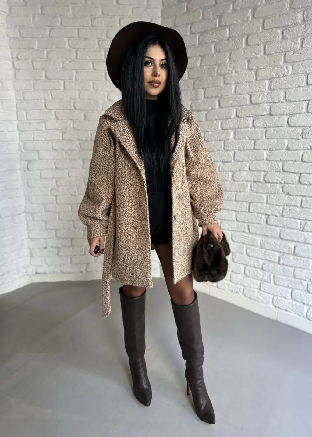 Kadın Balon Kol Astarlı Buklet Kumaş Kaban