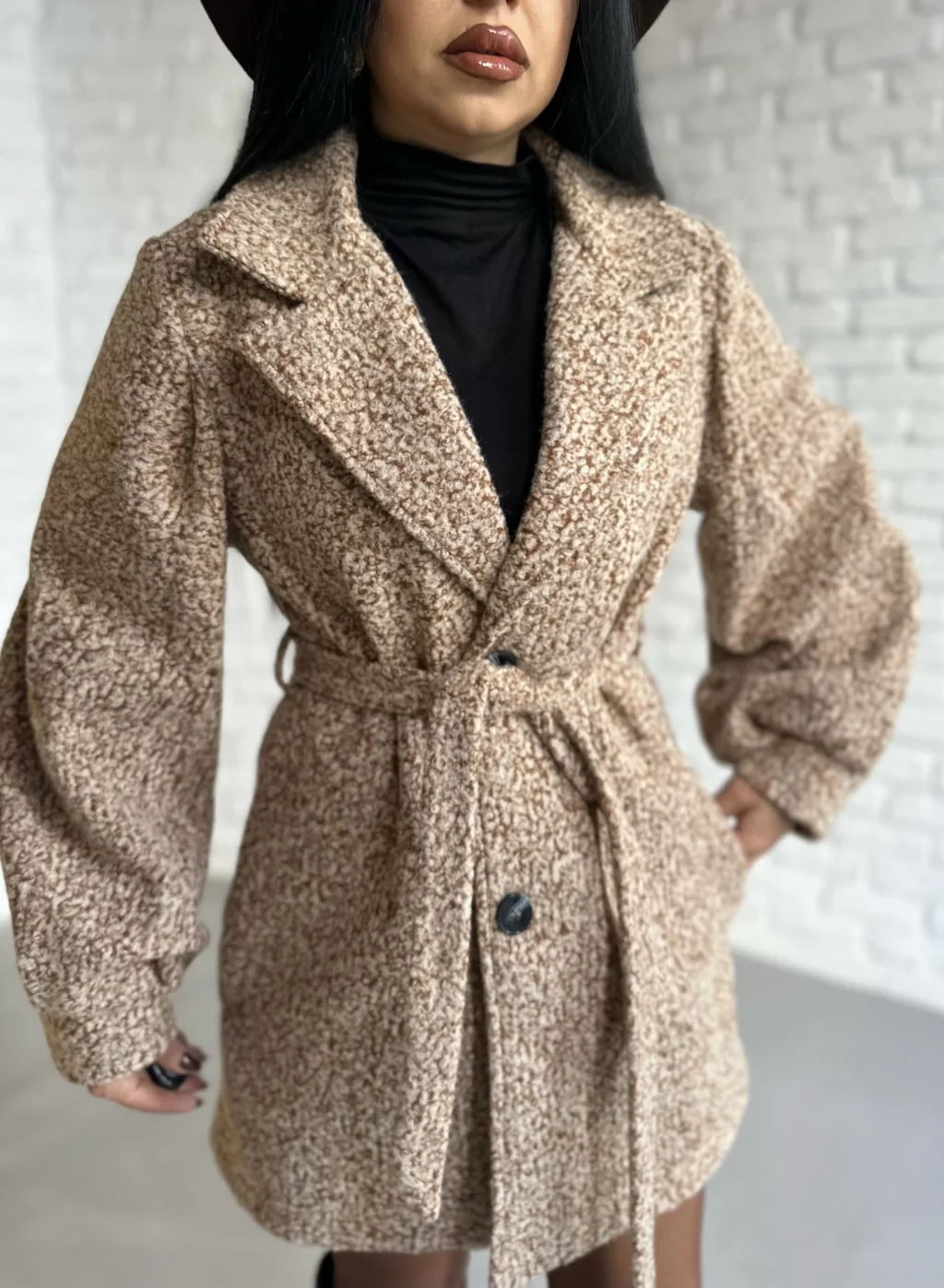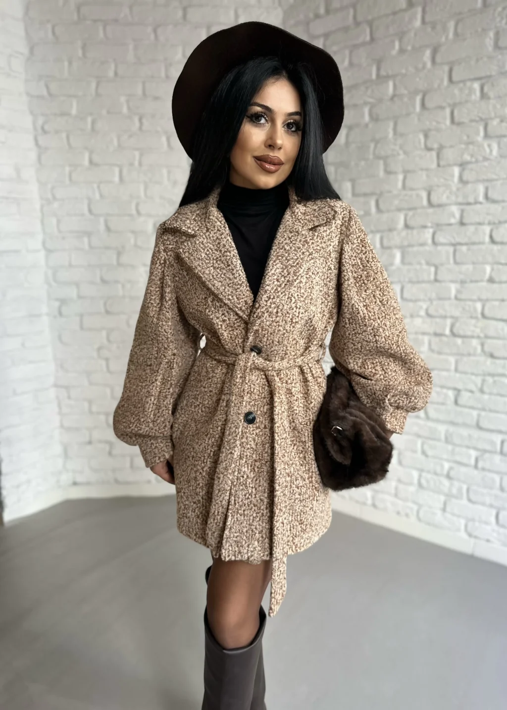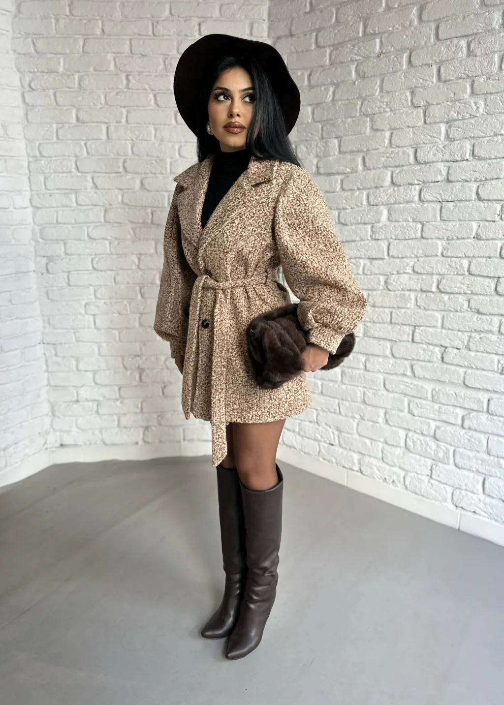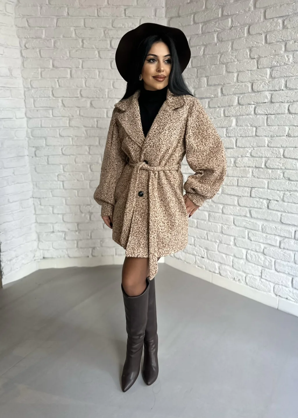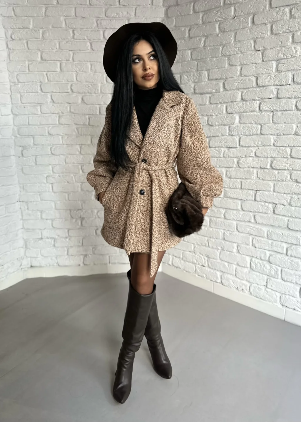 Kadın Kuşaklı Oversize Kısa Kaşe Kaban