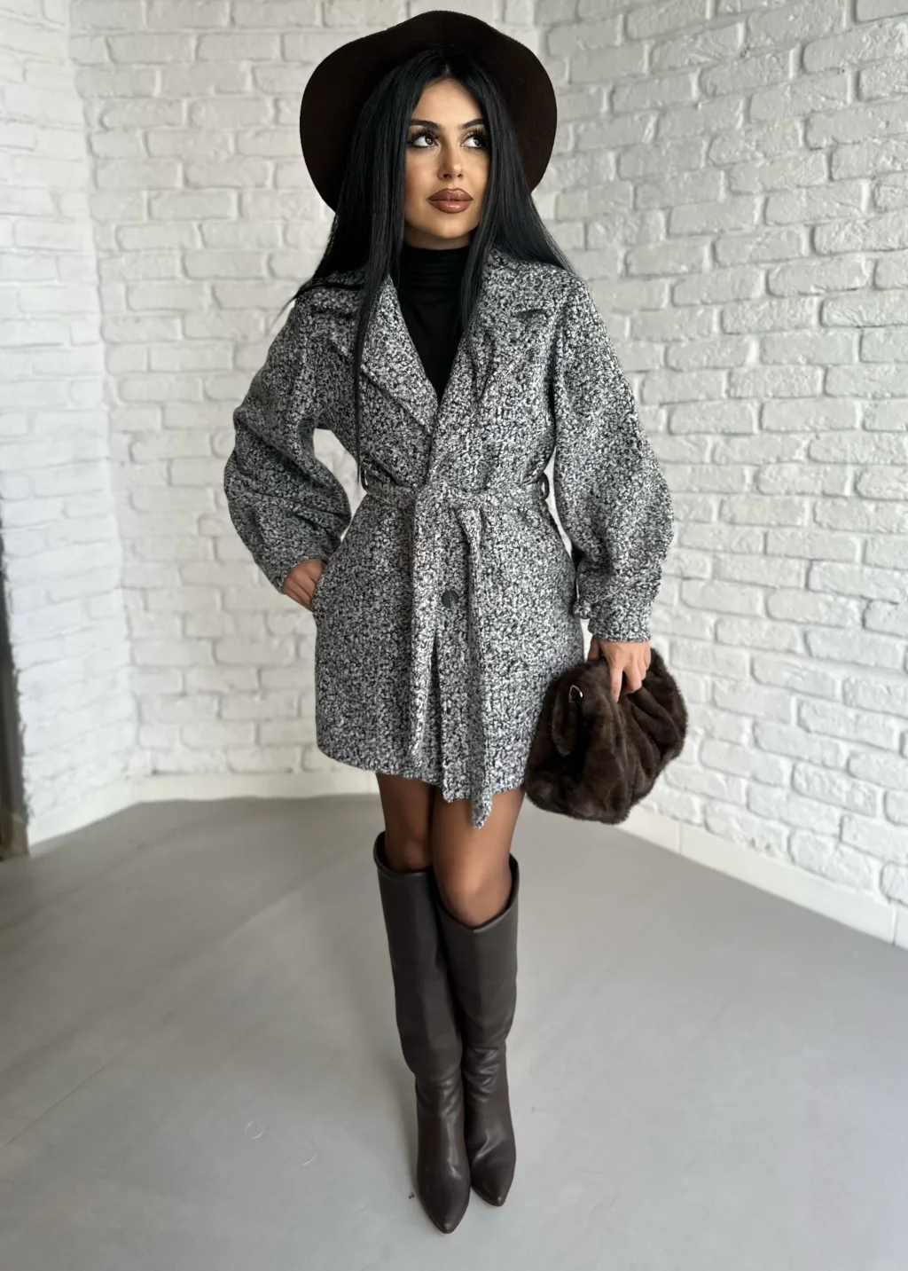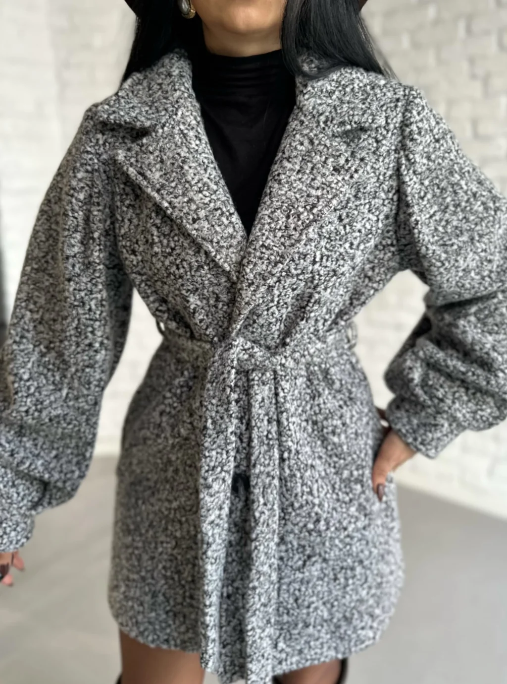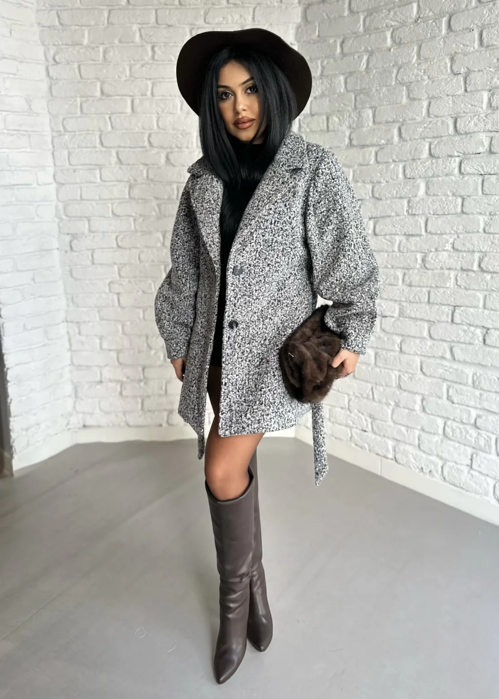 Kadın Kuşaklı Oversize Kısa Kaşe Kaban