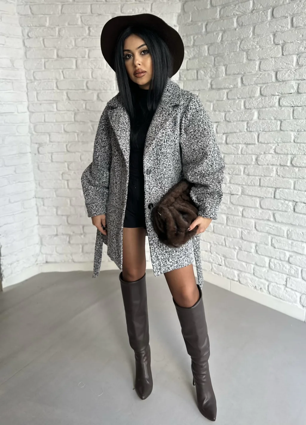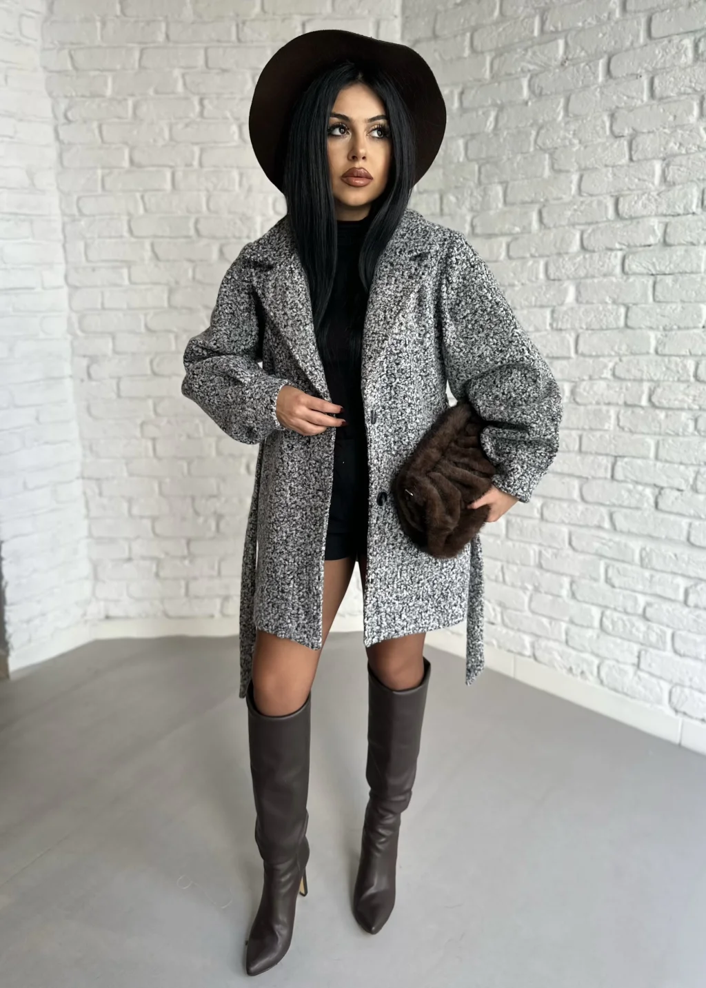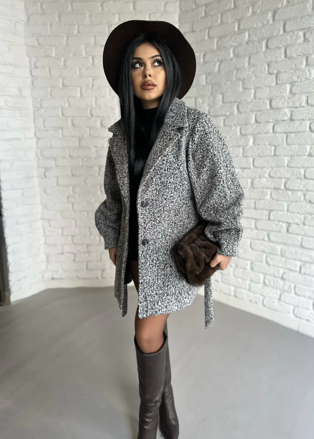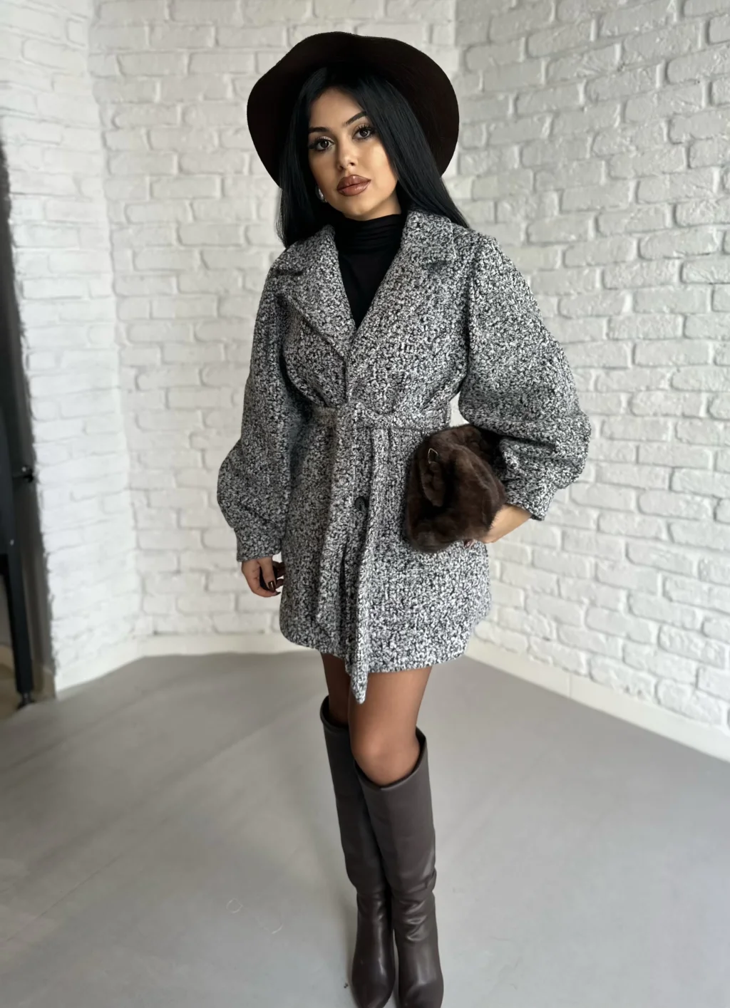 Kadın Kuşaklı Oversize Kısa Kaşe Kaban