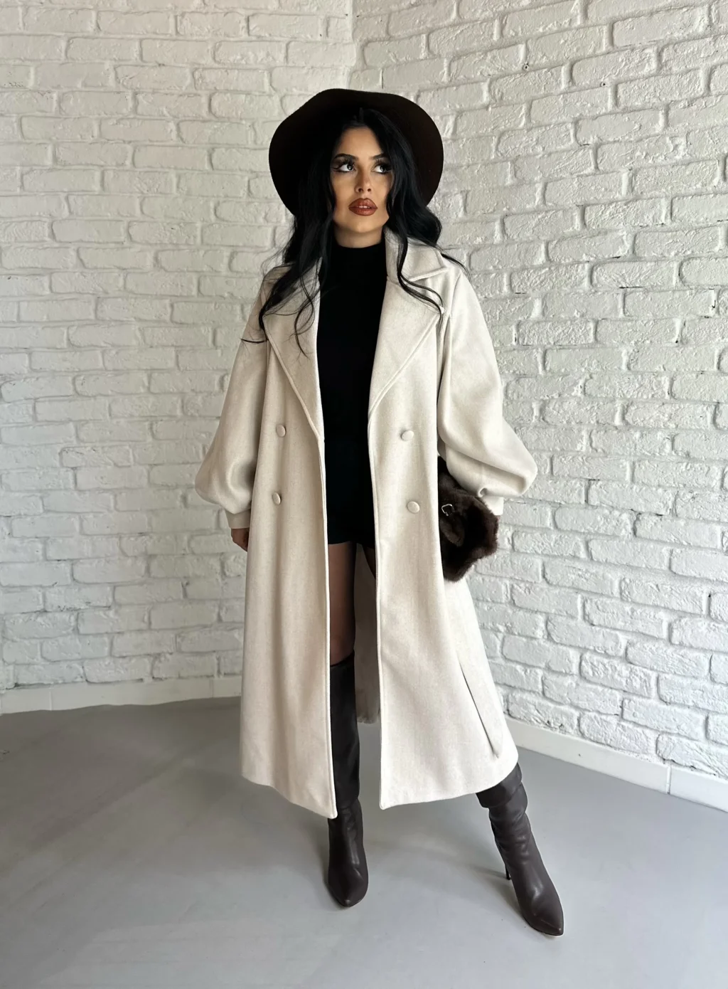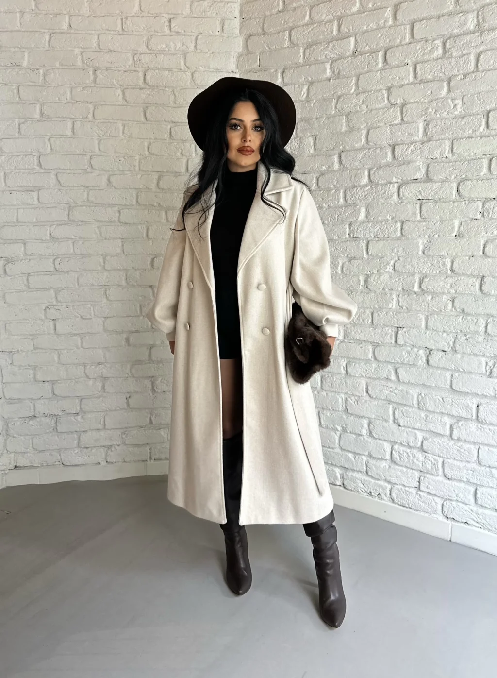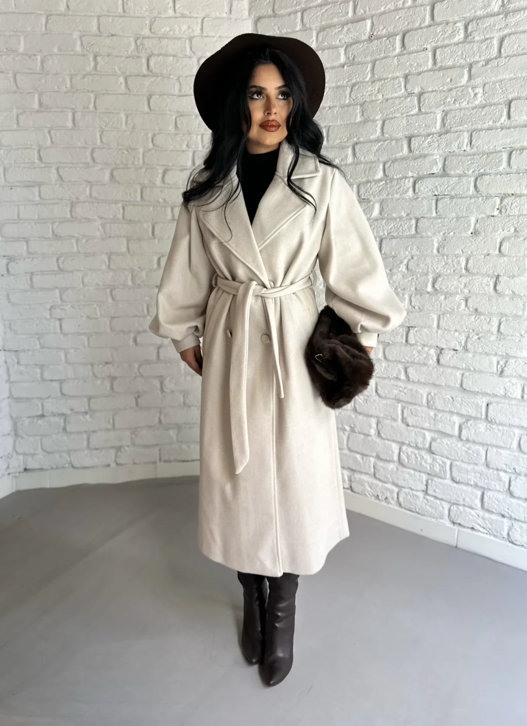 Kadın Balon Kol PREMİUM Astarlı Uzun Kaban