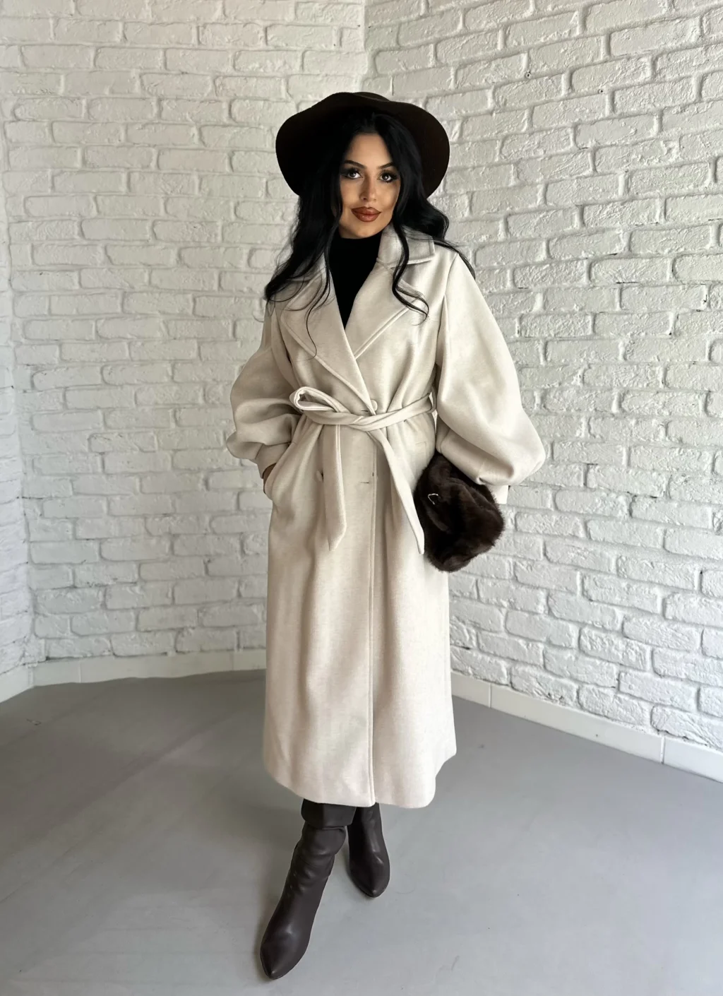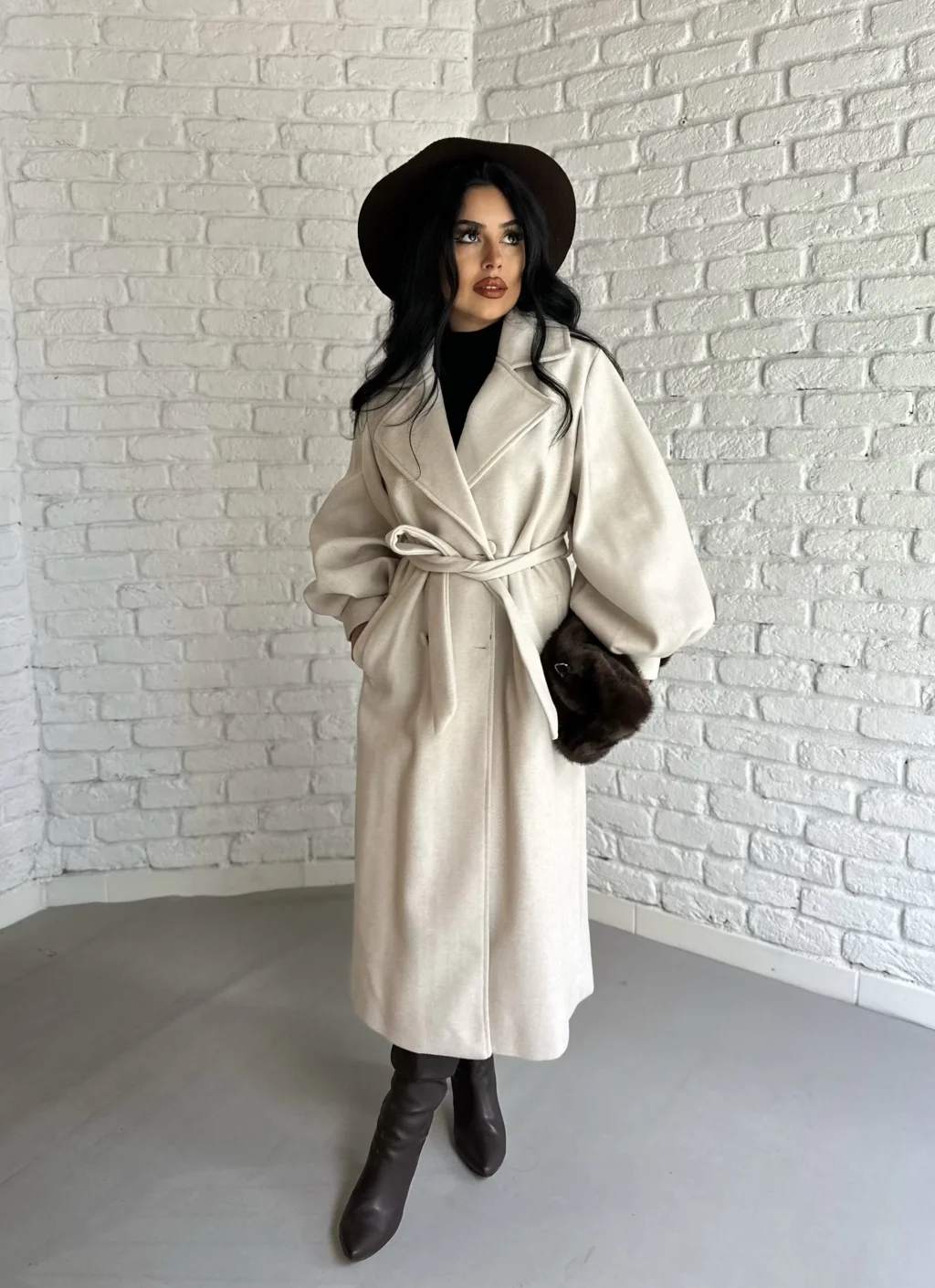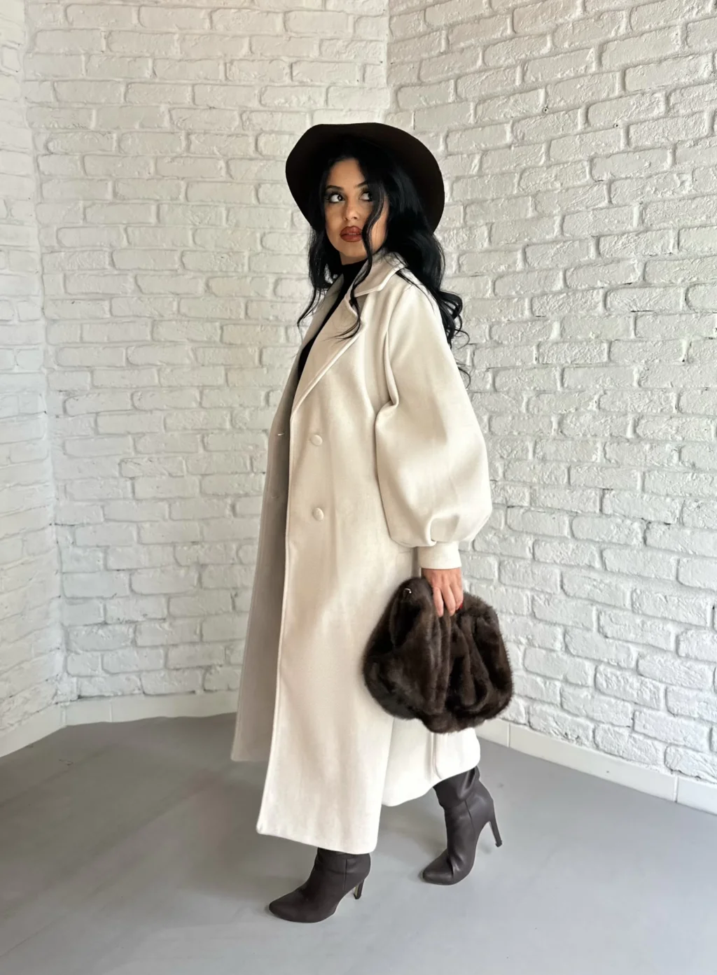 Kadın Balon Kol PREMİUM Astarlı Uzun Kaban