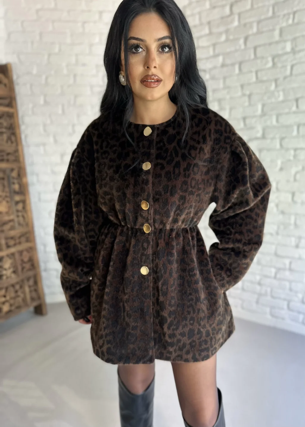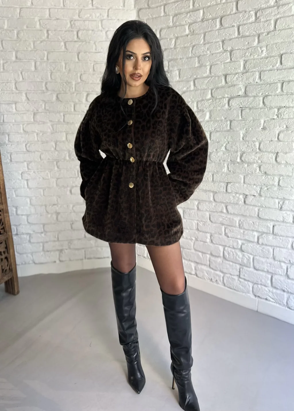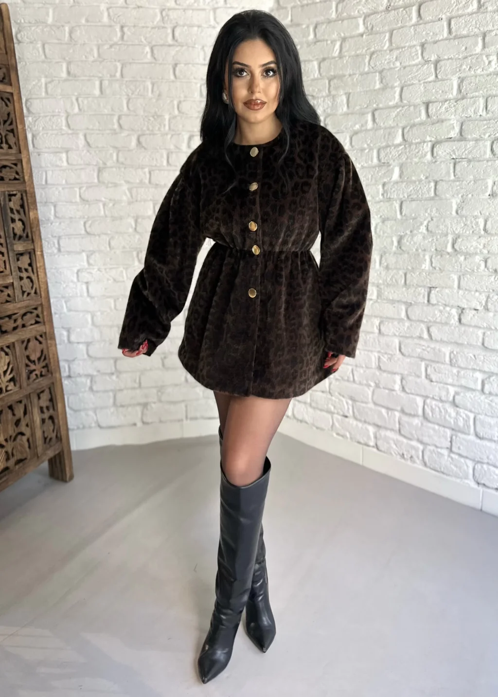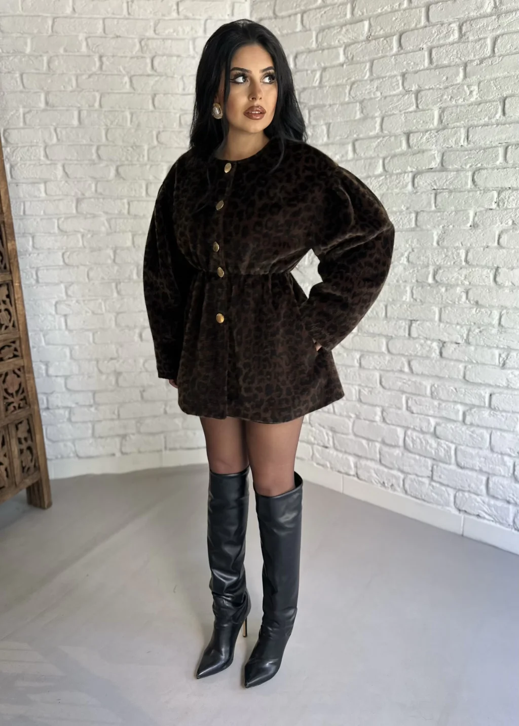 Kadın Önü Düğmeli Astarlı Kısa Kaşe Kaban