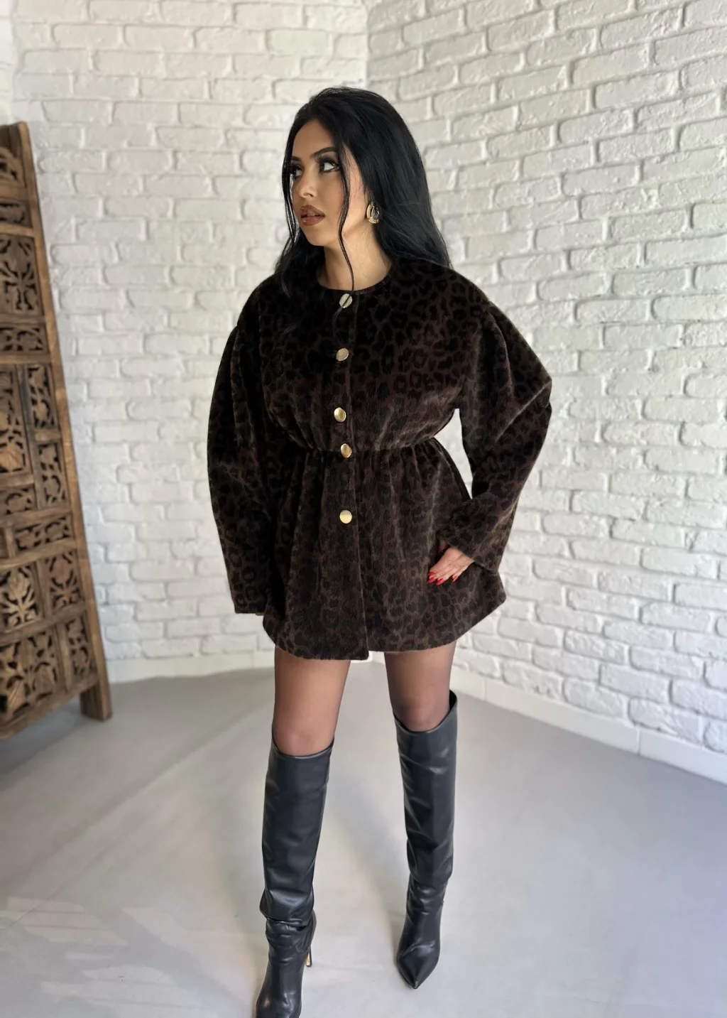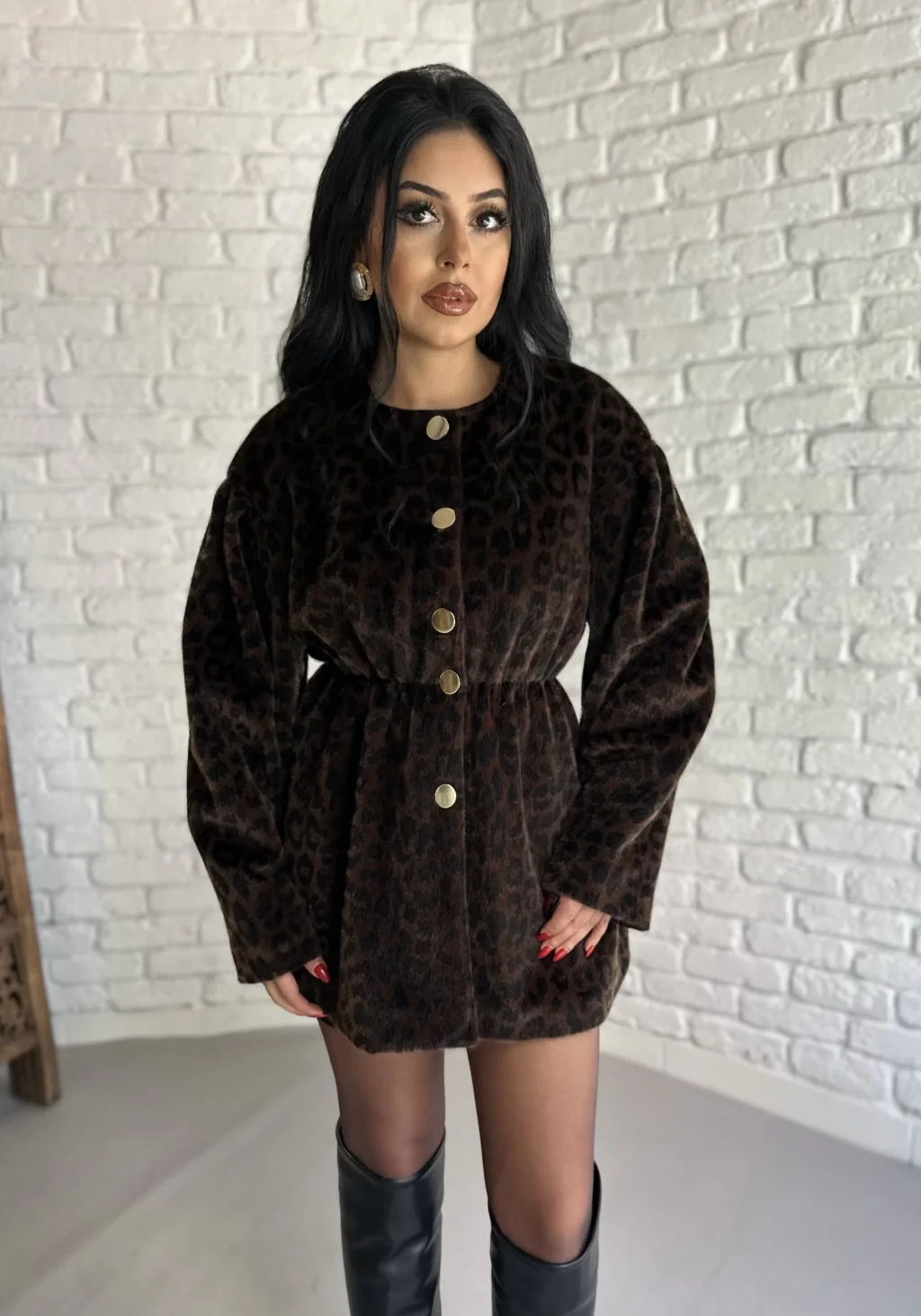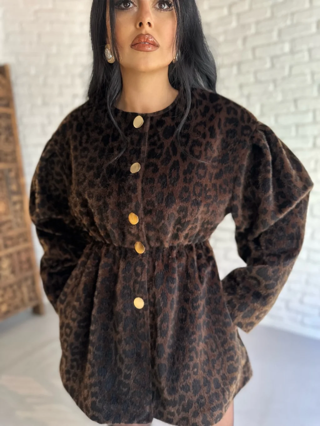 Kadın Beli Lastikli Fox Kumaş Gold Düğmeli Ceket