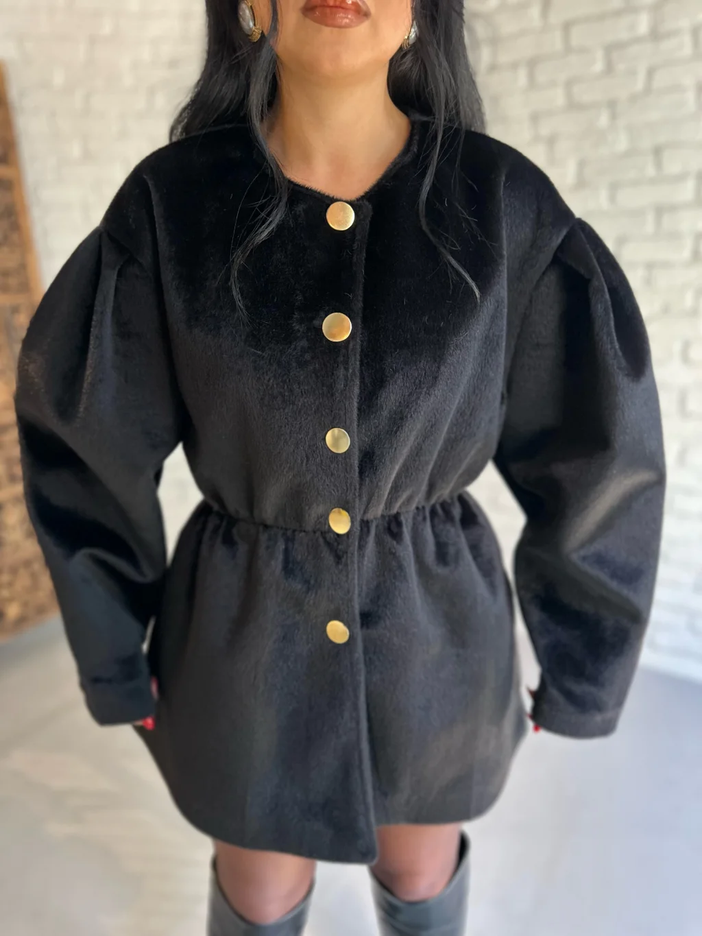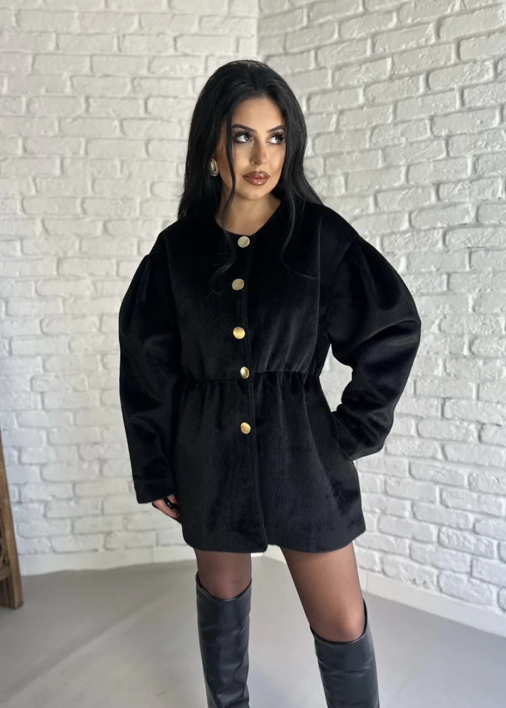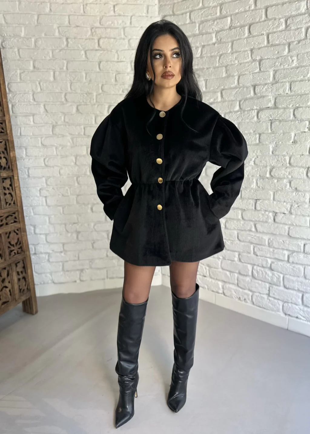 Kadın Önü Düğmeli Astarlı Kısa Kaşe Kaban