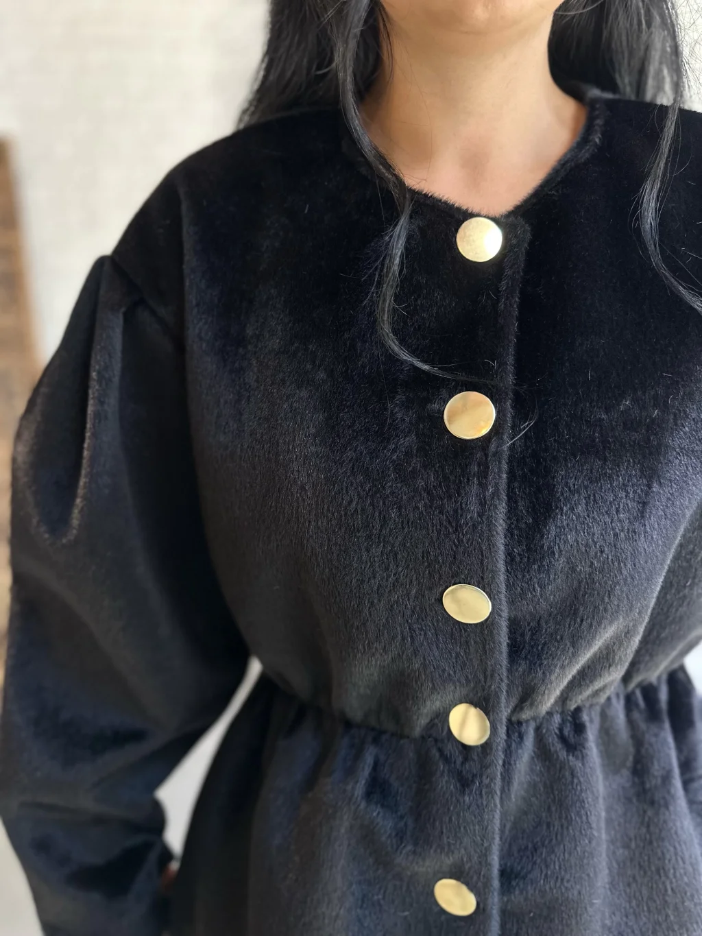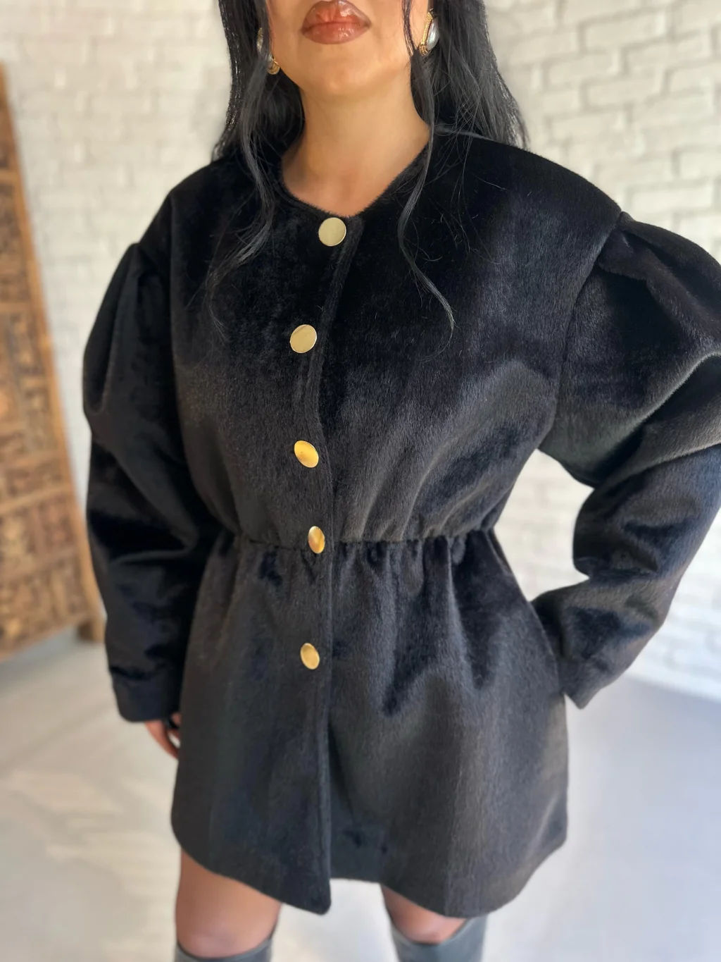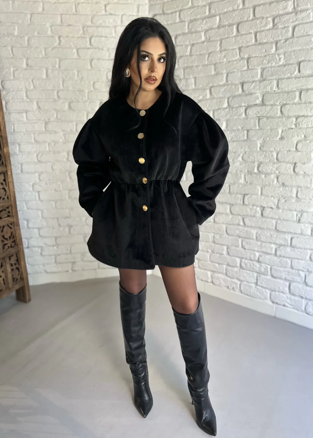 Kadın Önü Düğmeli Astarlı Kısa Kaşe Kaban