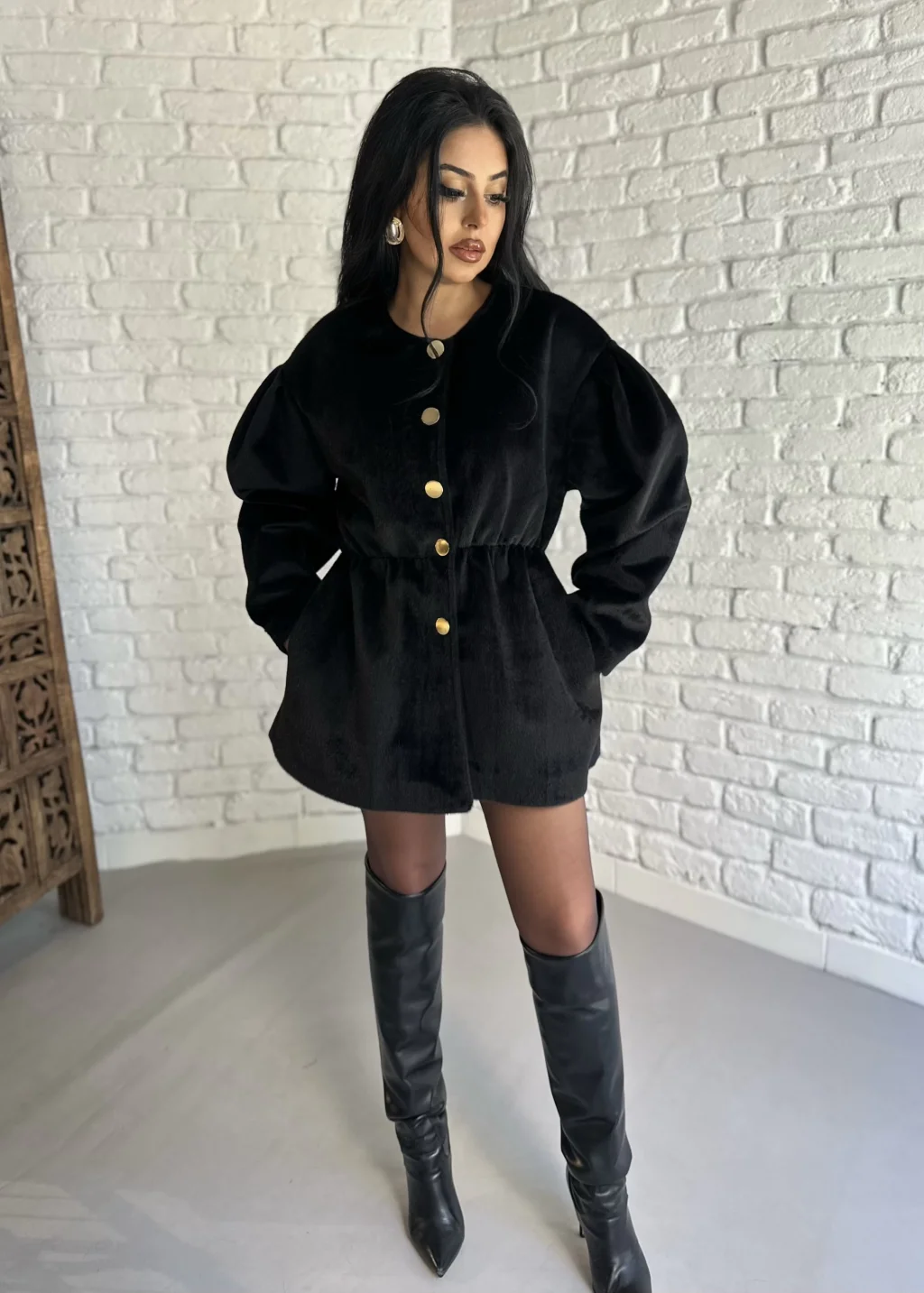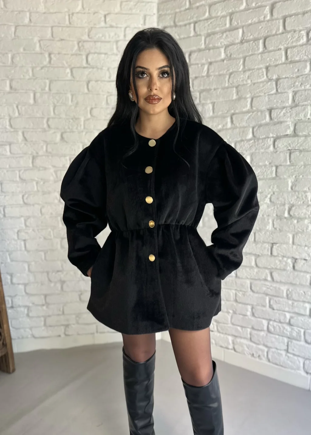 Kadın Beli Lastikli Fox Kumaş Gold Düğmeli Ceket
