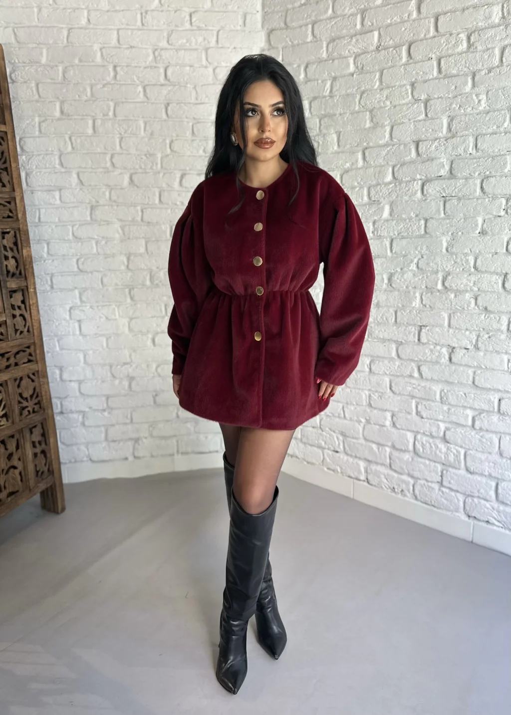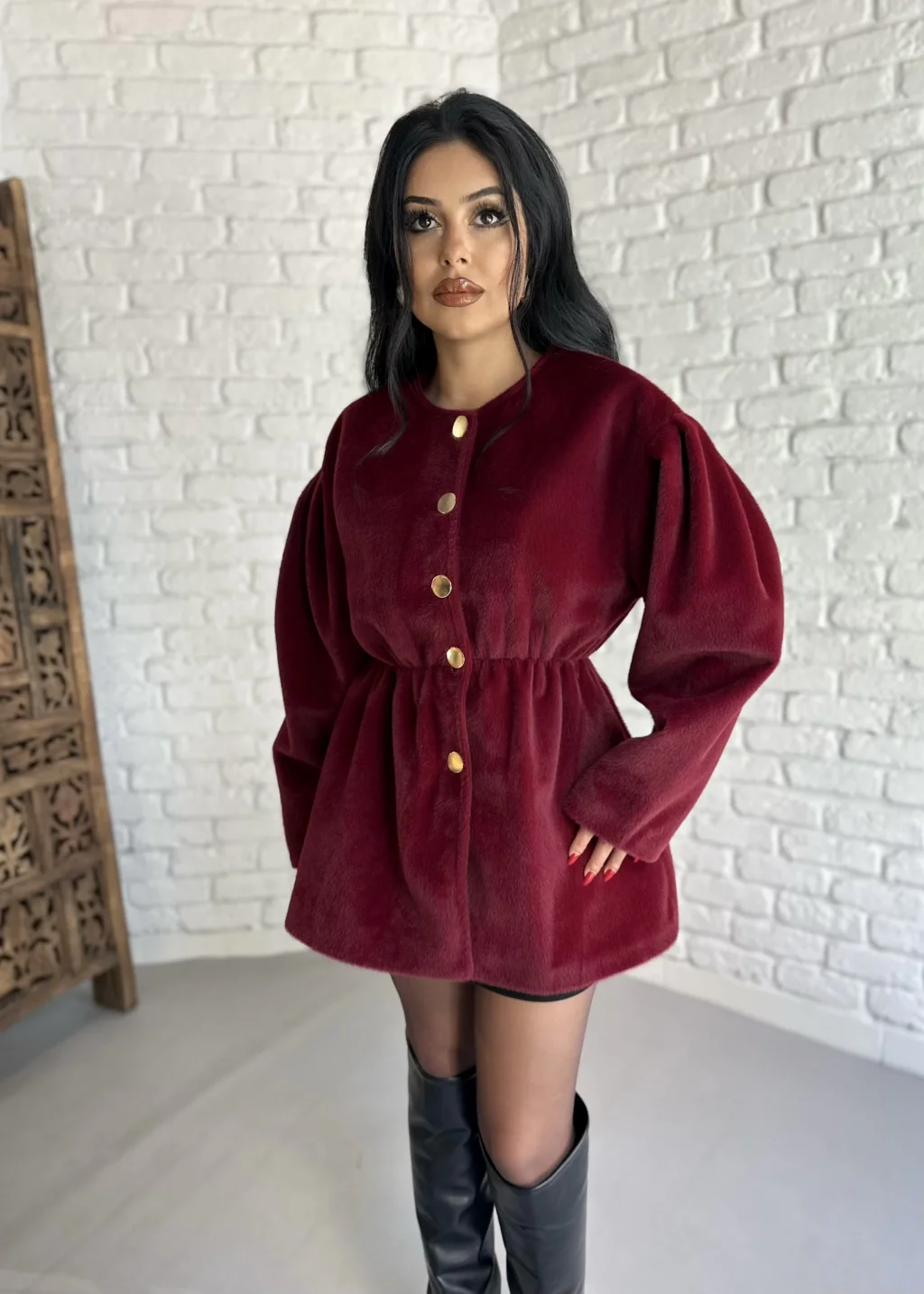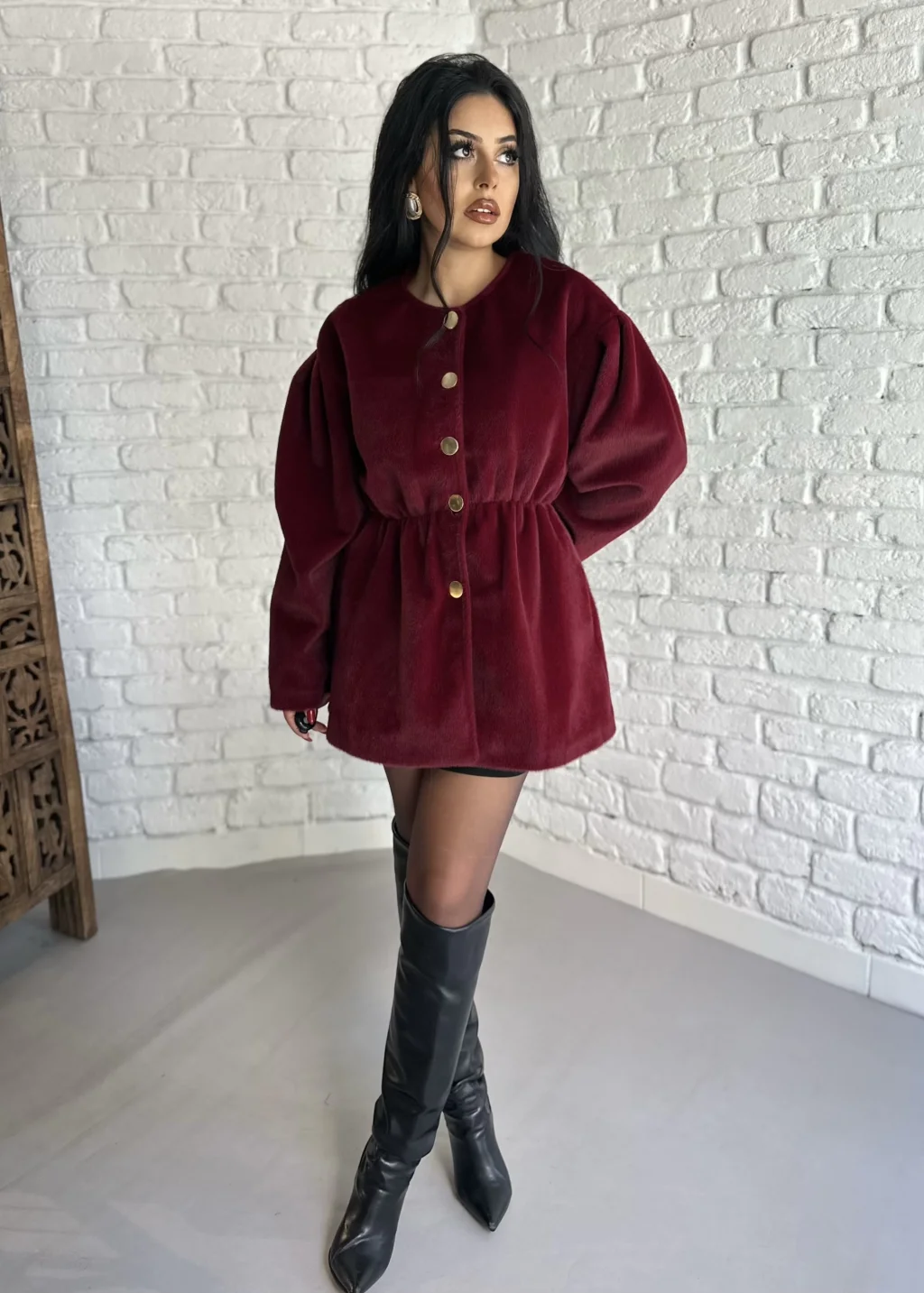 Kadın Önü Düğmeli Astarlı Kısa Kaşe Kaban