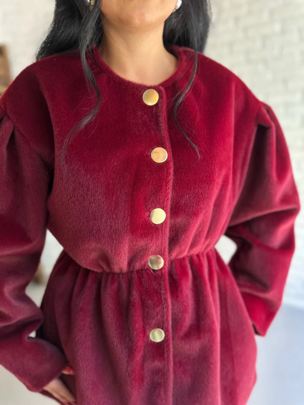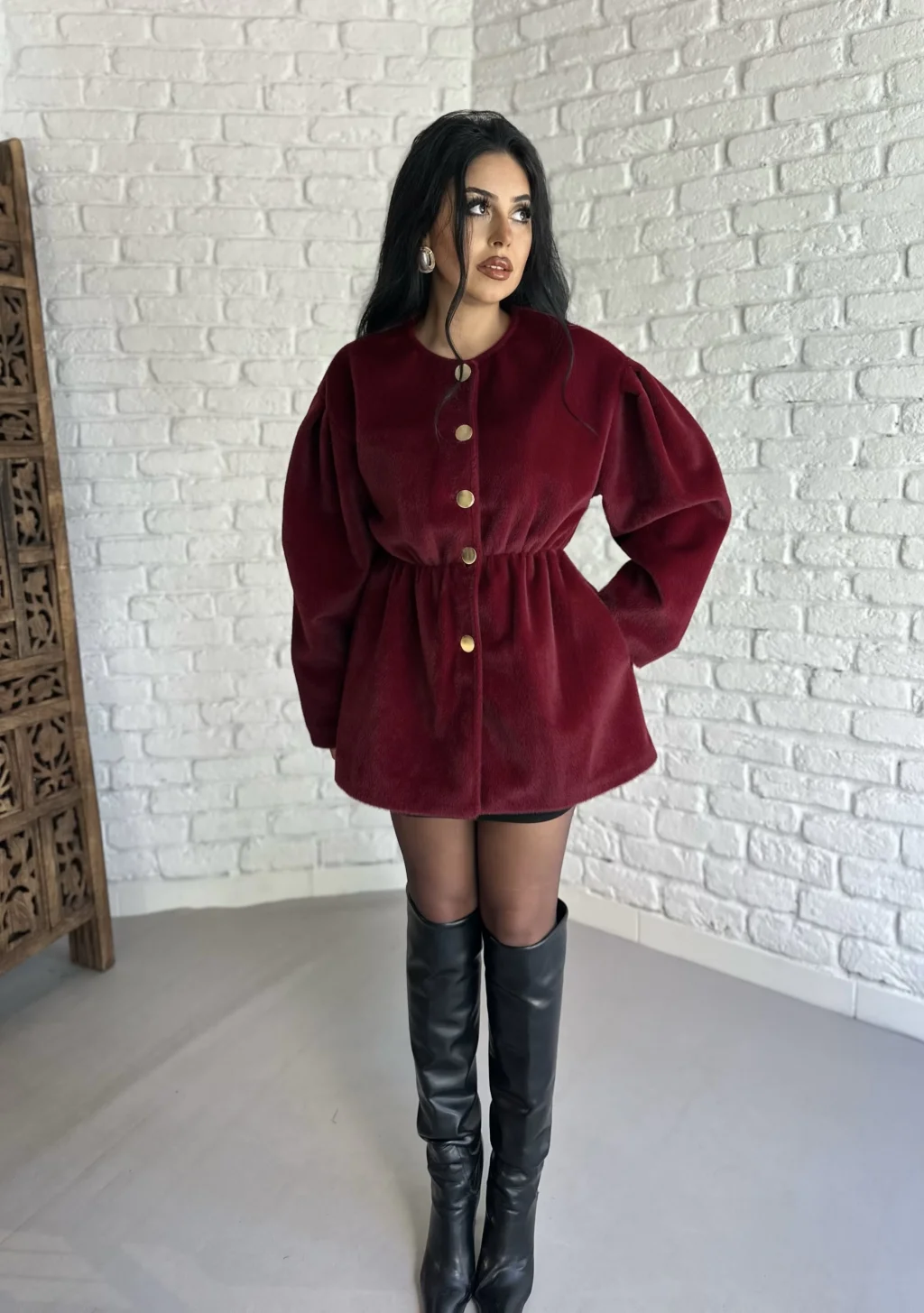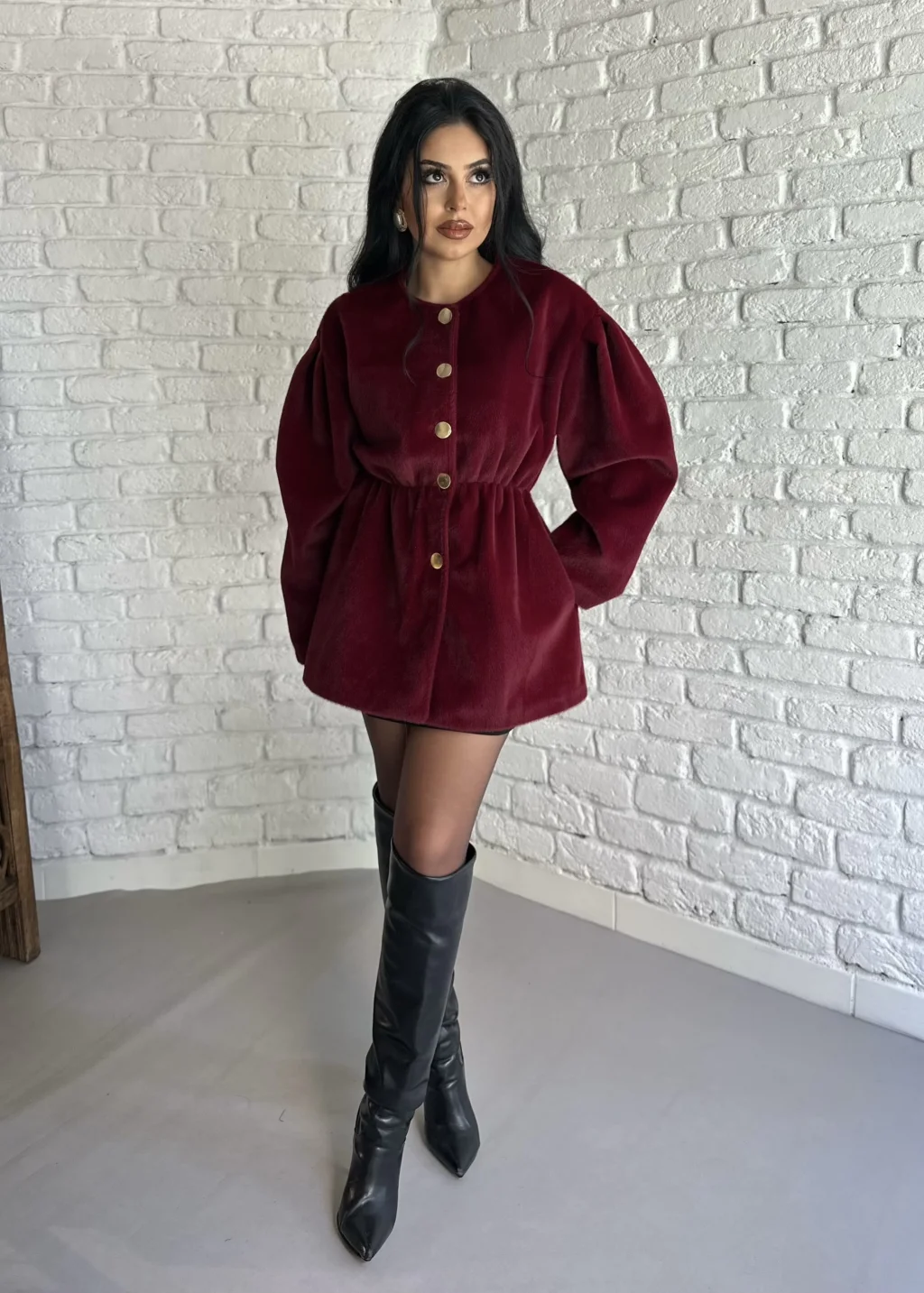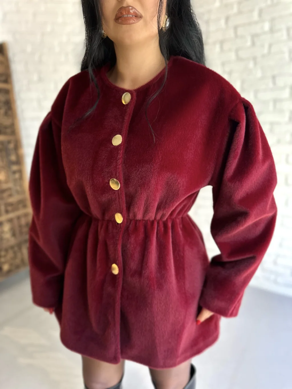 Kadın Önü Düğmeli Astarlı Kısa Kaşe Kaban