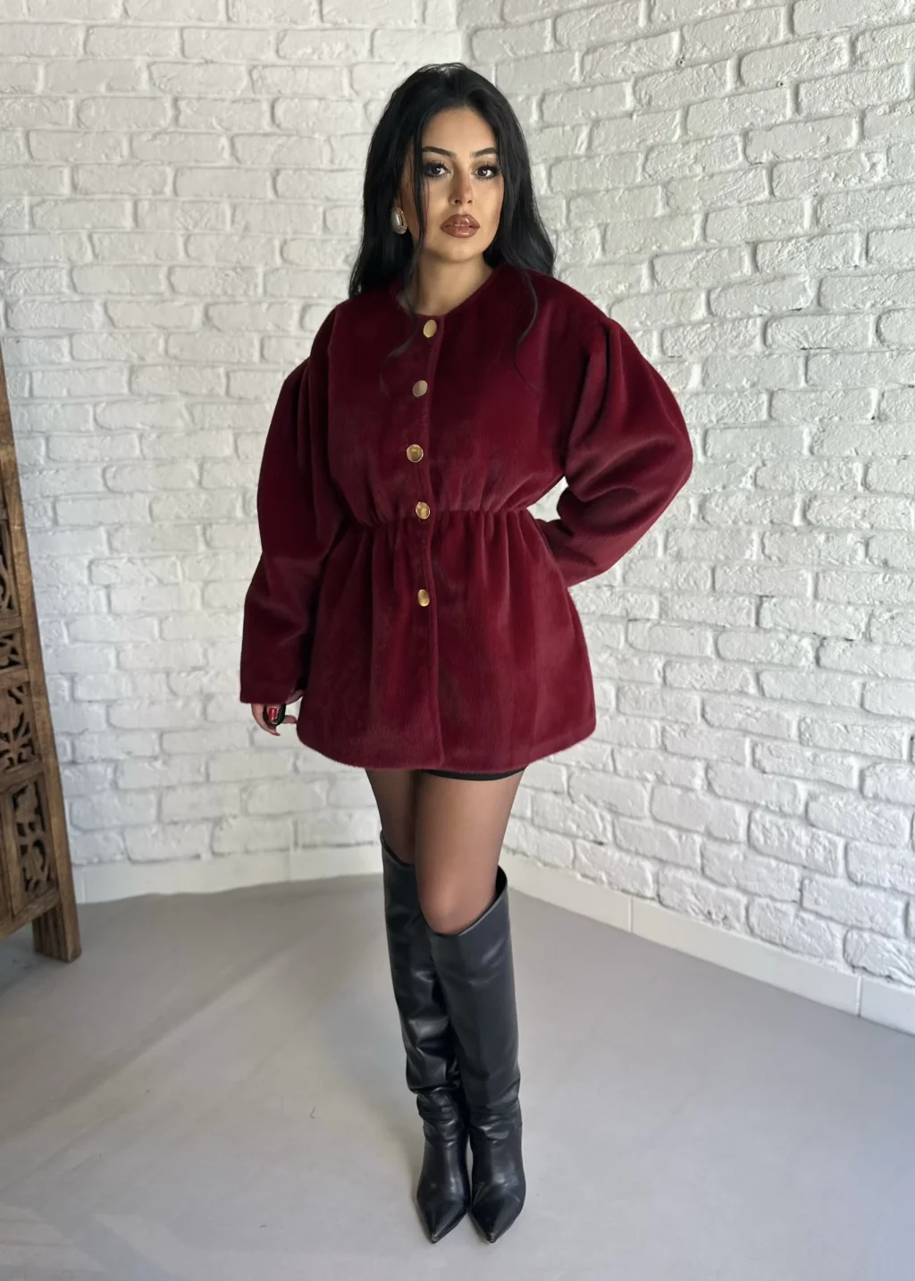 Kadın Beli Lastikli Fox Kumaş Gold Düğmeli Ceket