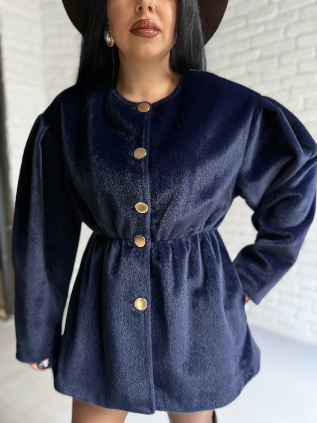Kadın Beli Lastikli Fox Kumaş Gold Düğmeli Ceket