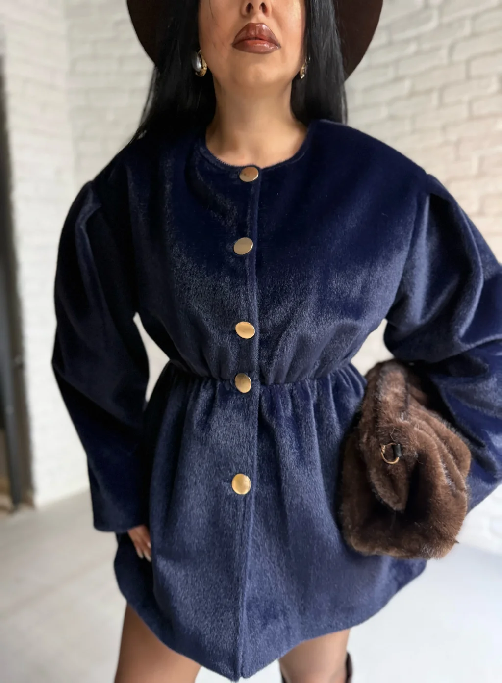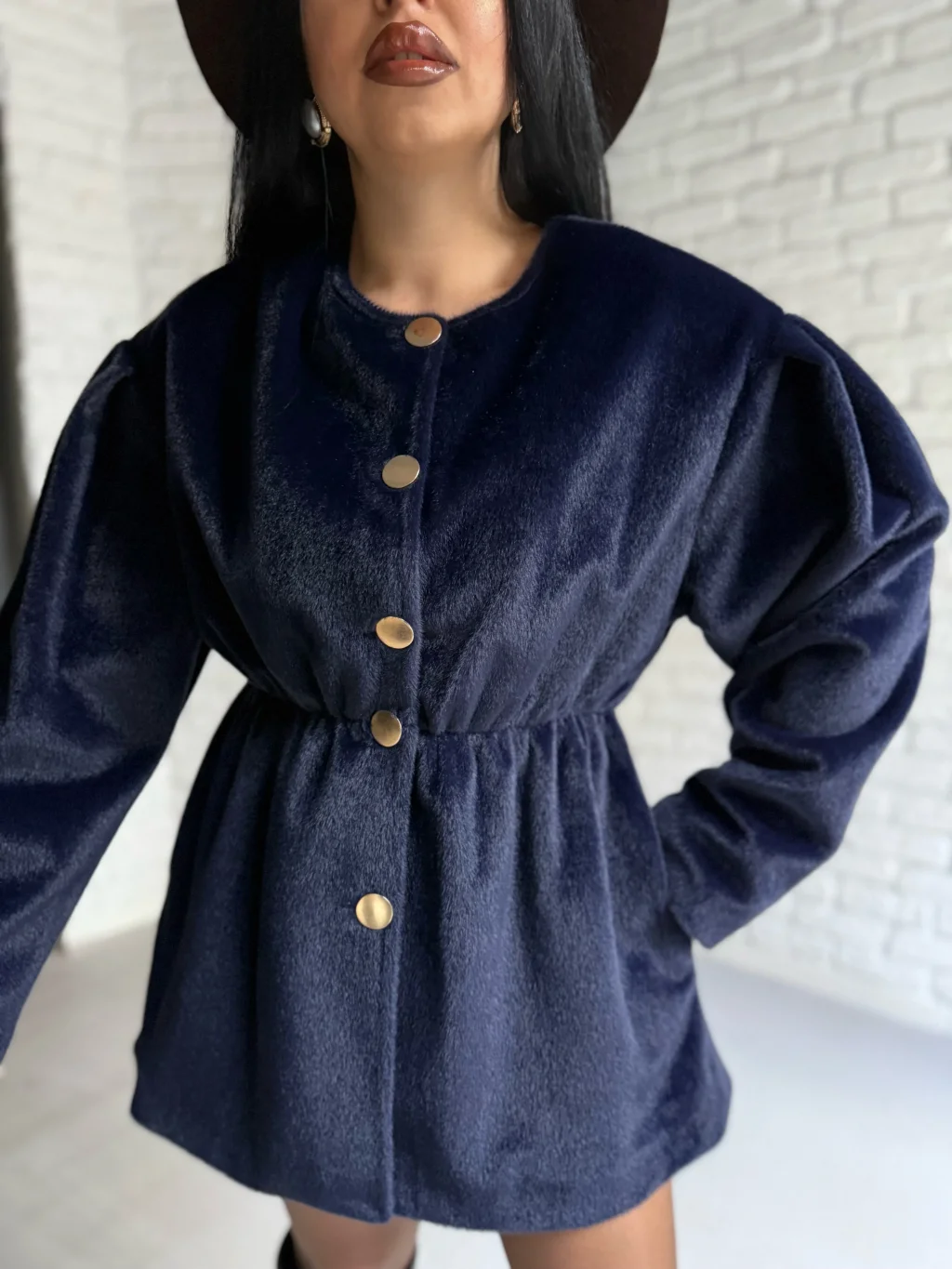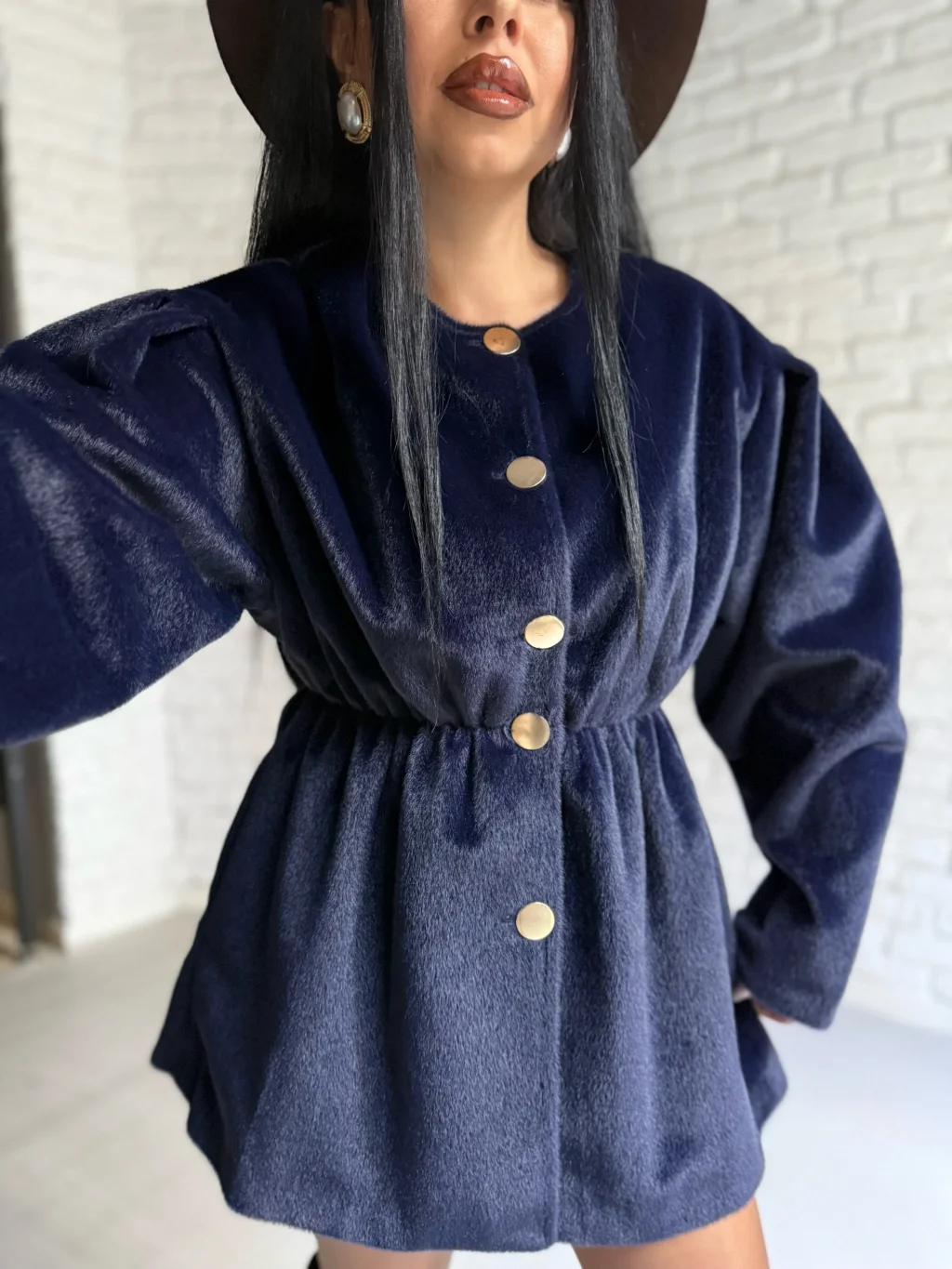 Kadın Önü Düğmeli Astarlı Kısa Kaşe Kaban