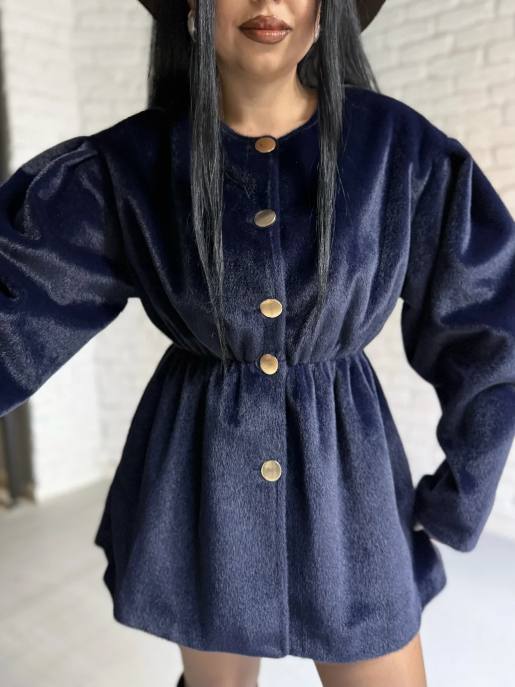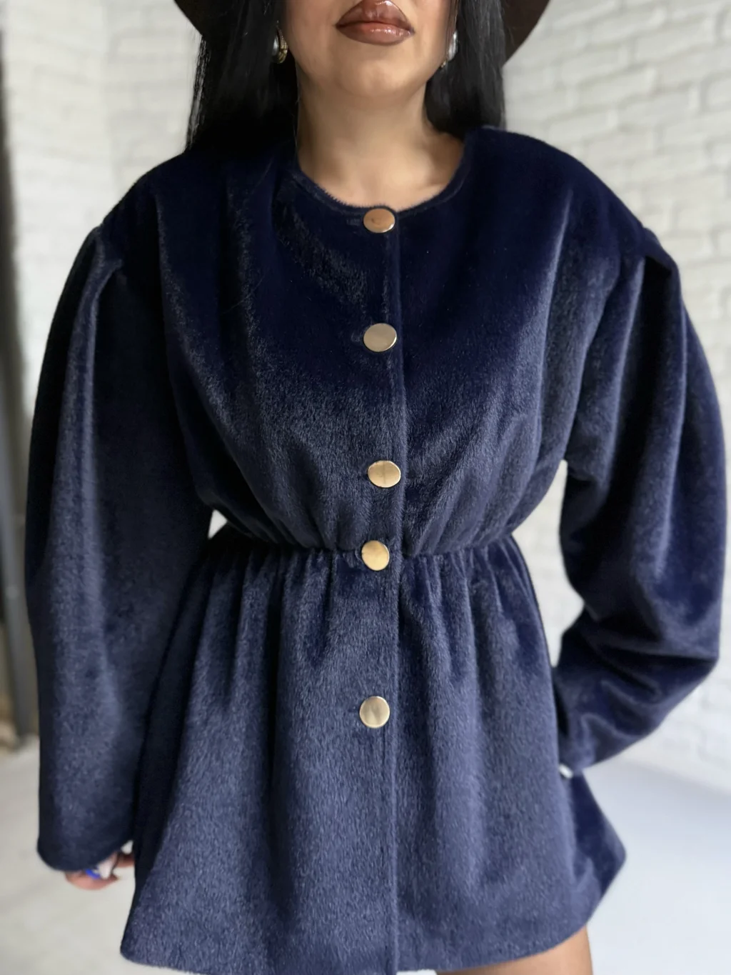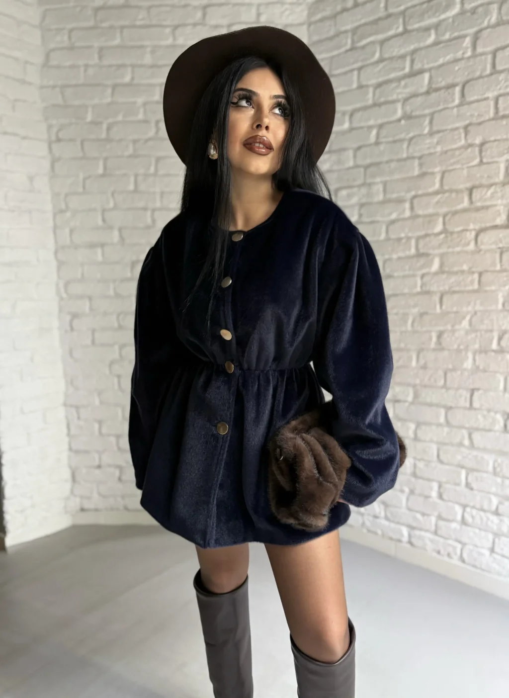 Kadın Önü Düğmeli Astarlı Kısa Kaşe Kaban
