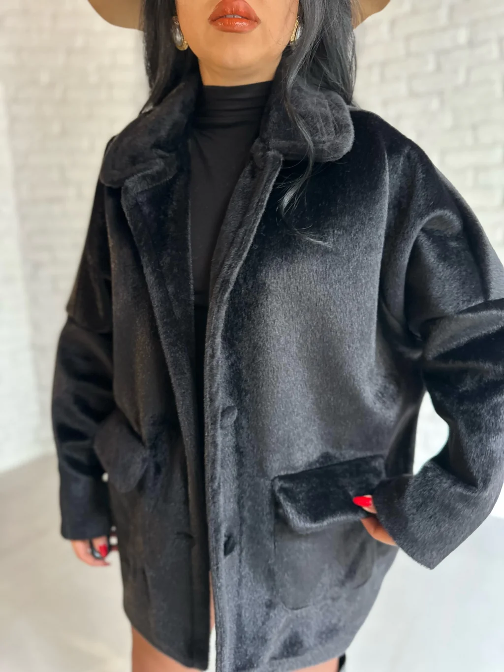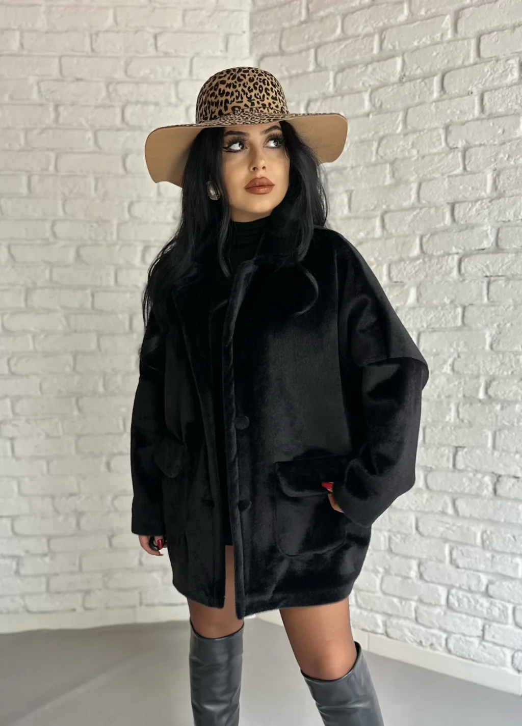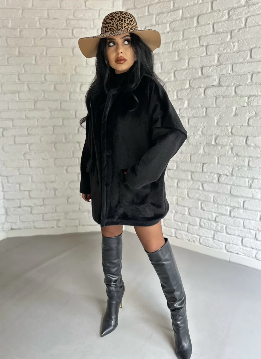 Kadın Önü Düğmeli Astarlı Kısa Kaşe Kaban