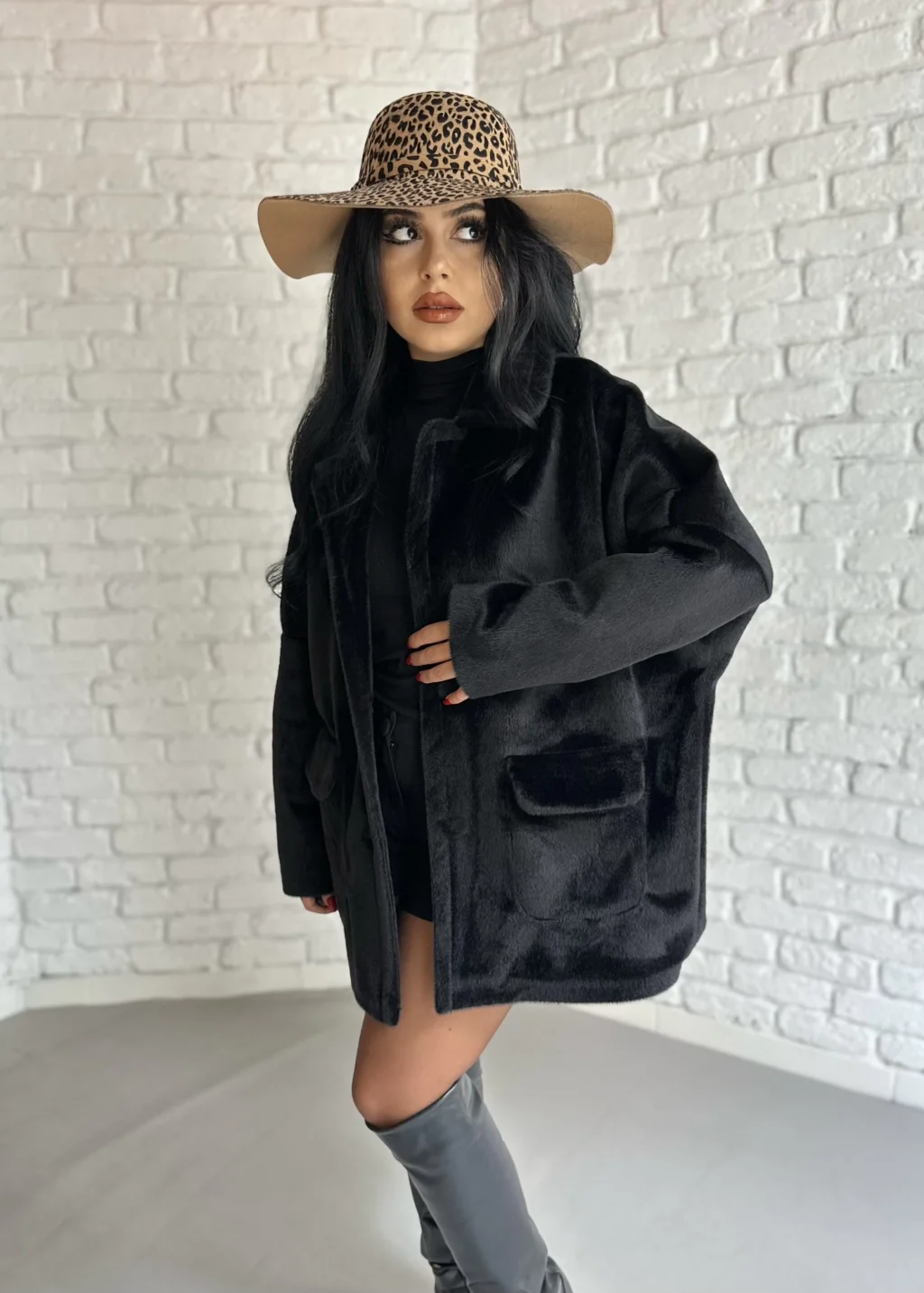 Kadın Çift Kapaklı Fox Kumaş Kürk Kaban