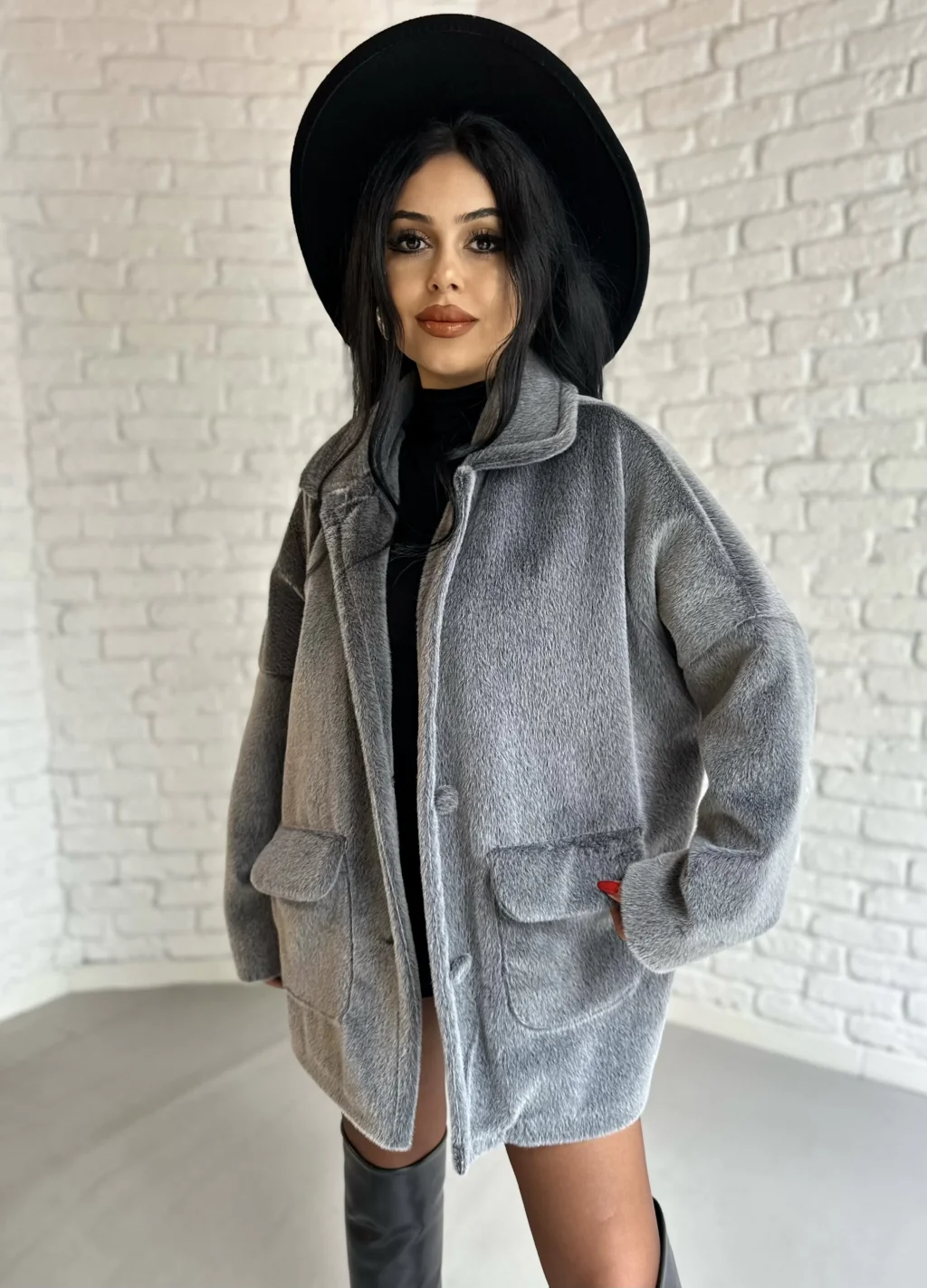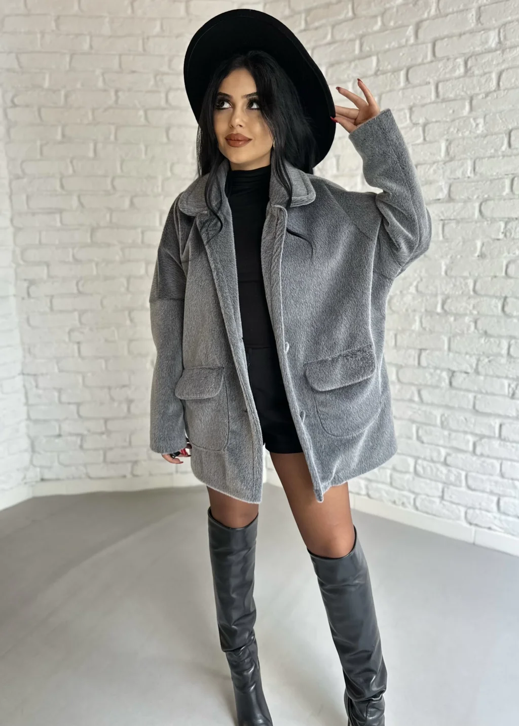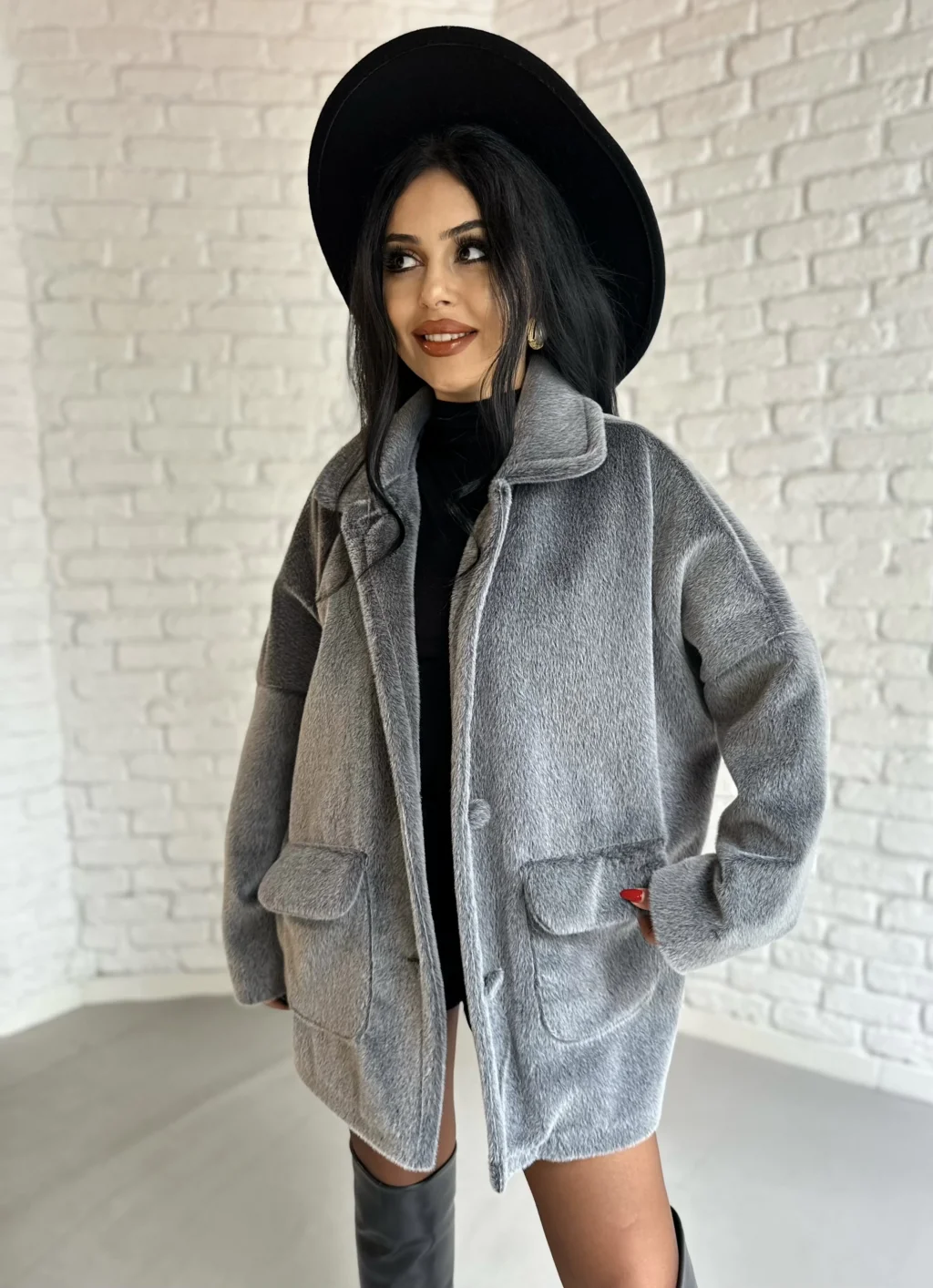 Kadın Önü Düğmeli Astarlı Kısa Kaşe Kaban