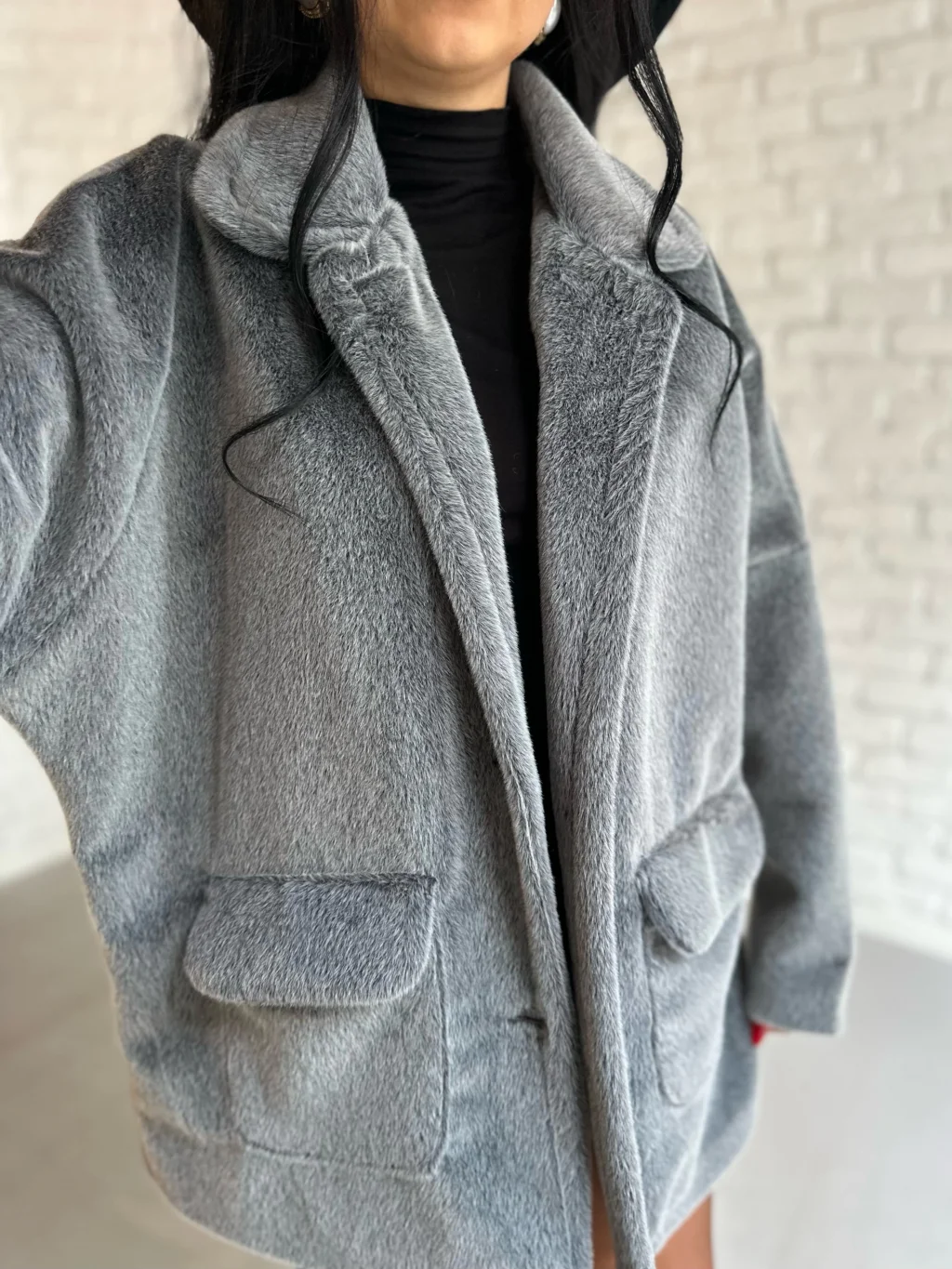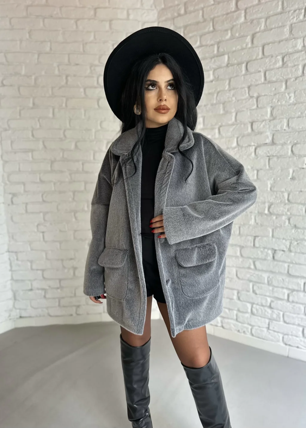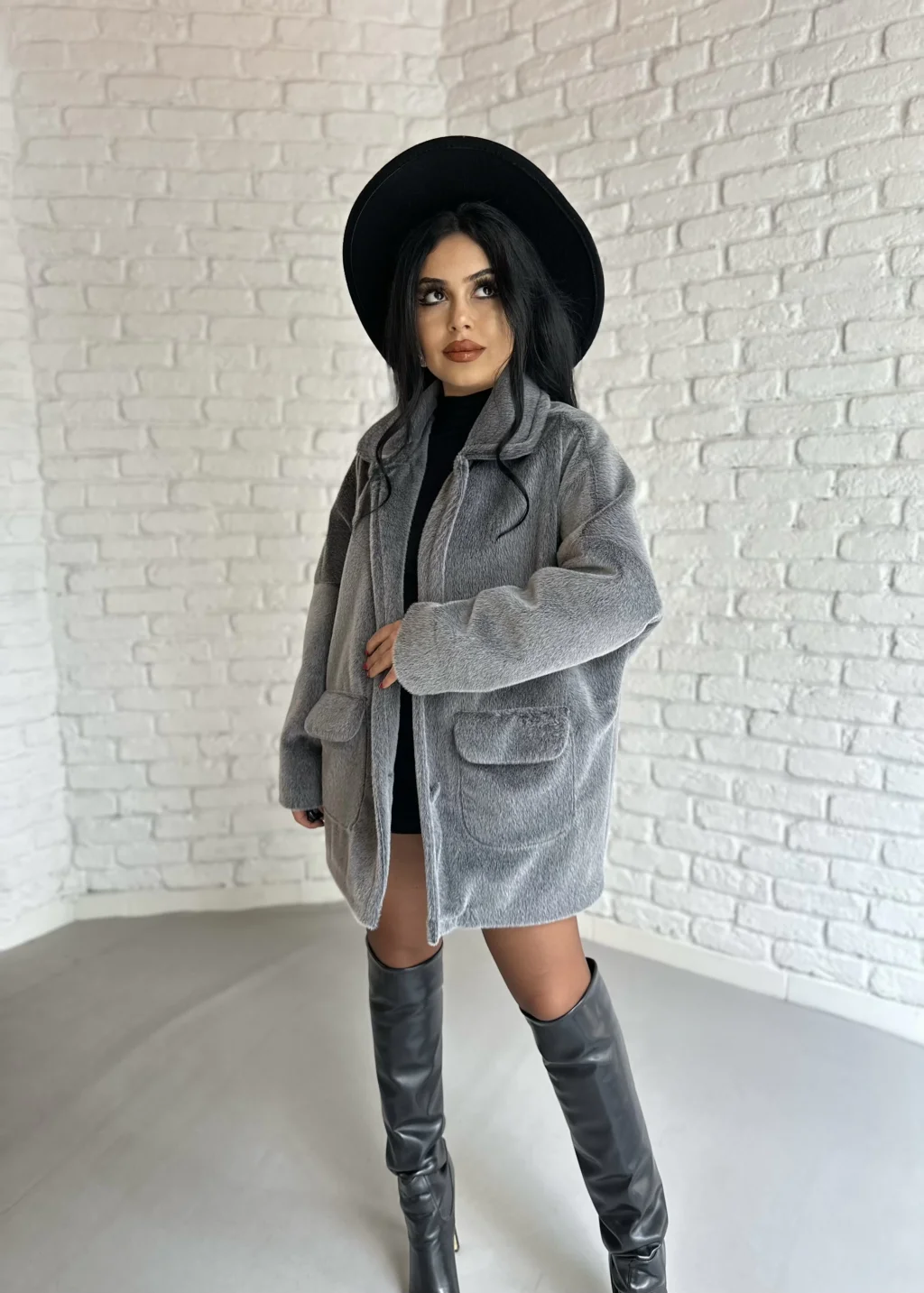 Kadın Önü Düğmeli Astarlı Kısa Kaşe Kaban
