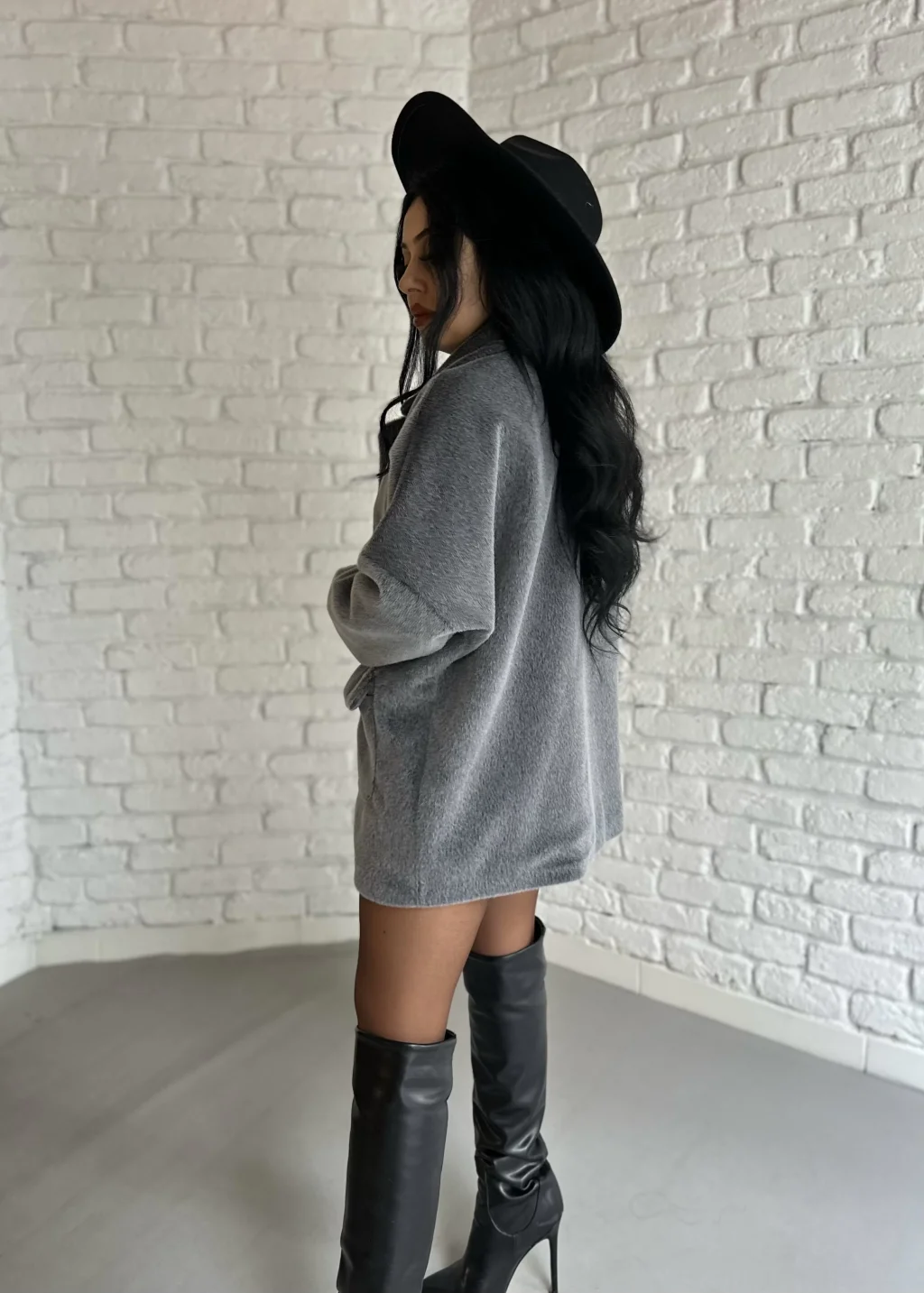 Kadın Kuşaklı Oversize Kısa Kaşe Kaban