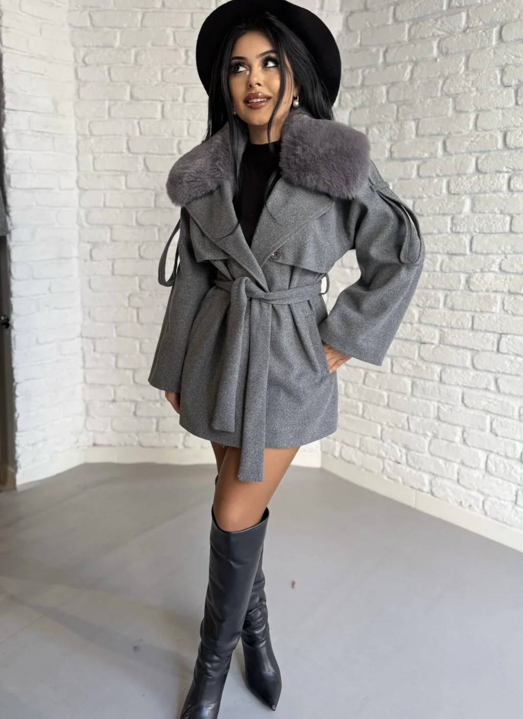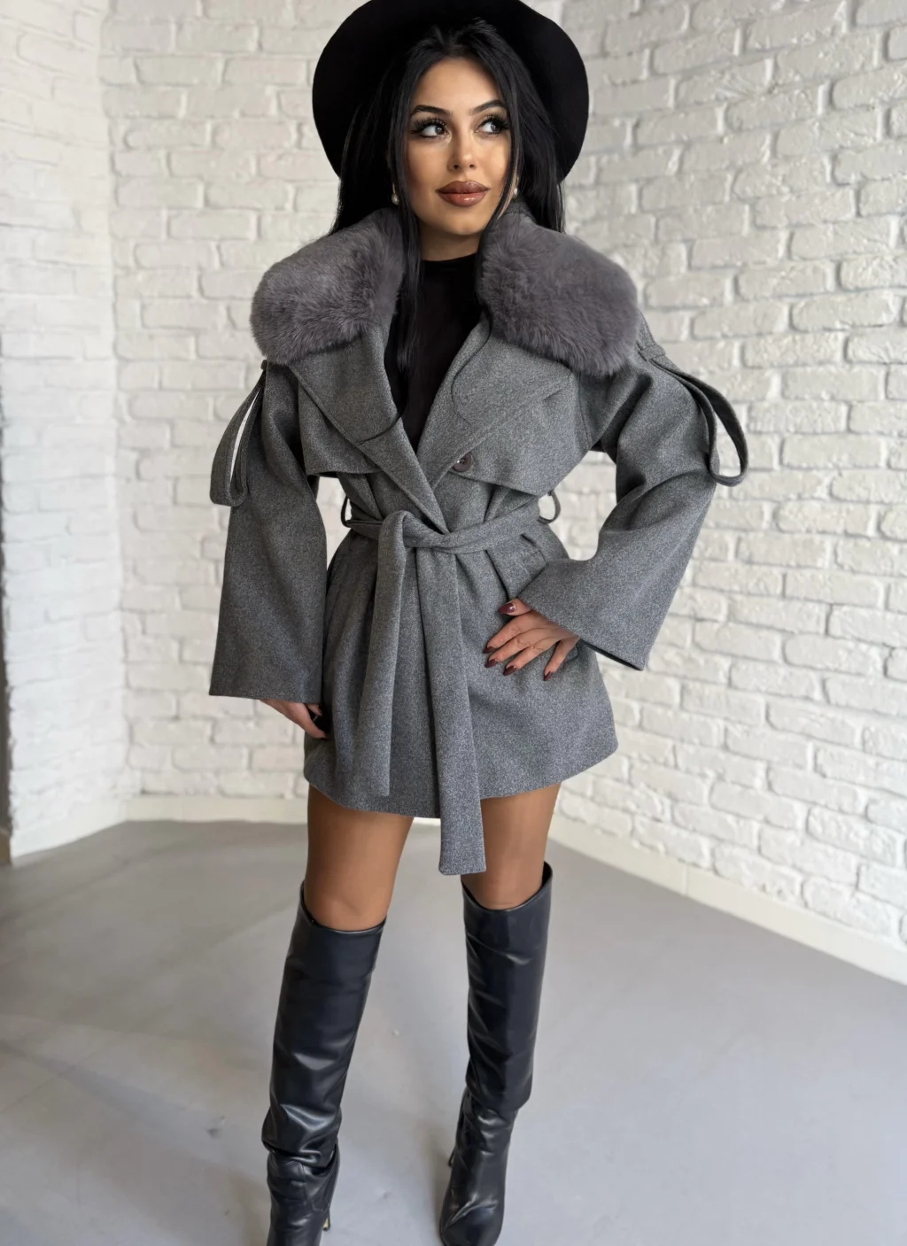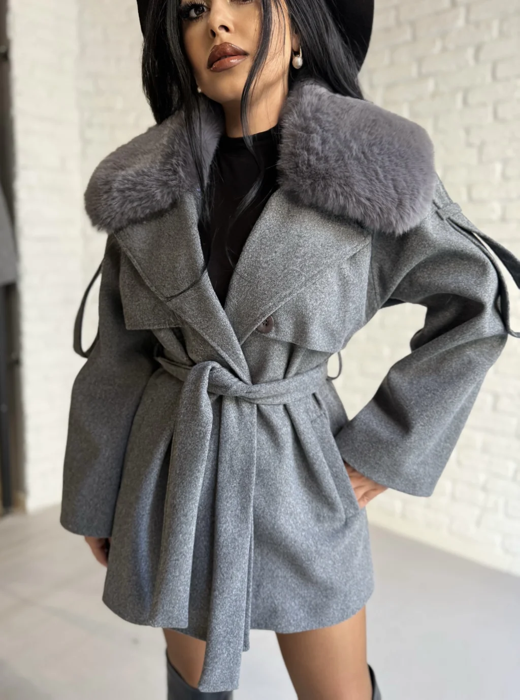 Kadın Çıkarılabilir Kürk Yaka Kaşe Kaban
