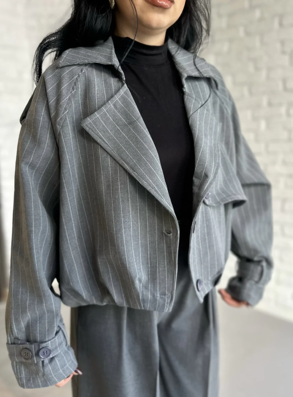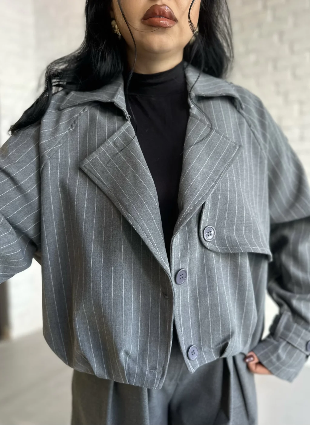 Kadın Çizgili Astarlı Kısa Bomber Ceket