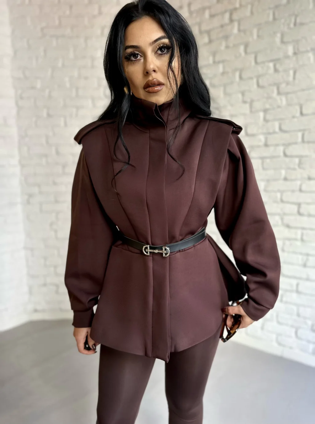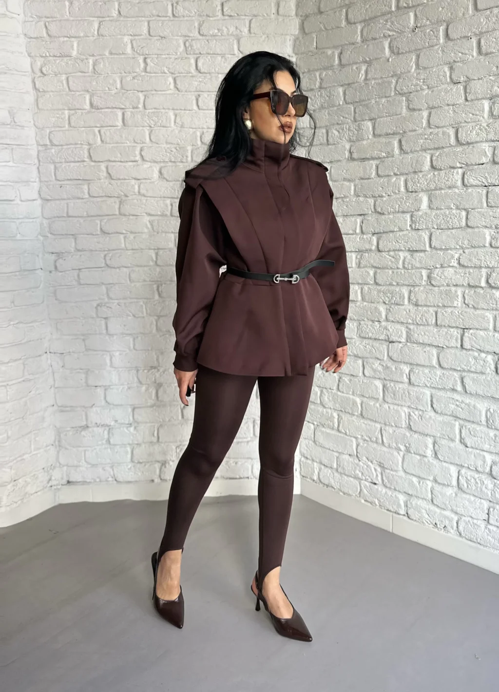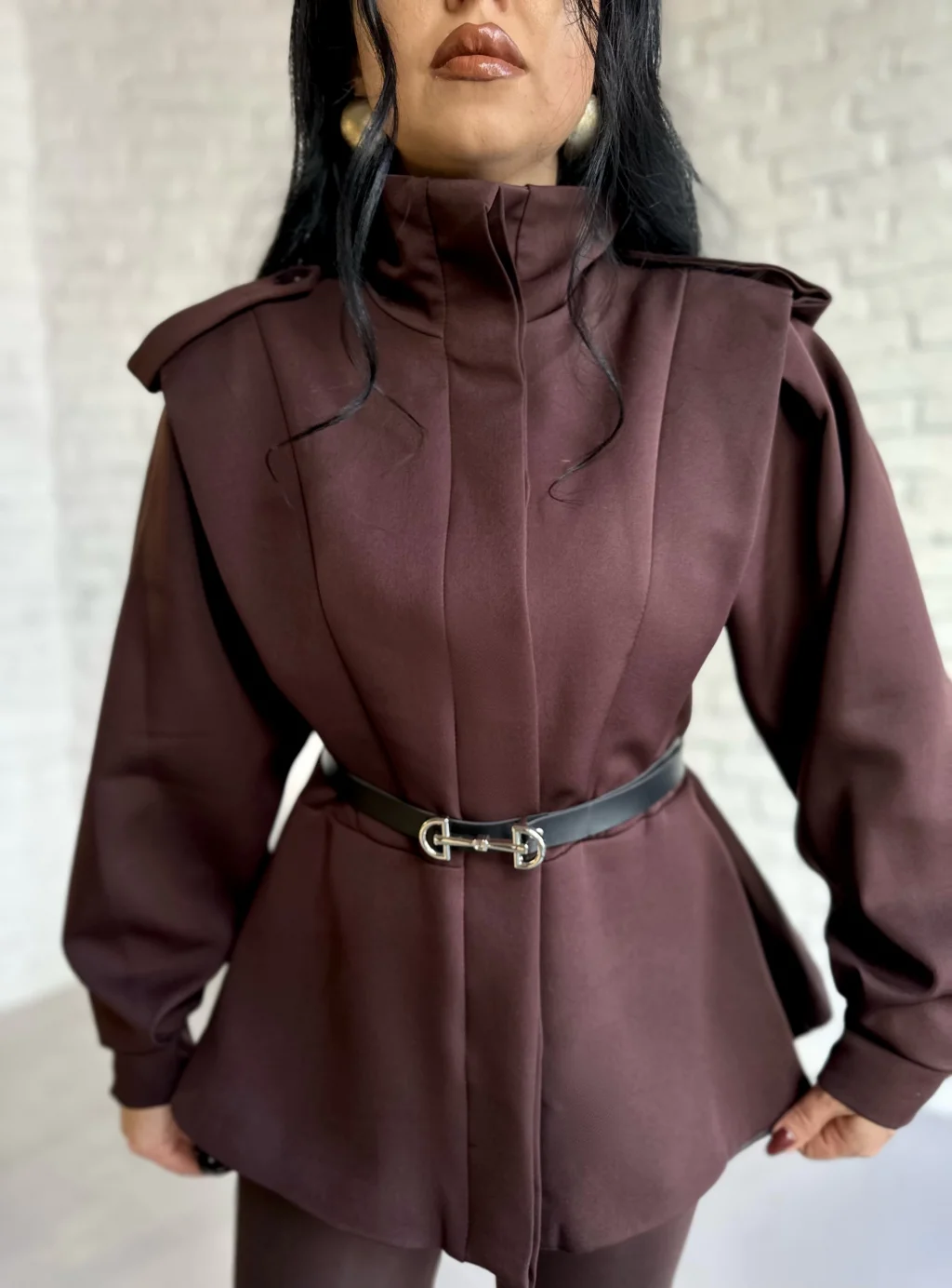 Kadın Beli Lastikli Fox Kumaş Gold Düğmeli Ceket