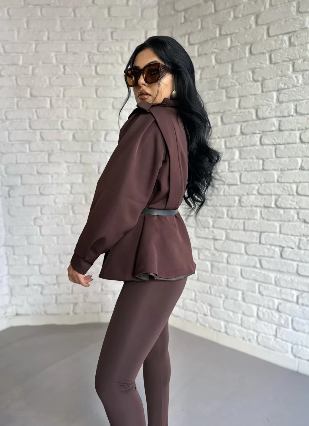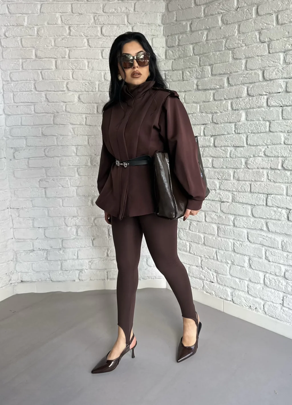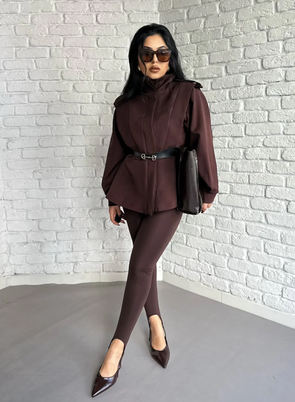 Kadın Beli Lastikli Fox Kumaş Gold Düğmeli Ceket