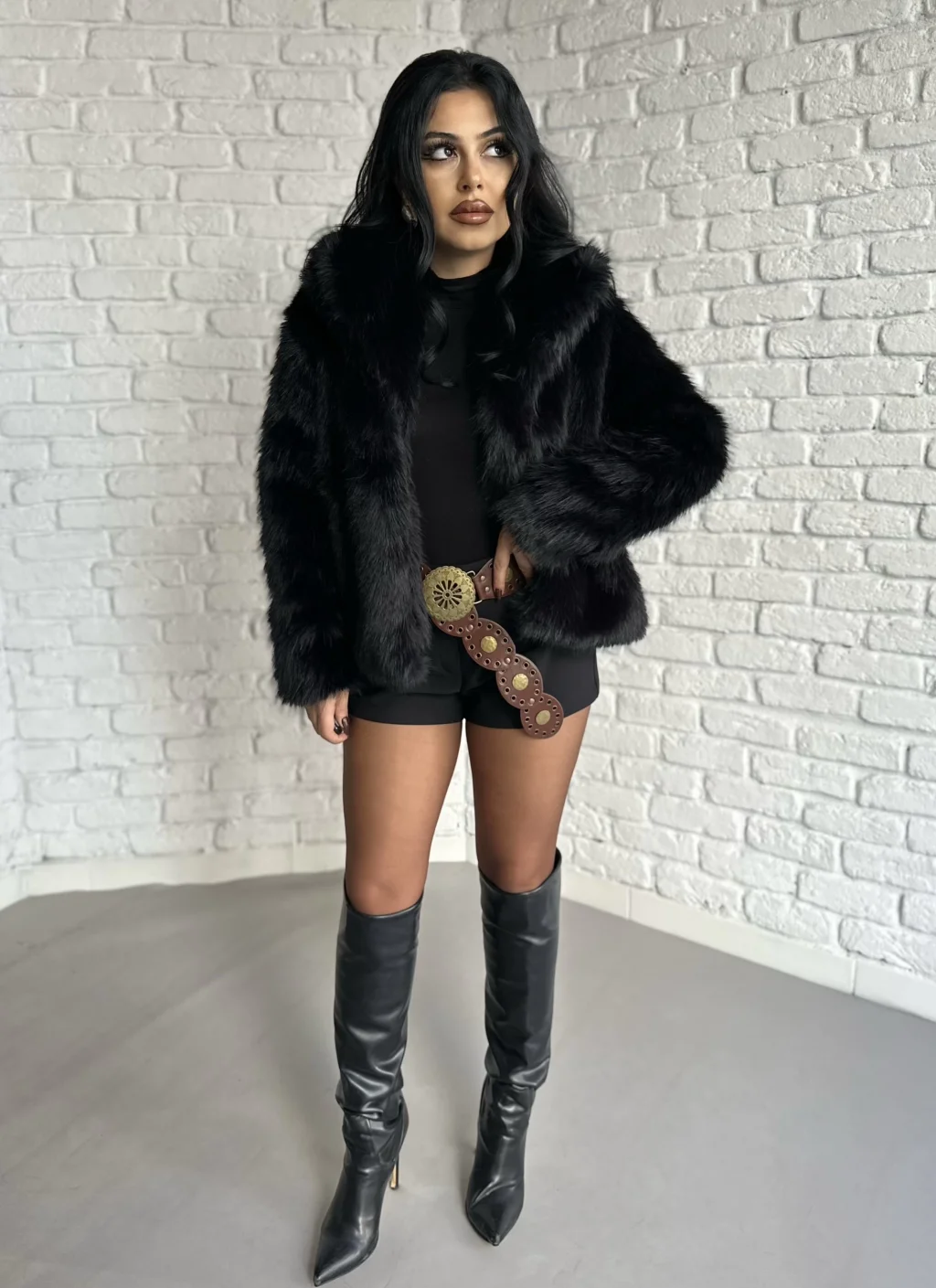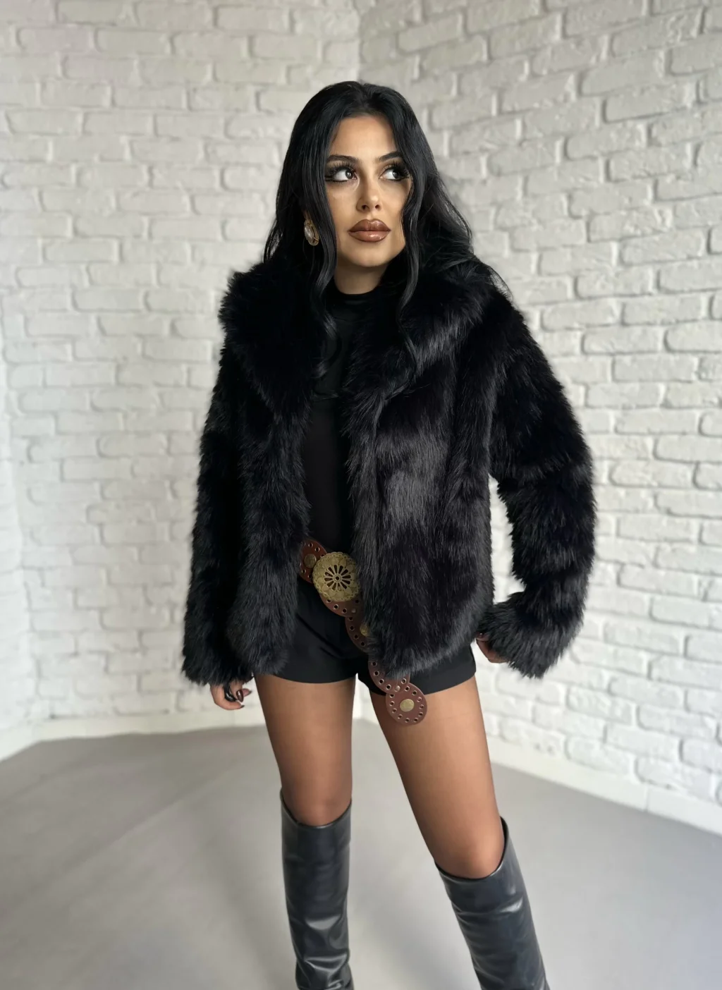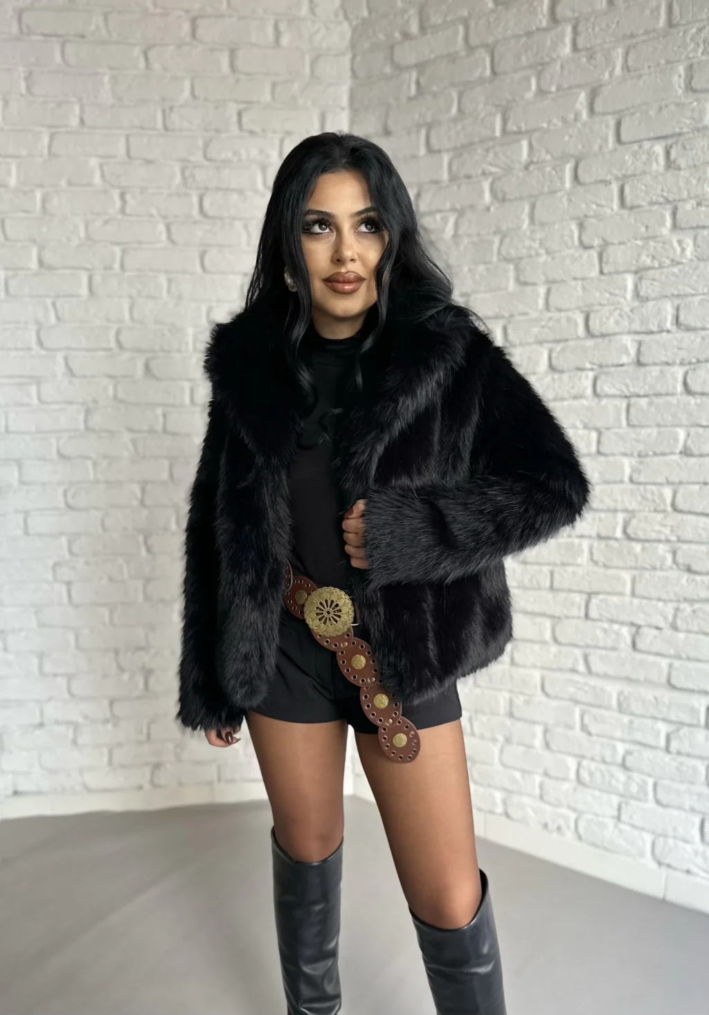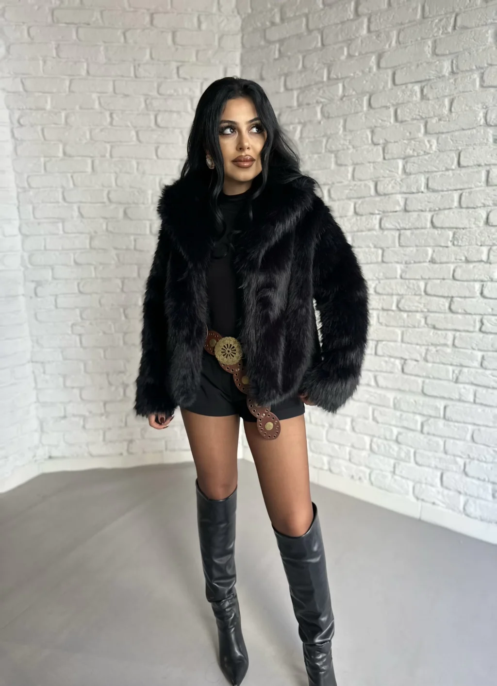 Kadın Geniş Yaka Astarlı Kürk Mont