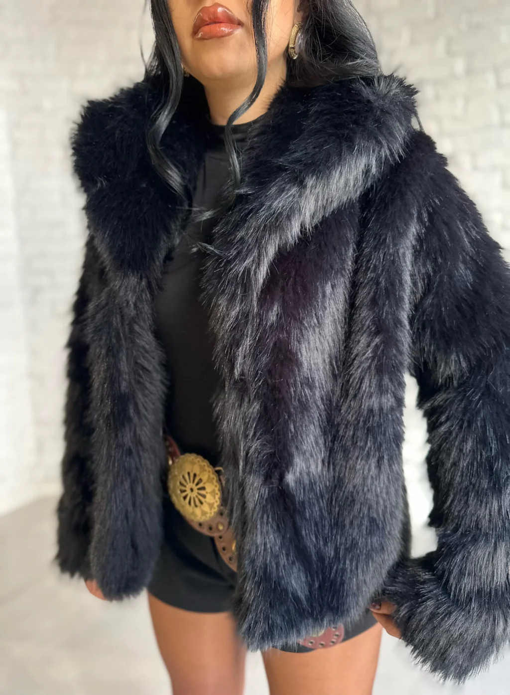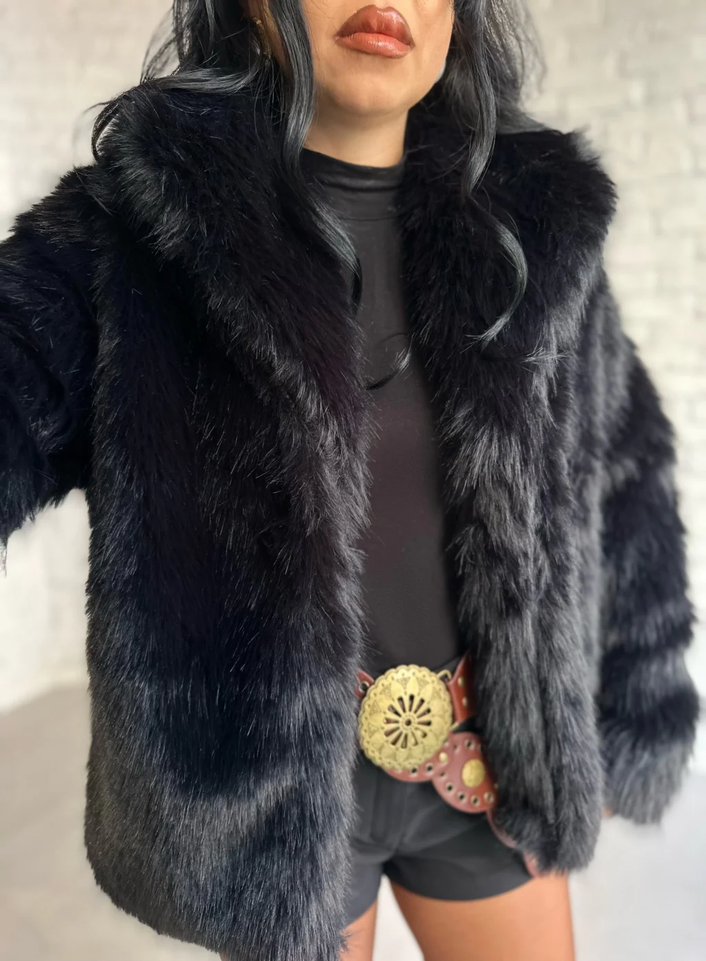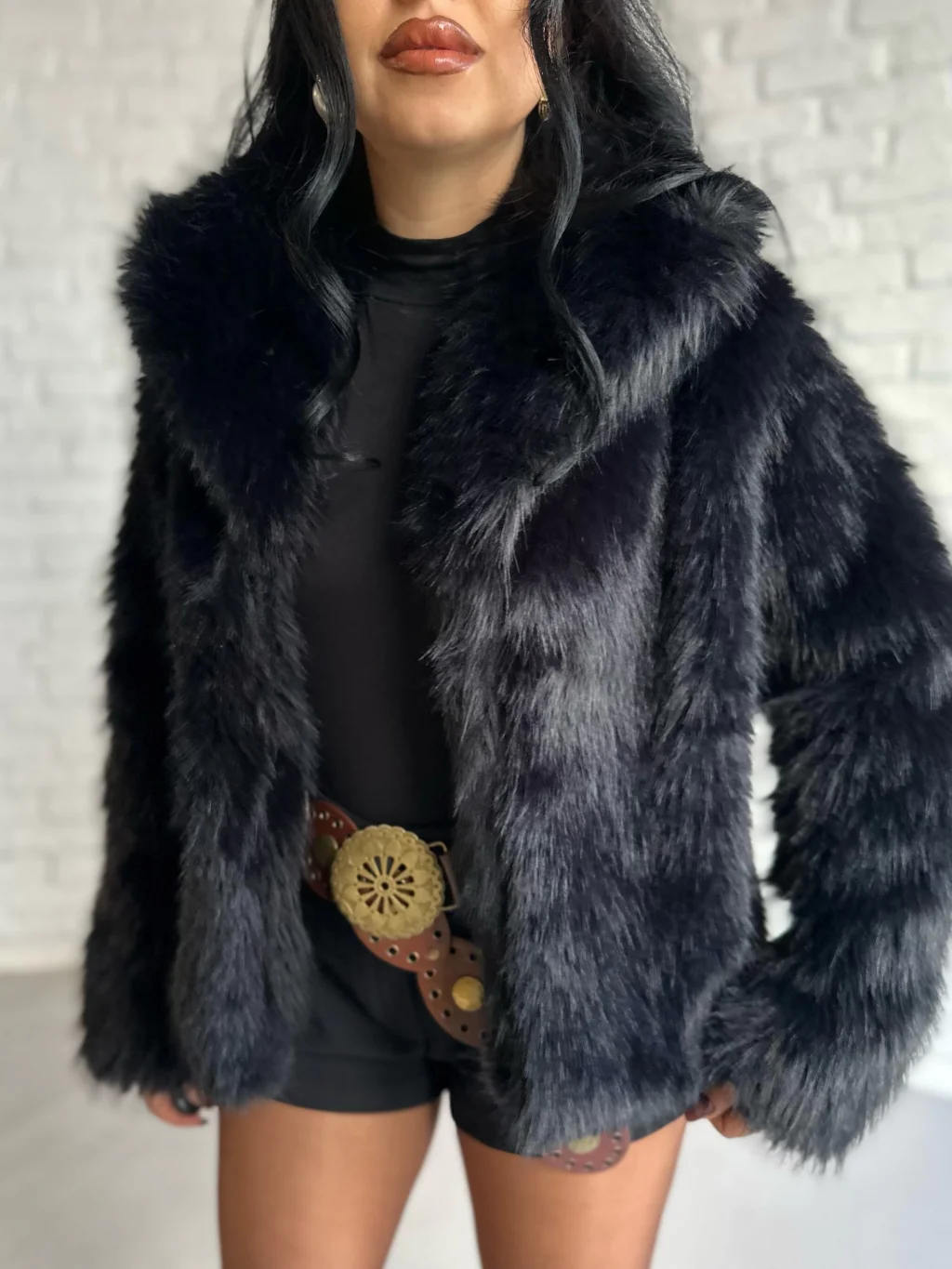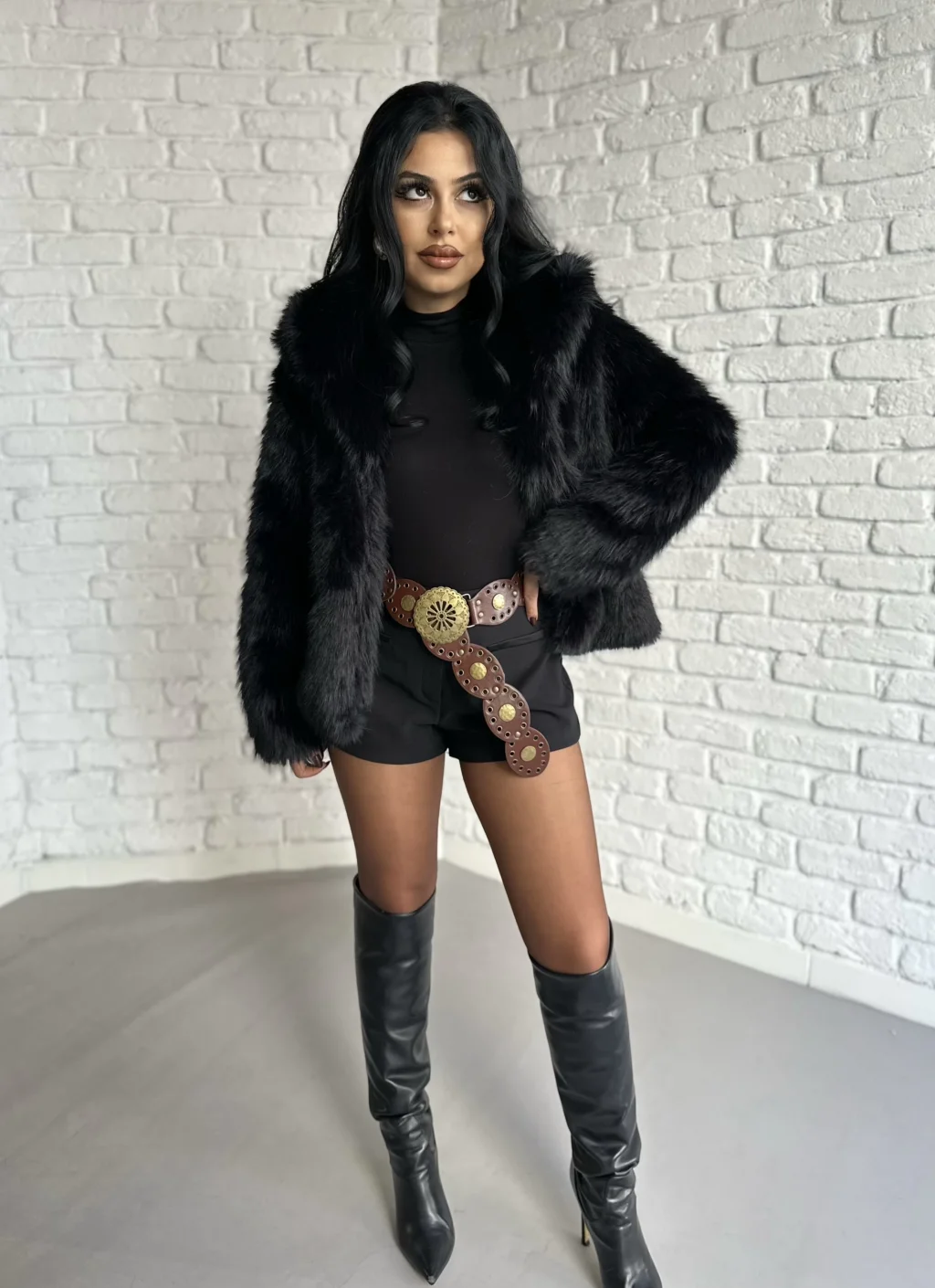 Kadın Geniş Yaka Astarlı Kürk Mont