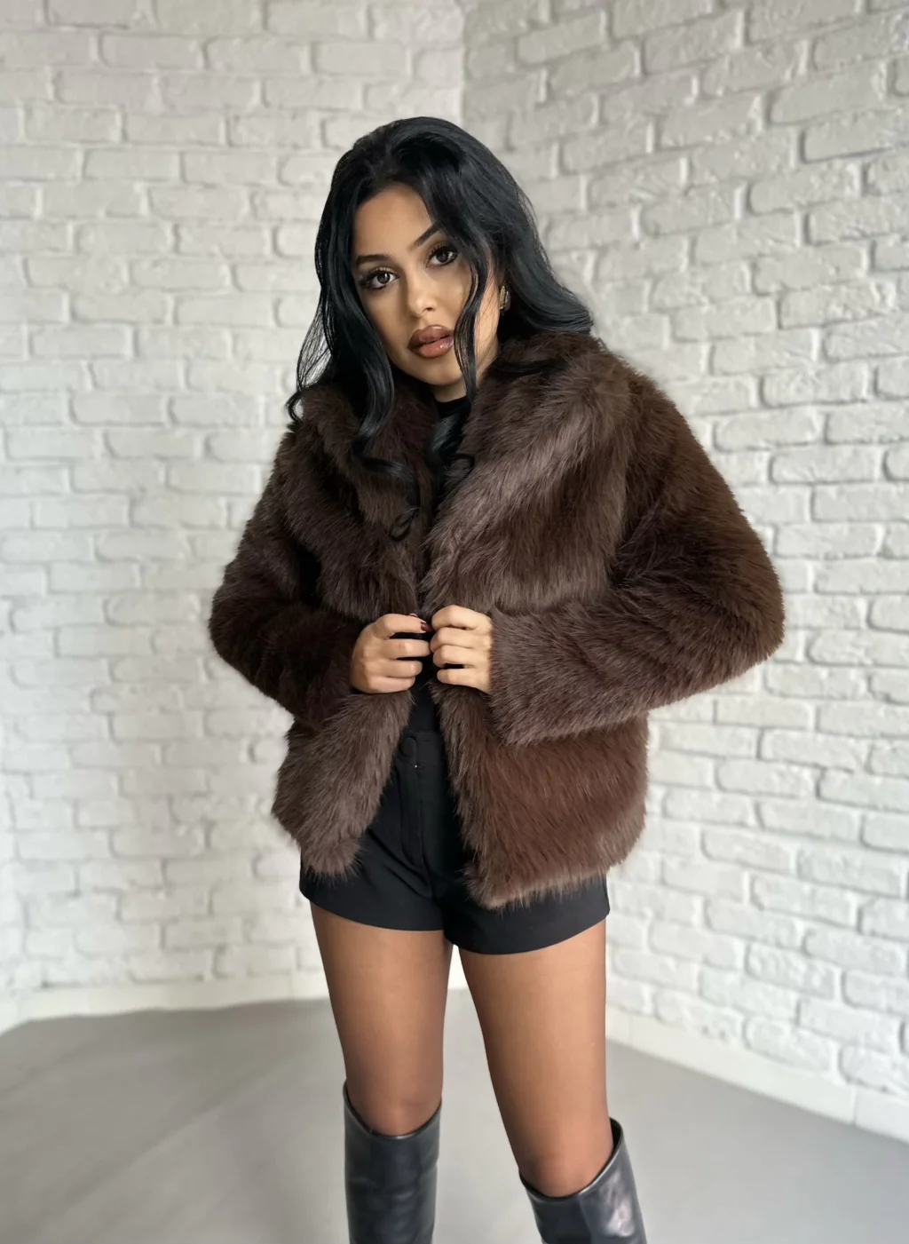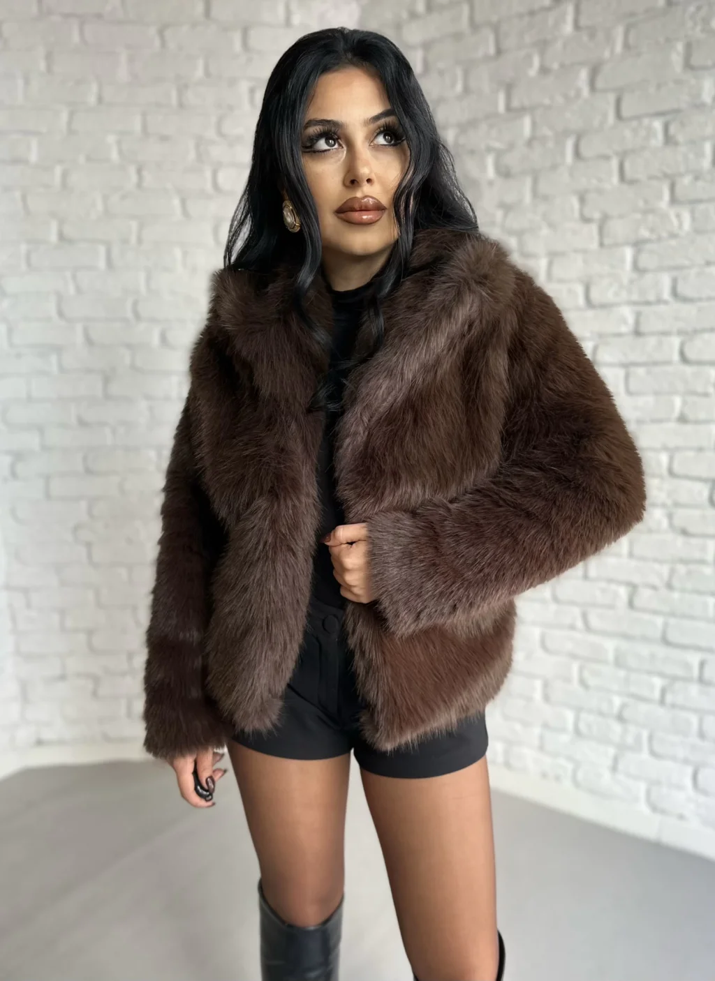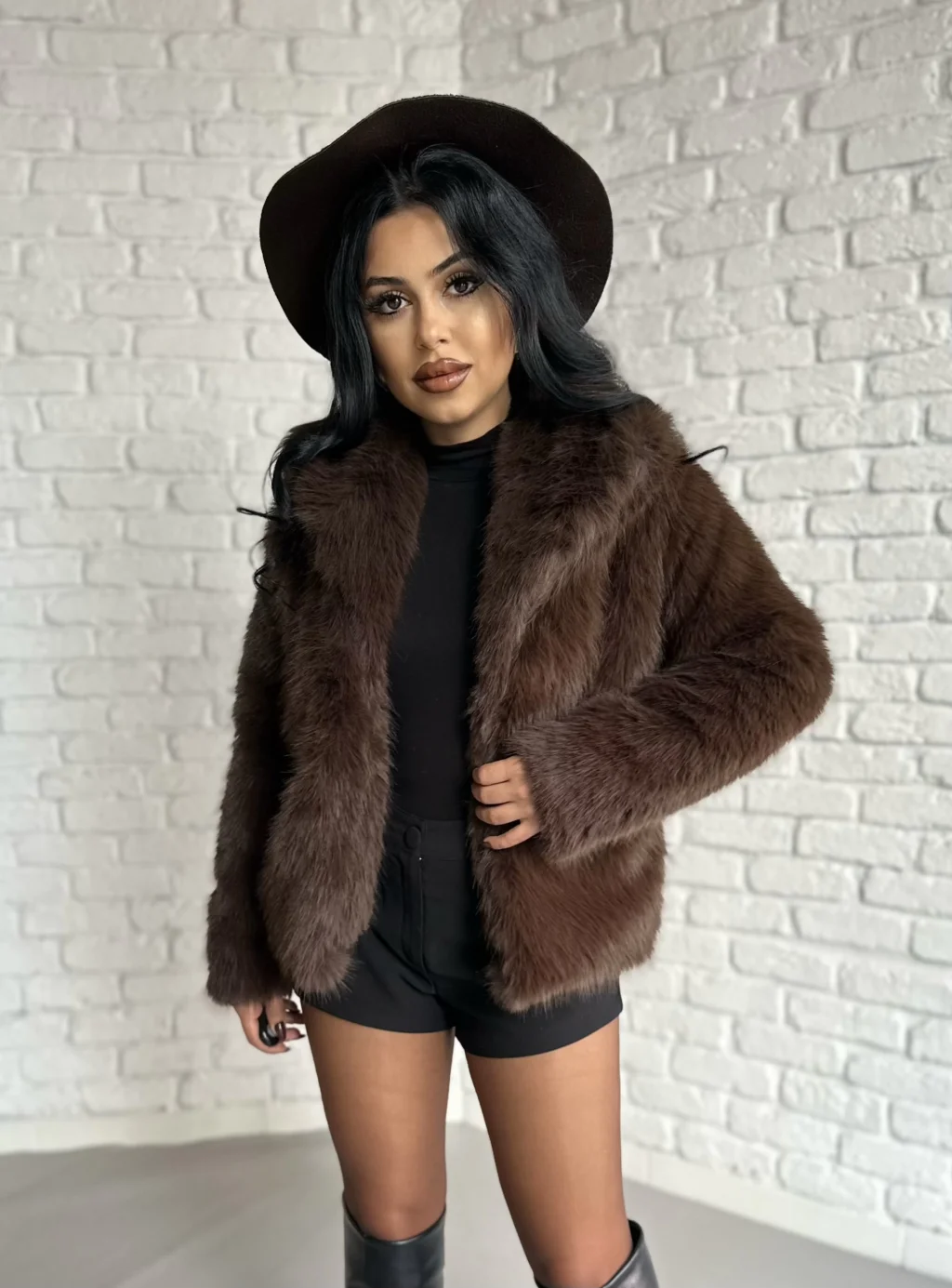 Kadın Geniş Yaka Astarlı Kürk Mont