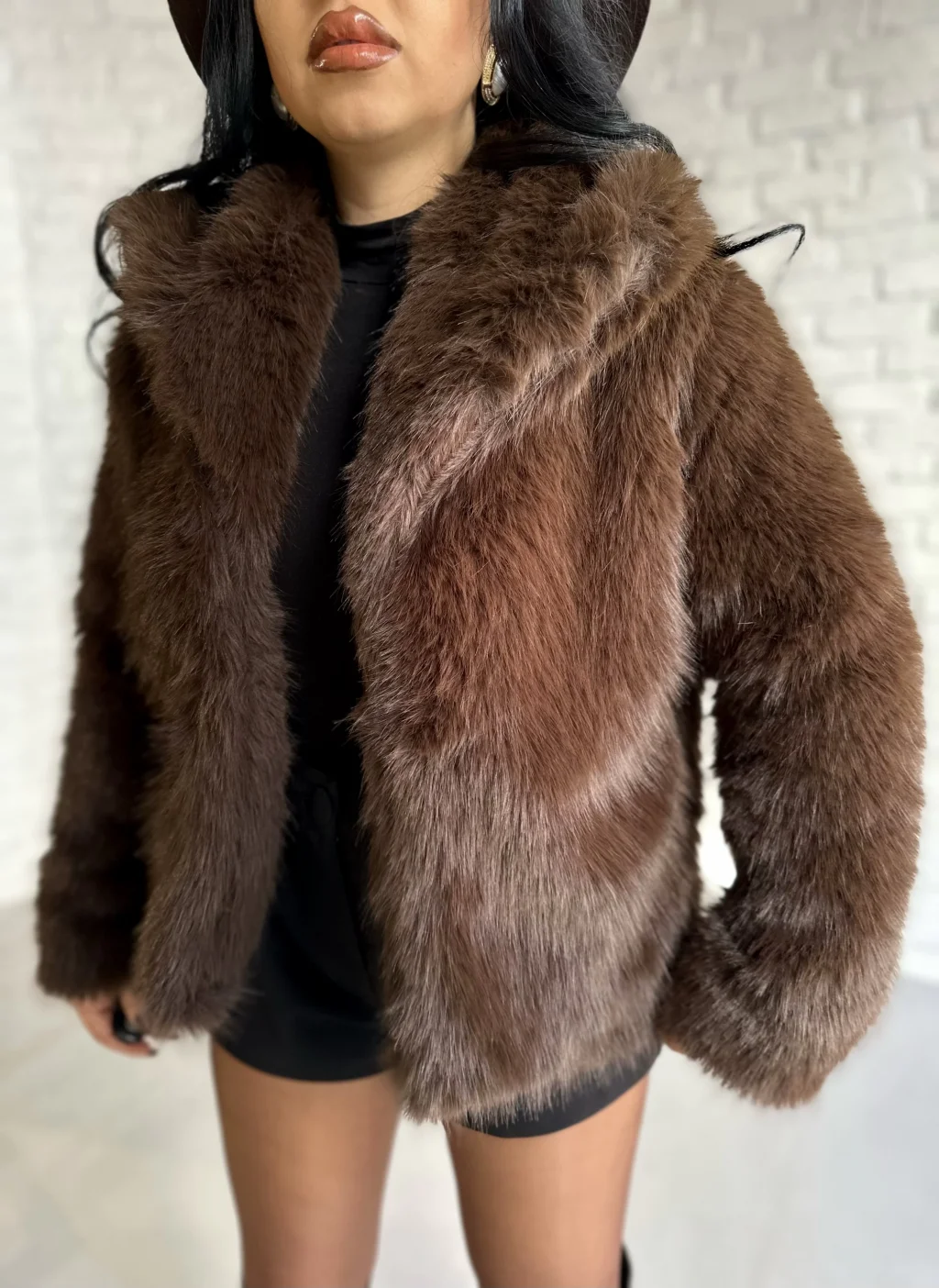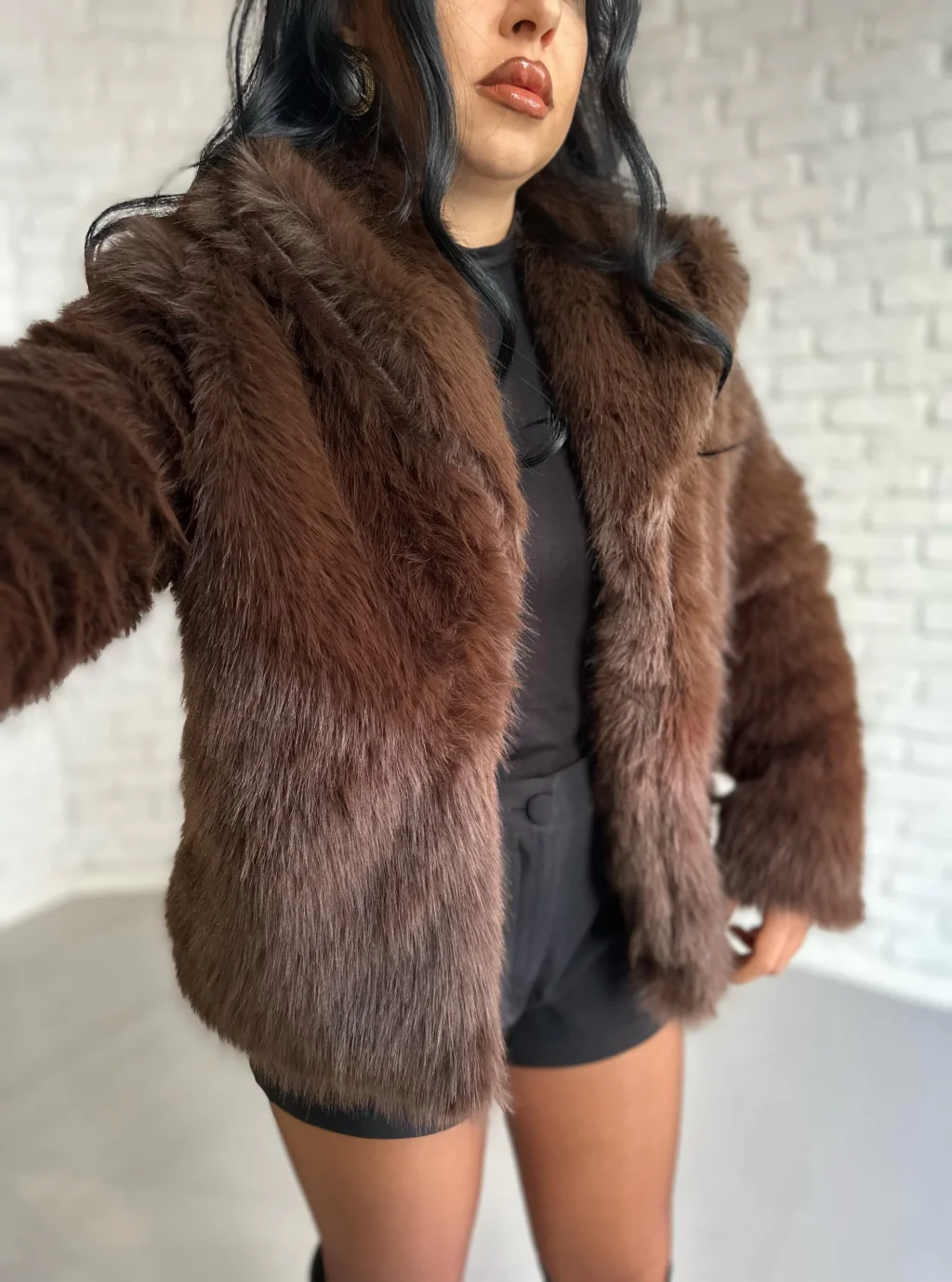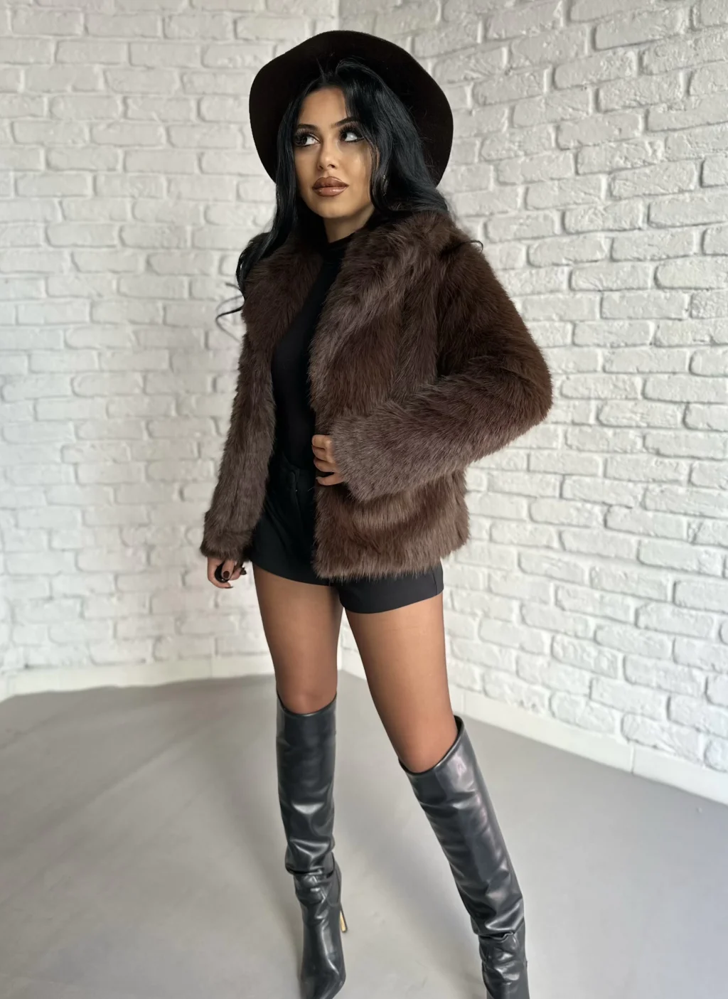 Kadın Geniş Yaka Astarlı Kürk Mont