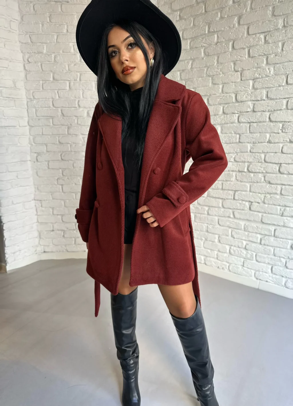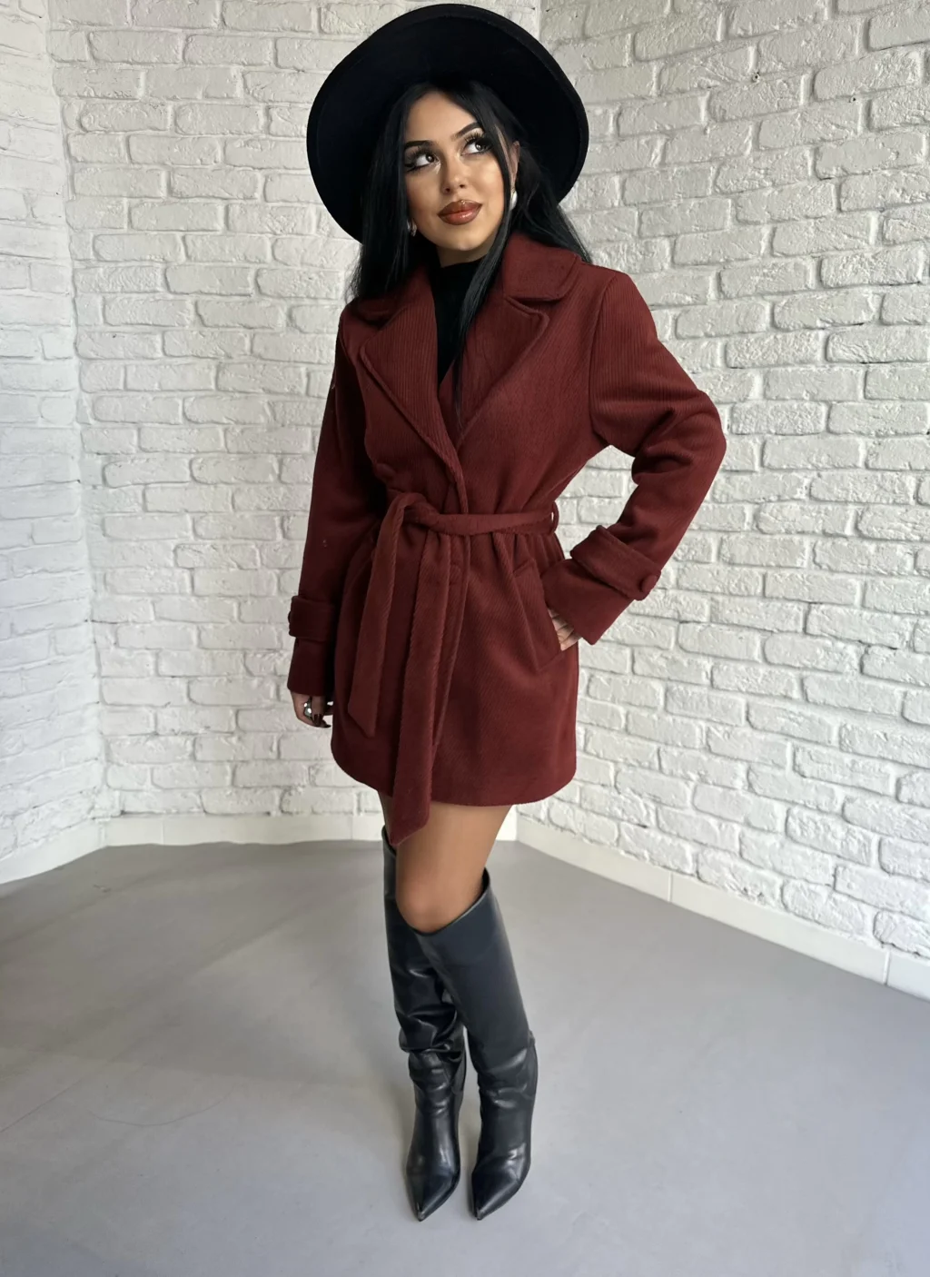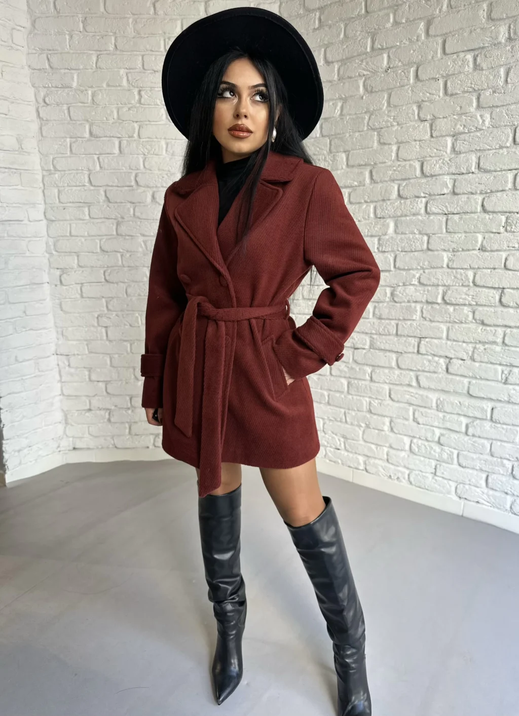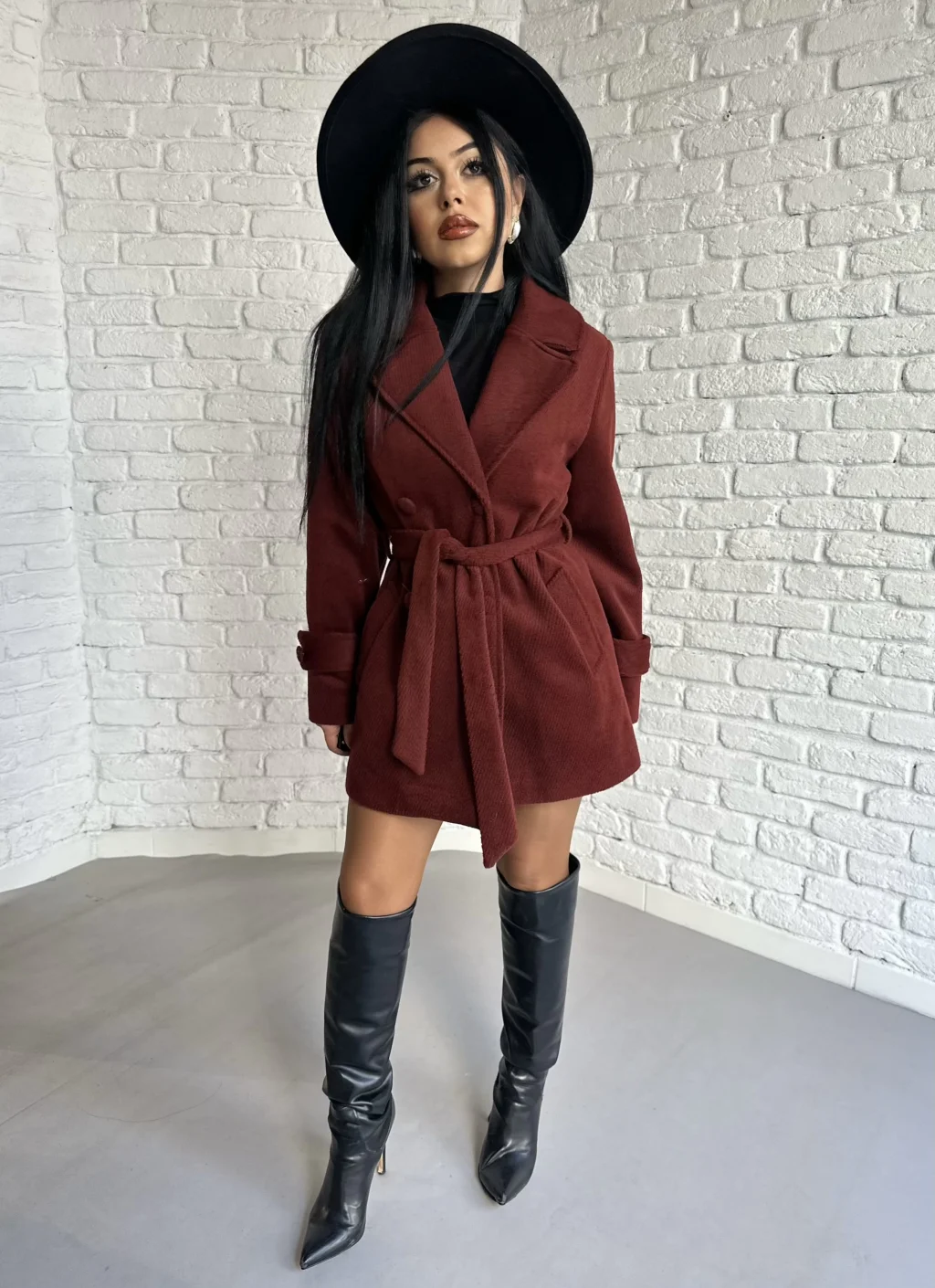 Kadın Kuşaklı Oversize Kısa Kaşe Kaban