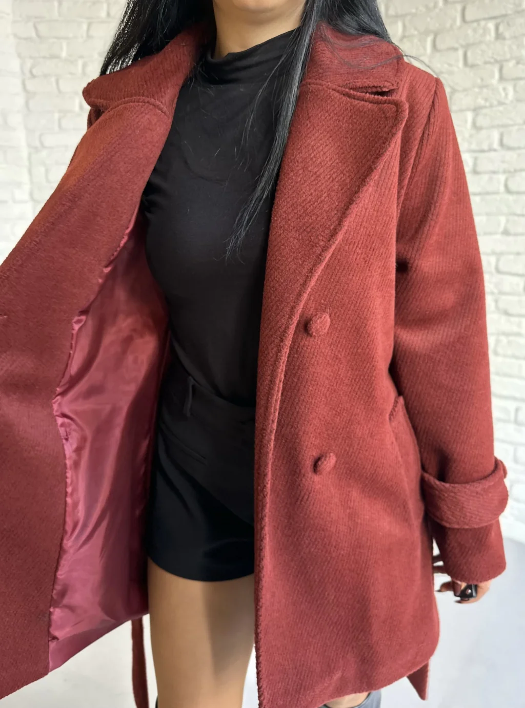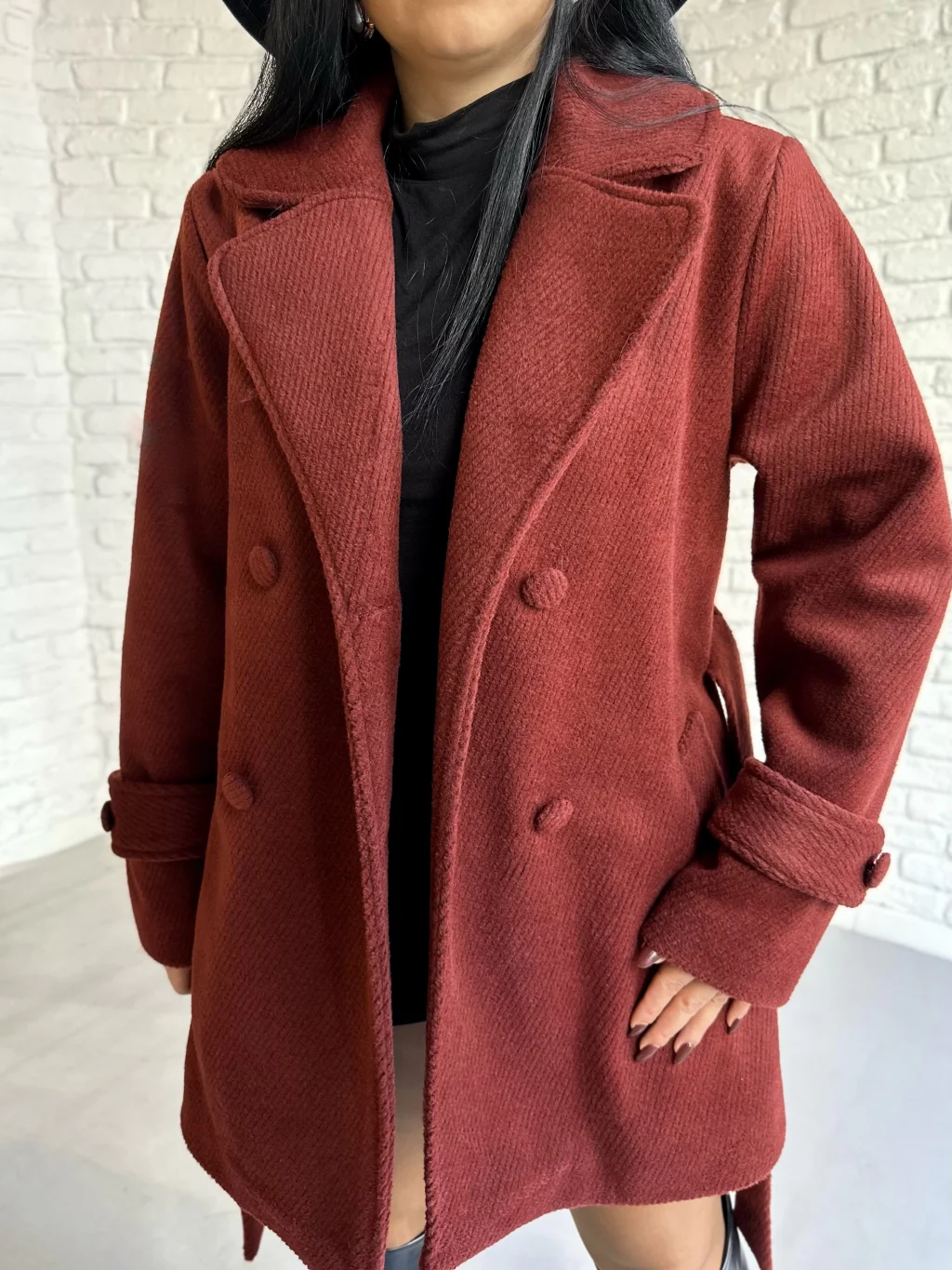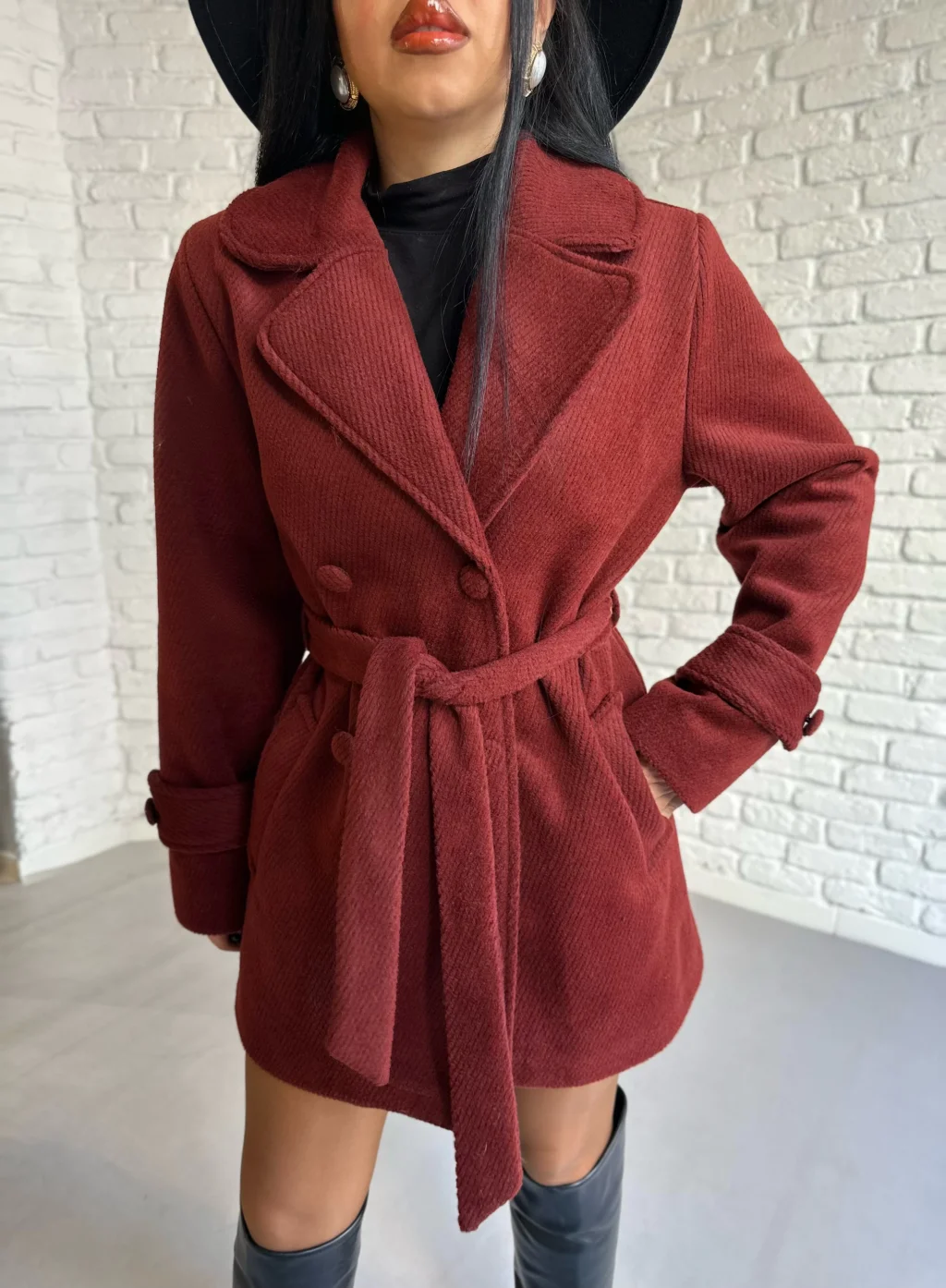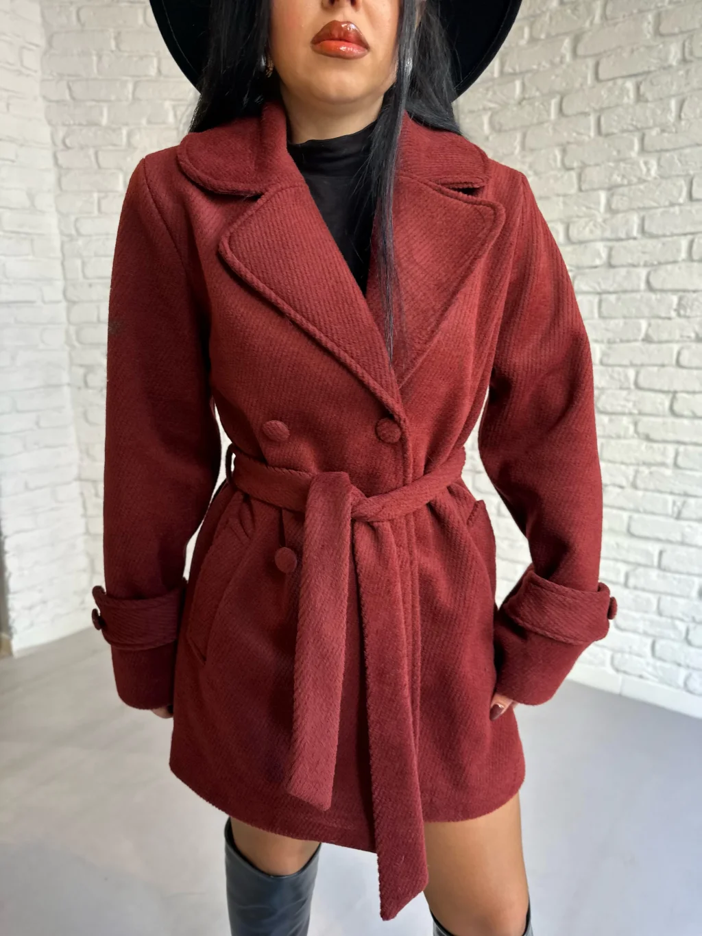 Kadın Kuşaklı Oversize Kısa Kaşe Kaban