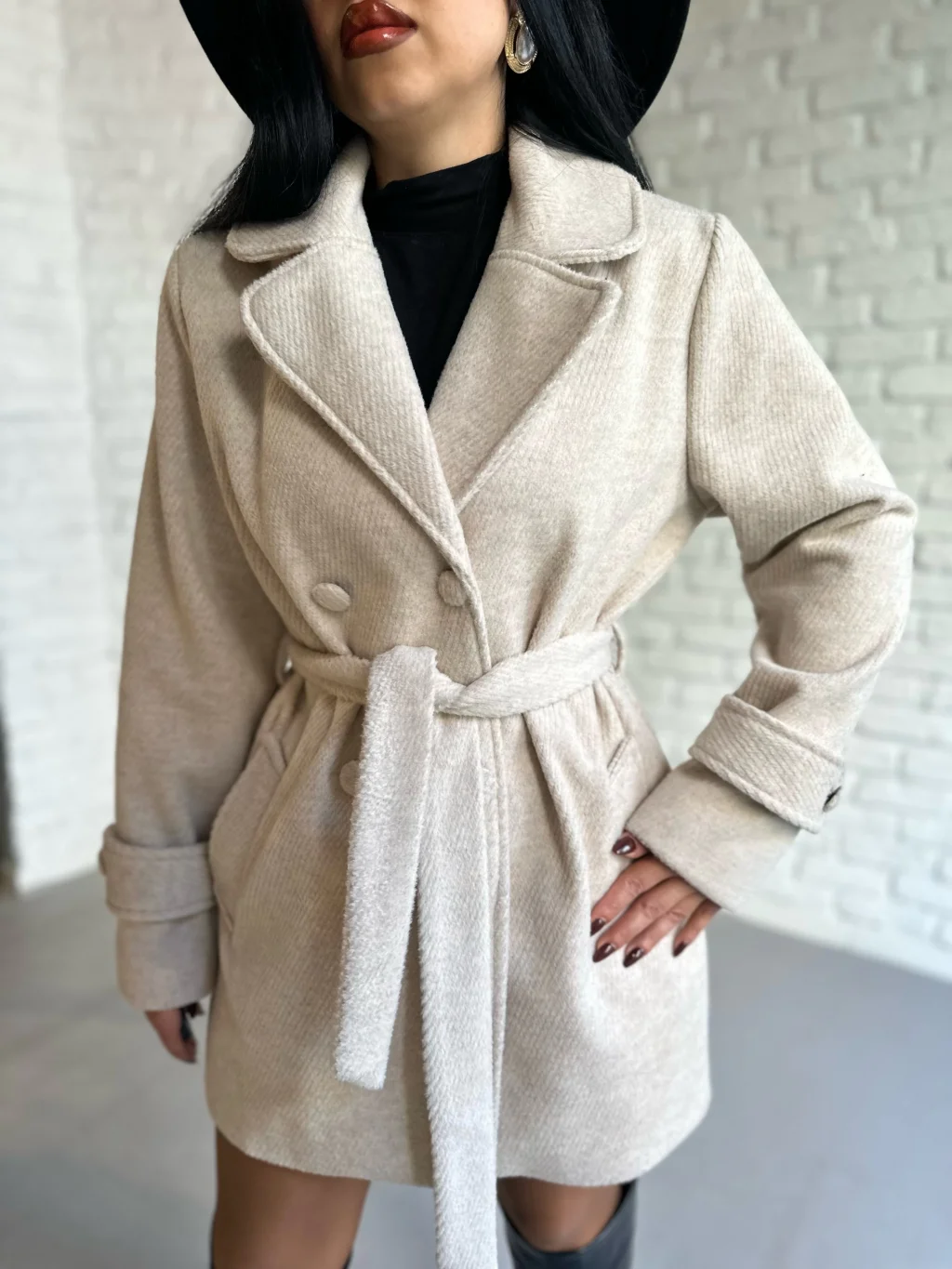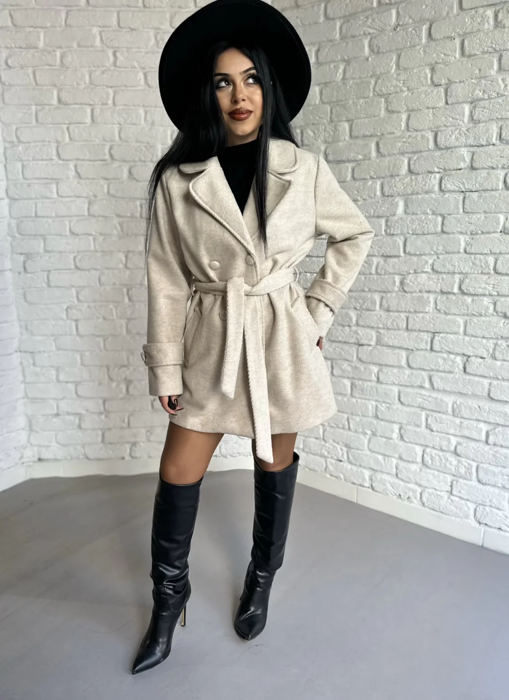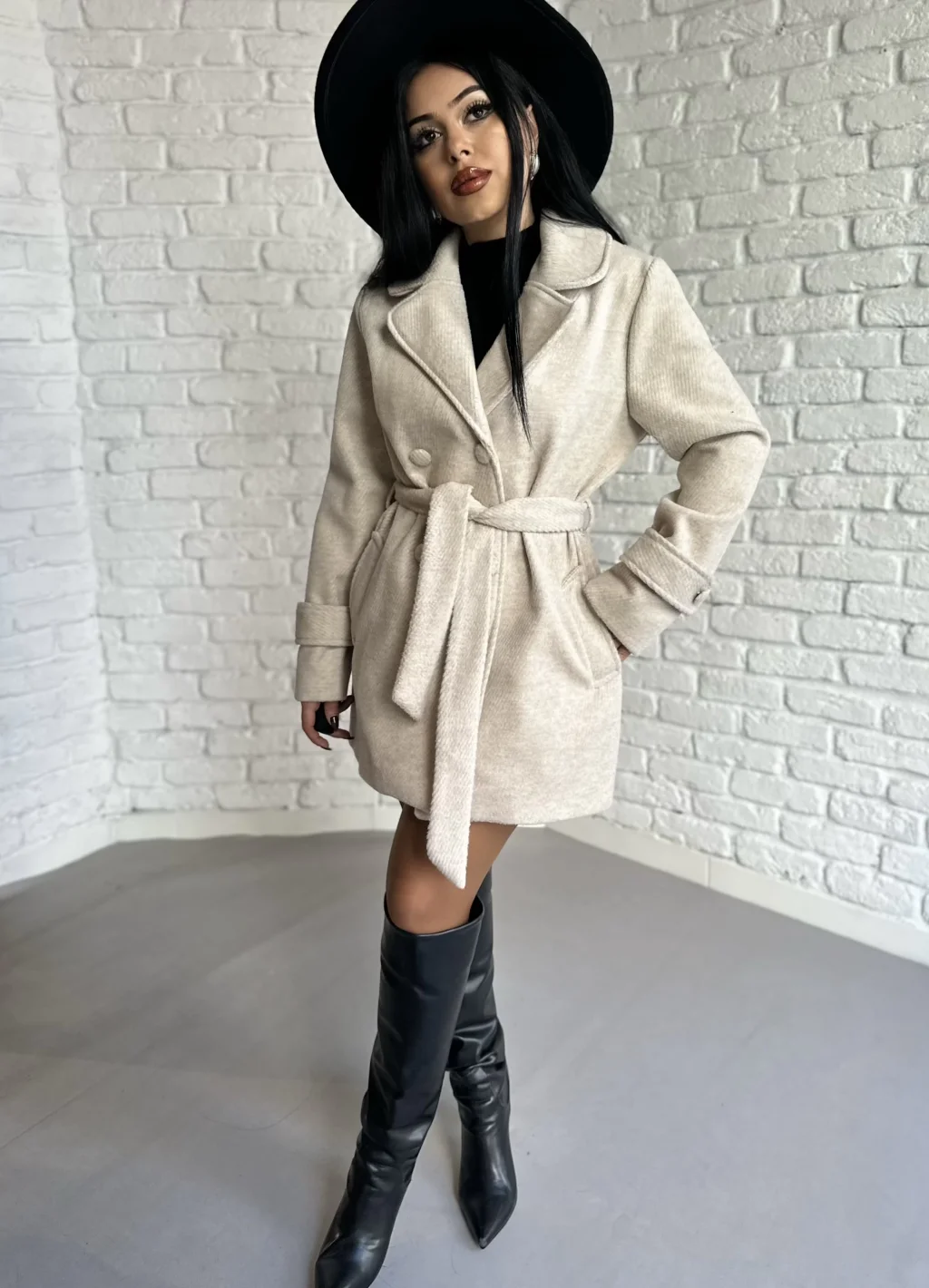 Kadın Kuşaklı Oversize Kısa Kaşe Kaban