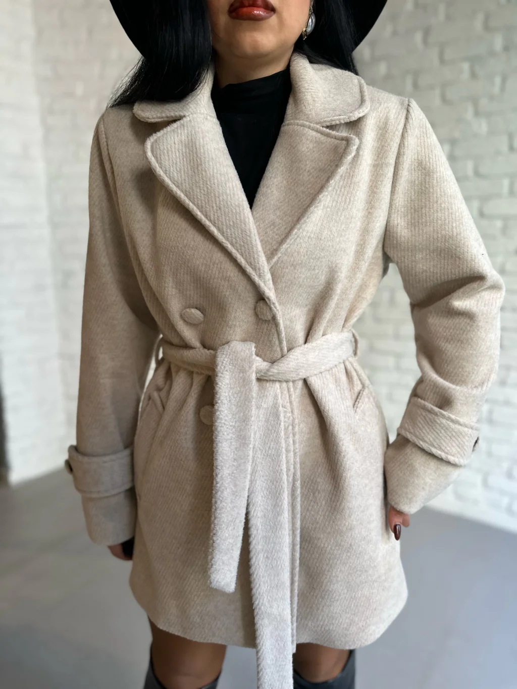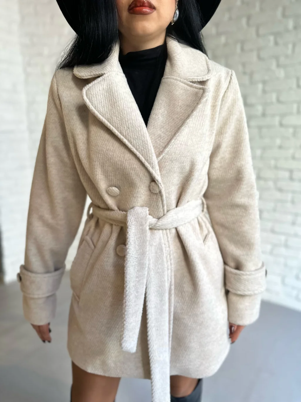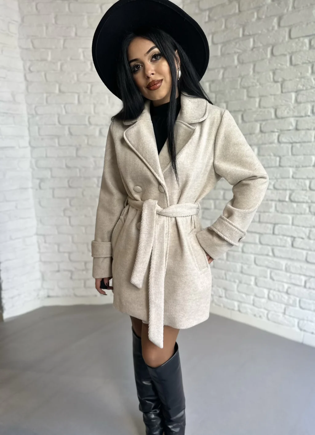 Kadın Kuşaklı Oversize Kısa Kaşe Kaban