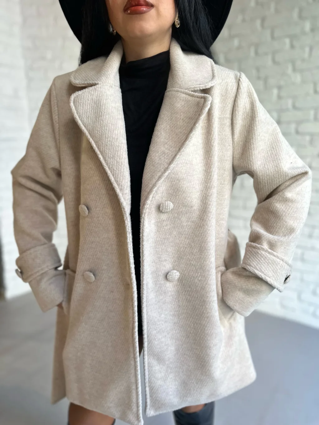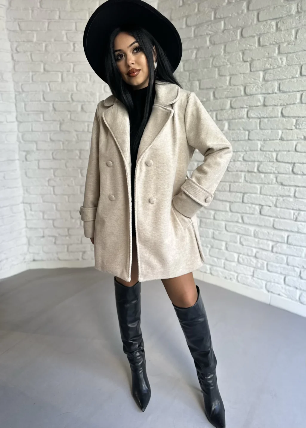 Kadın Önü Düğmeli Astarlı Kısa Kaşe Kaban