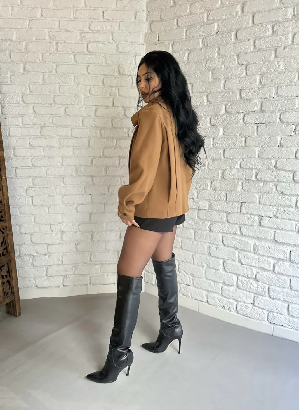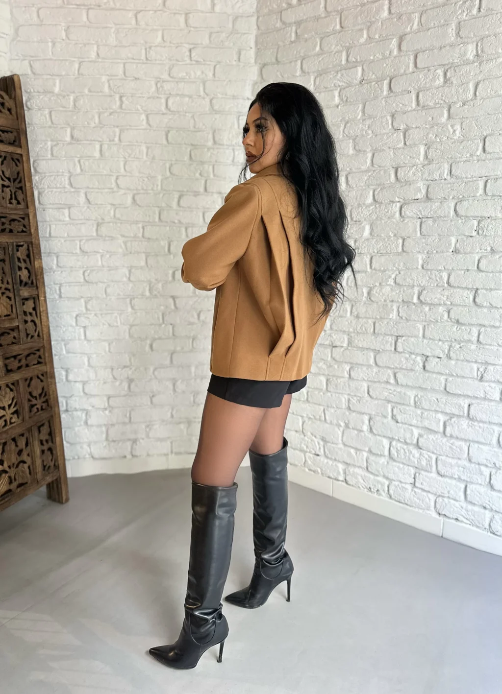Kadın Beli Lastikli Fox Kumaş Gold Düğmeli Ceket