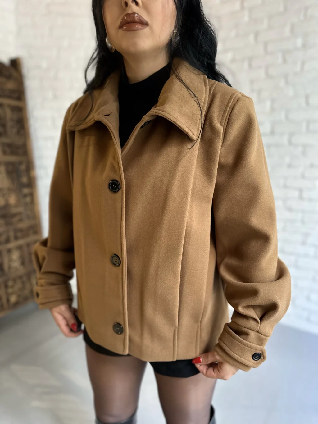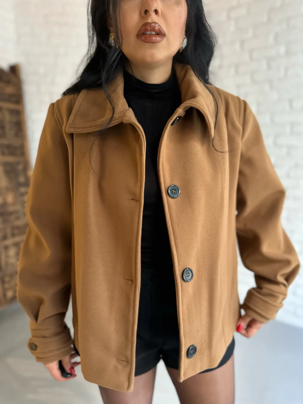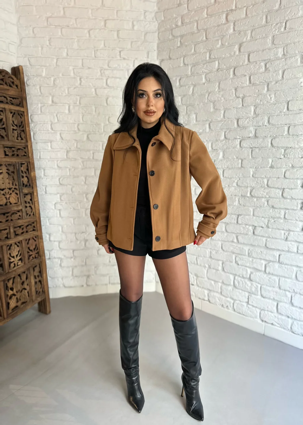 Kadın Önü Düğmeli Astarlı Kısa Kaşe Kaban