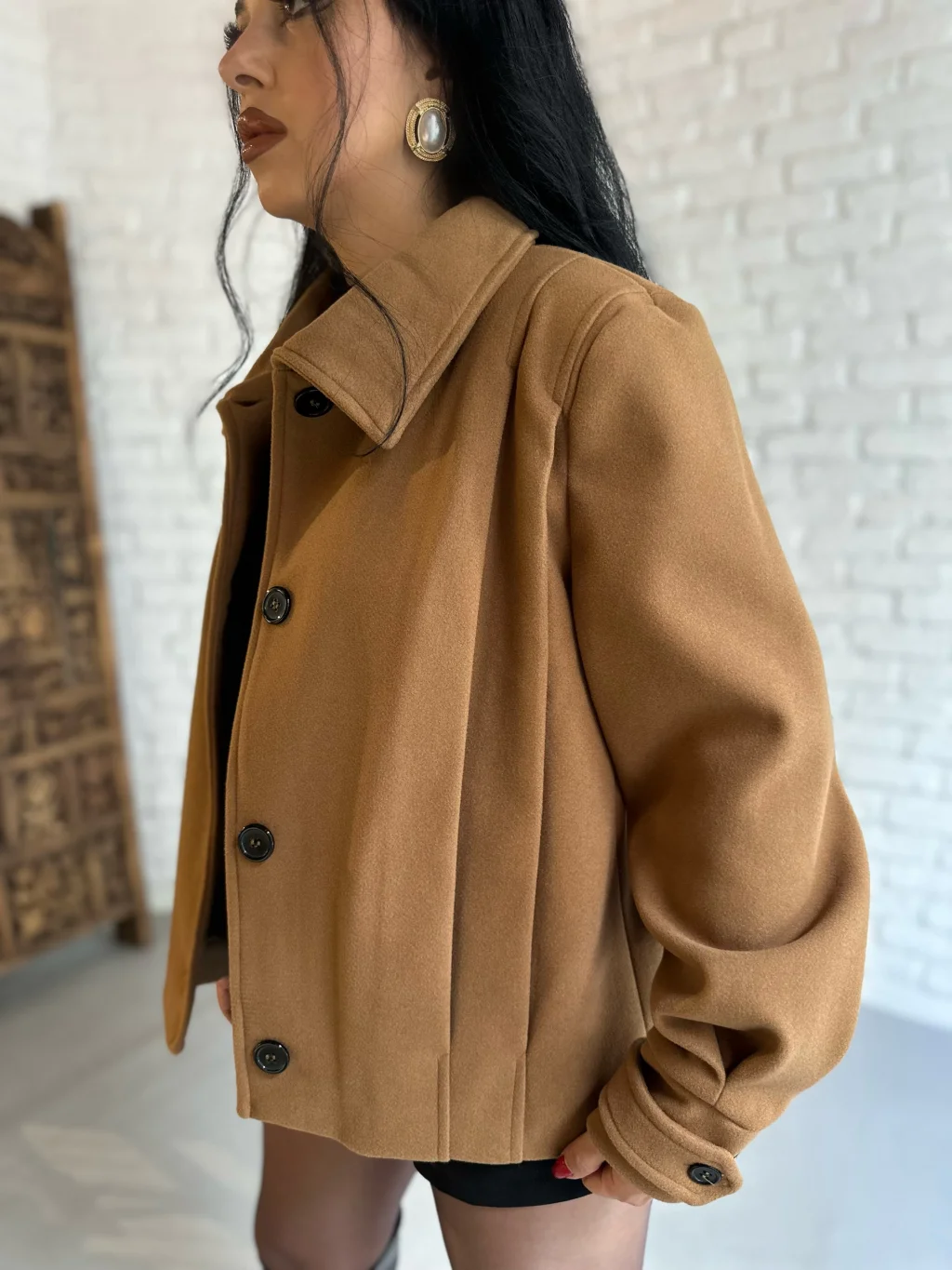 Kadın Pile Detaylı Astarlı Kısa Kaşe Kaban