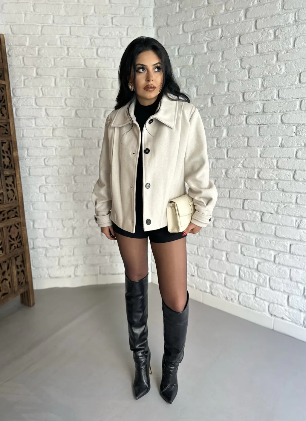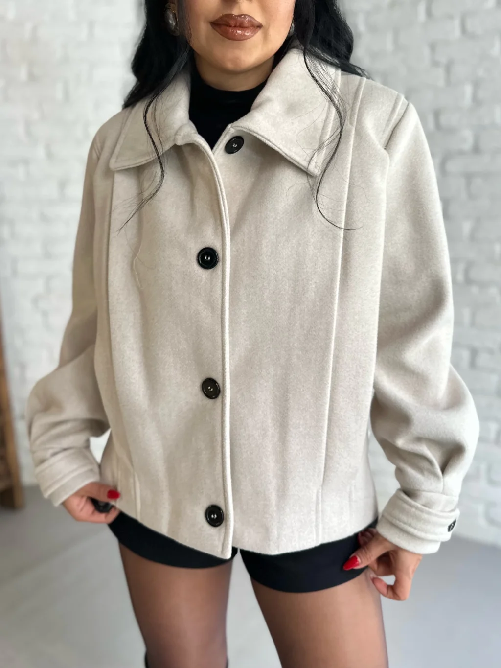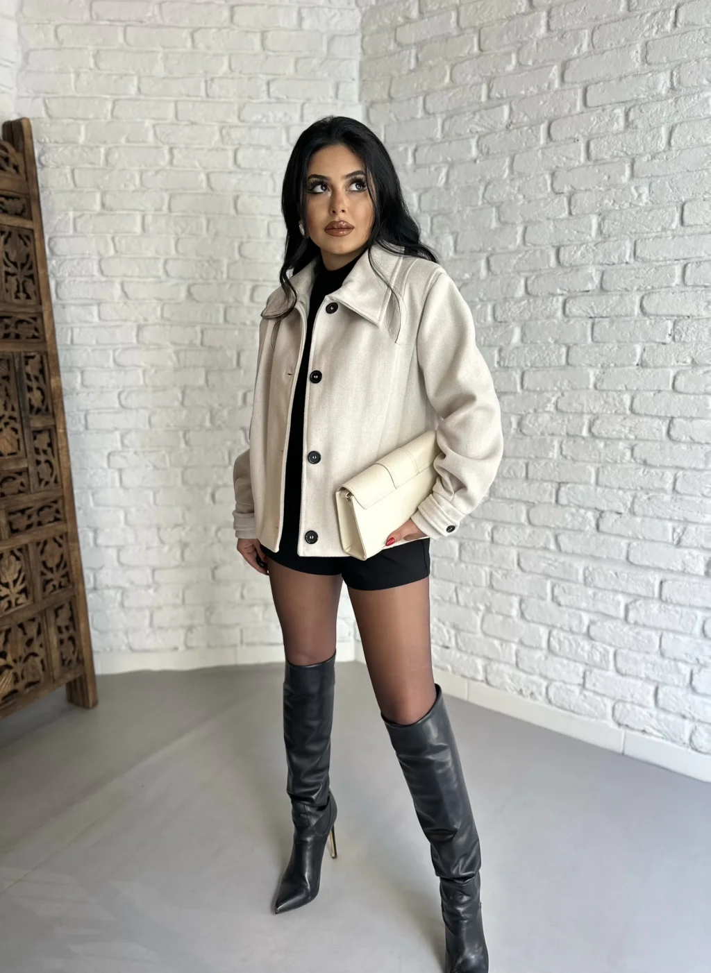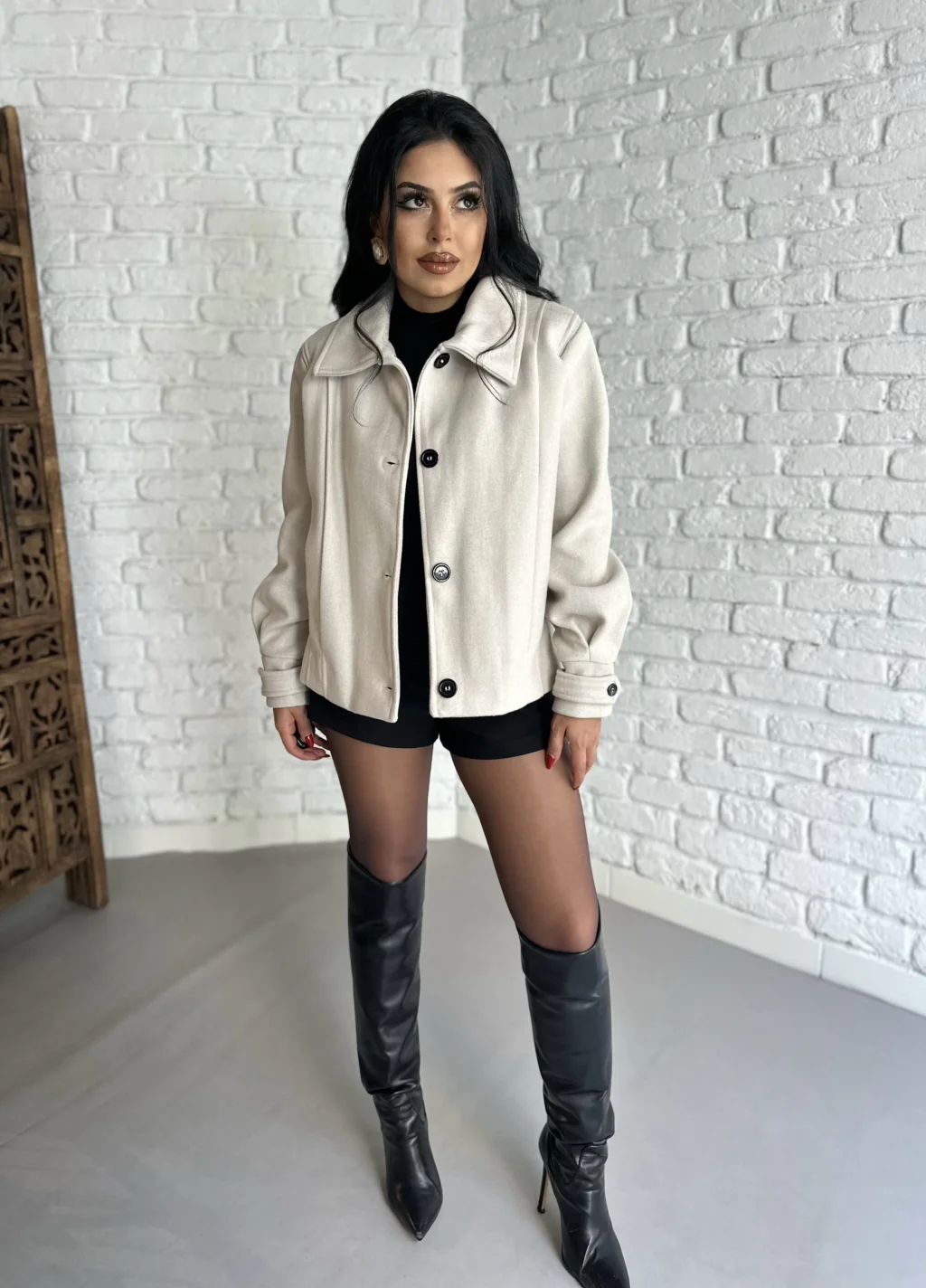 Kadın Önü Düğmeli Astarlı Kısa Kaşe Kaban