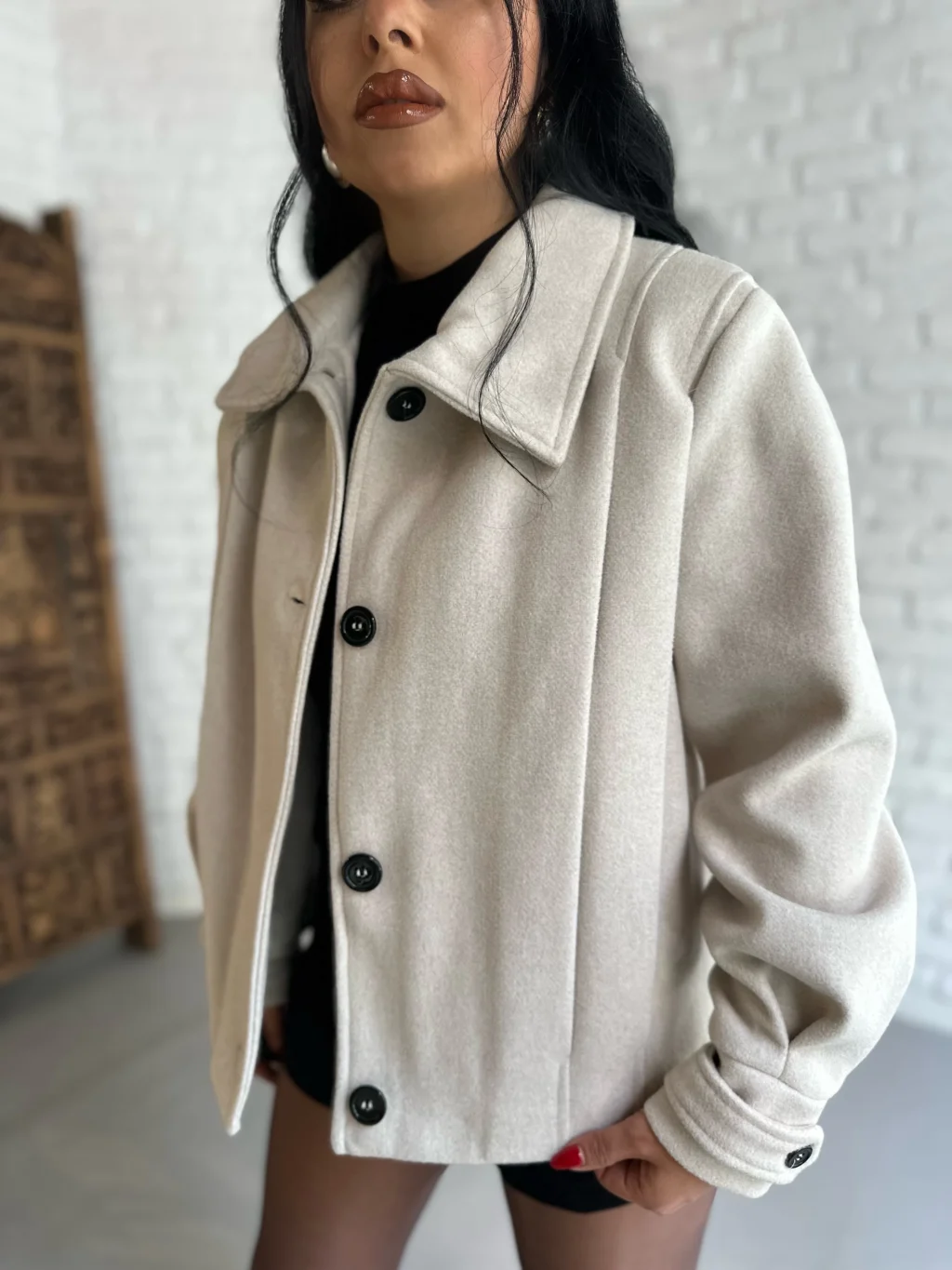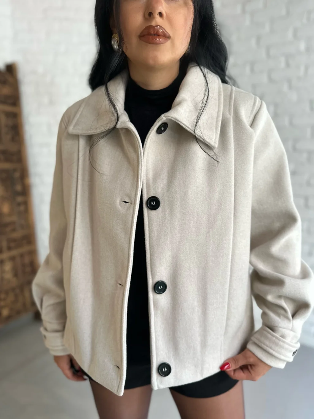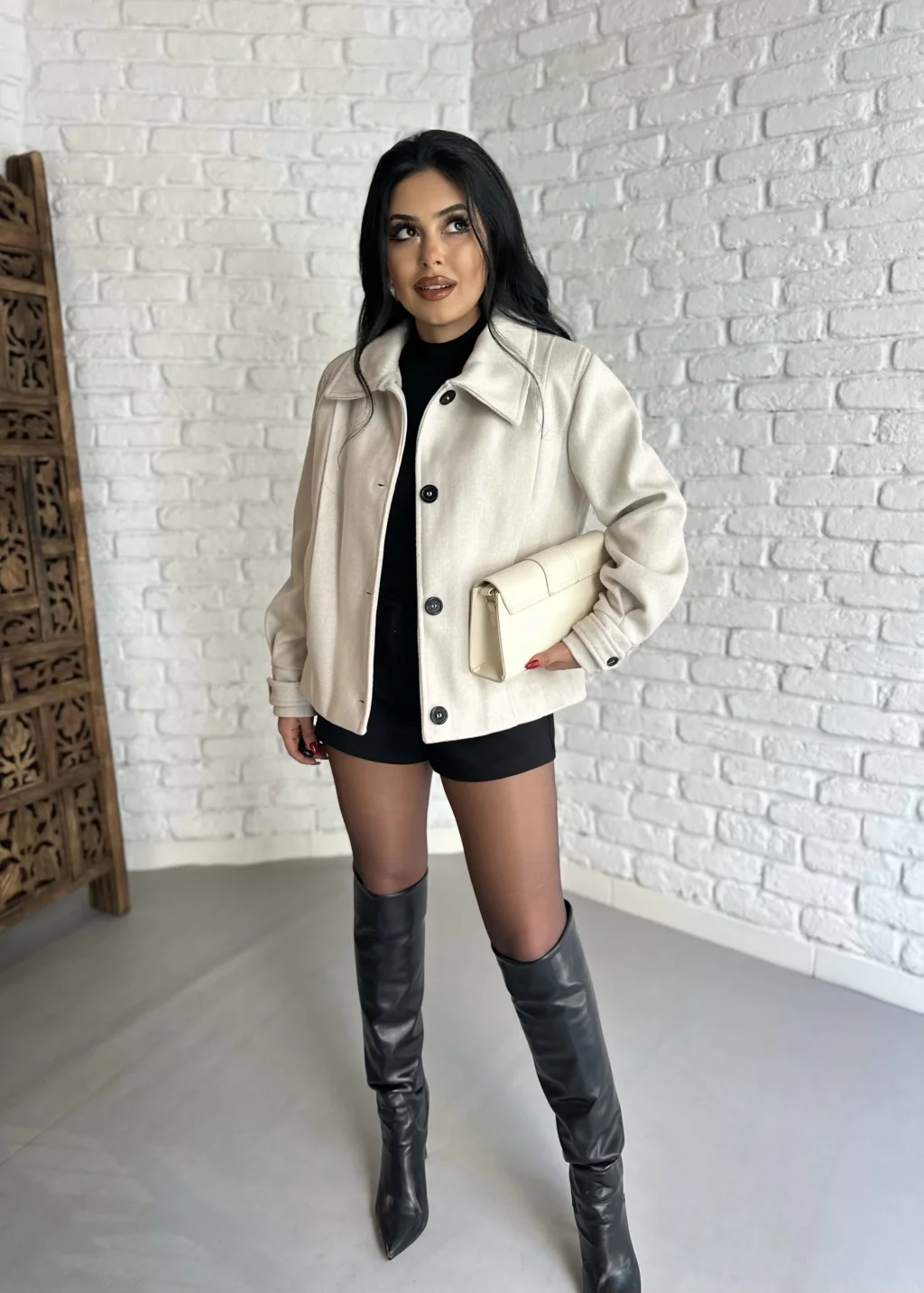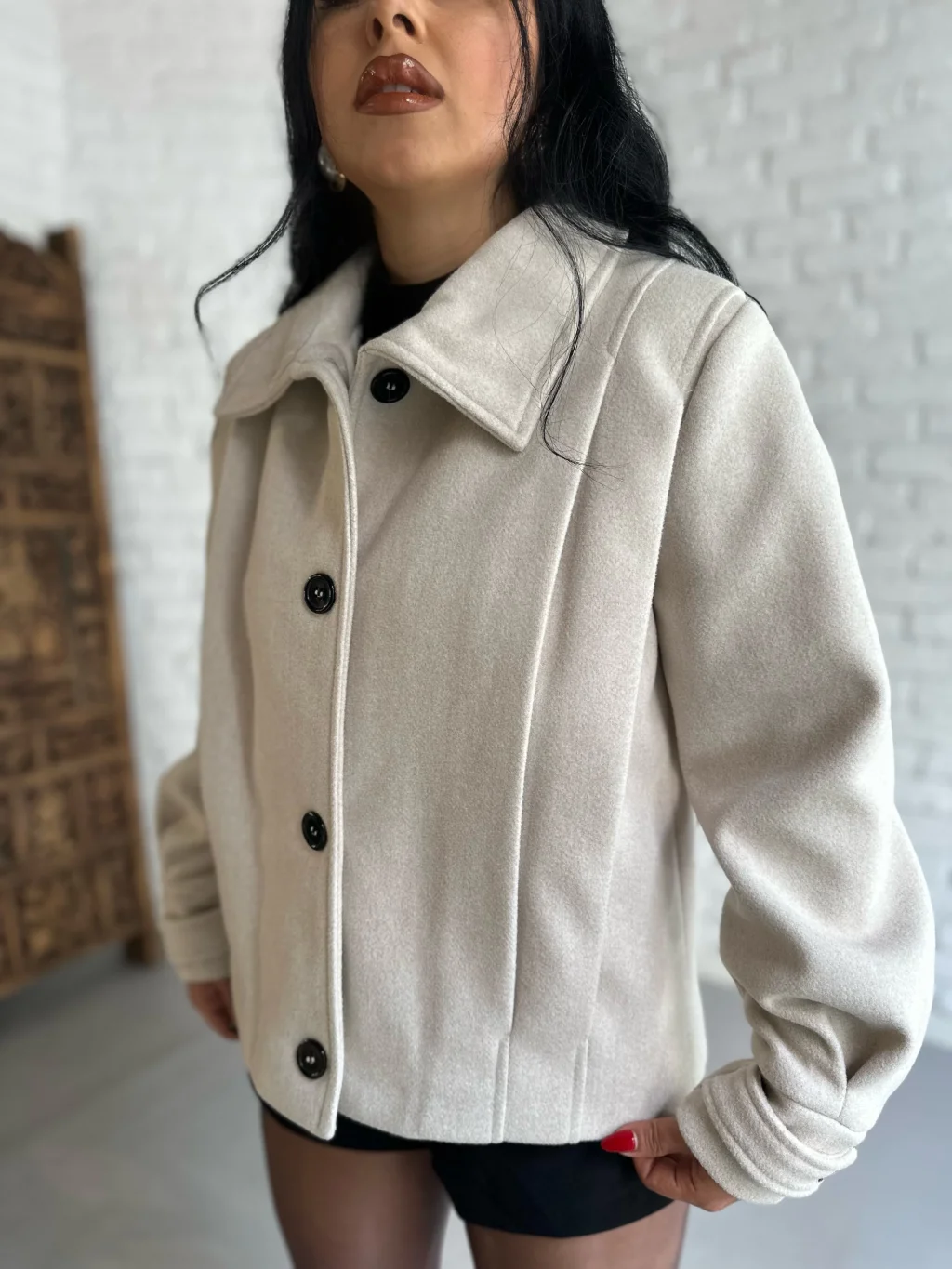 Kadın Önü Düğmeli Astarlı Kısa Kaşe Kaban