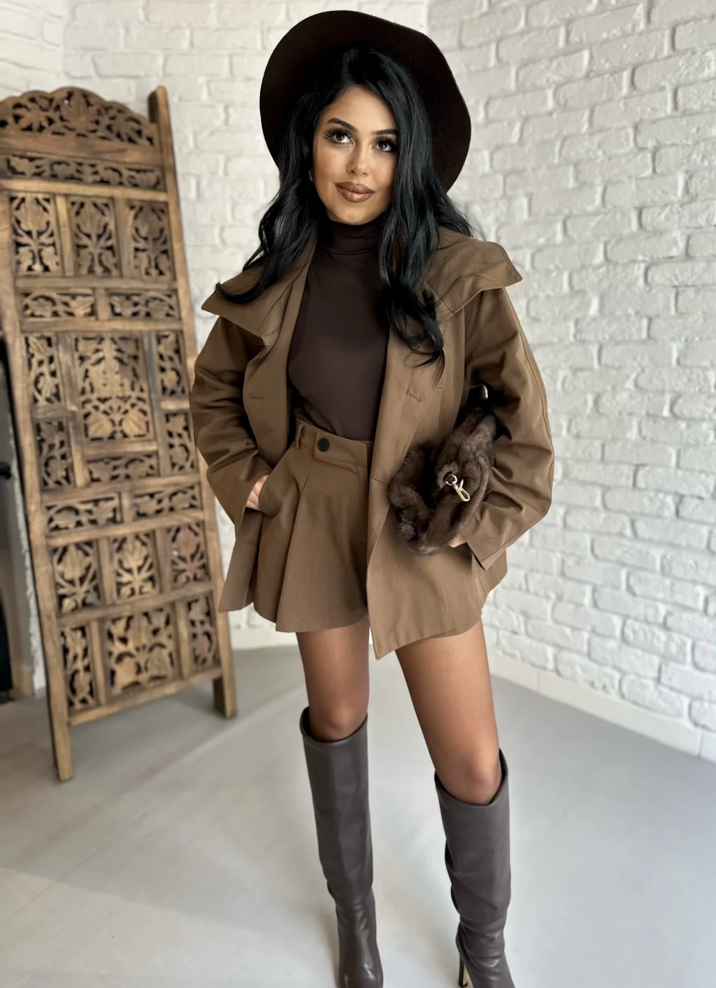 Kadın Premium Trençkot Ve Şort Takım